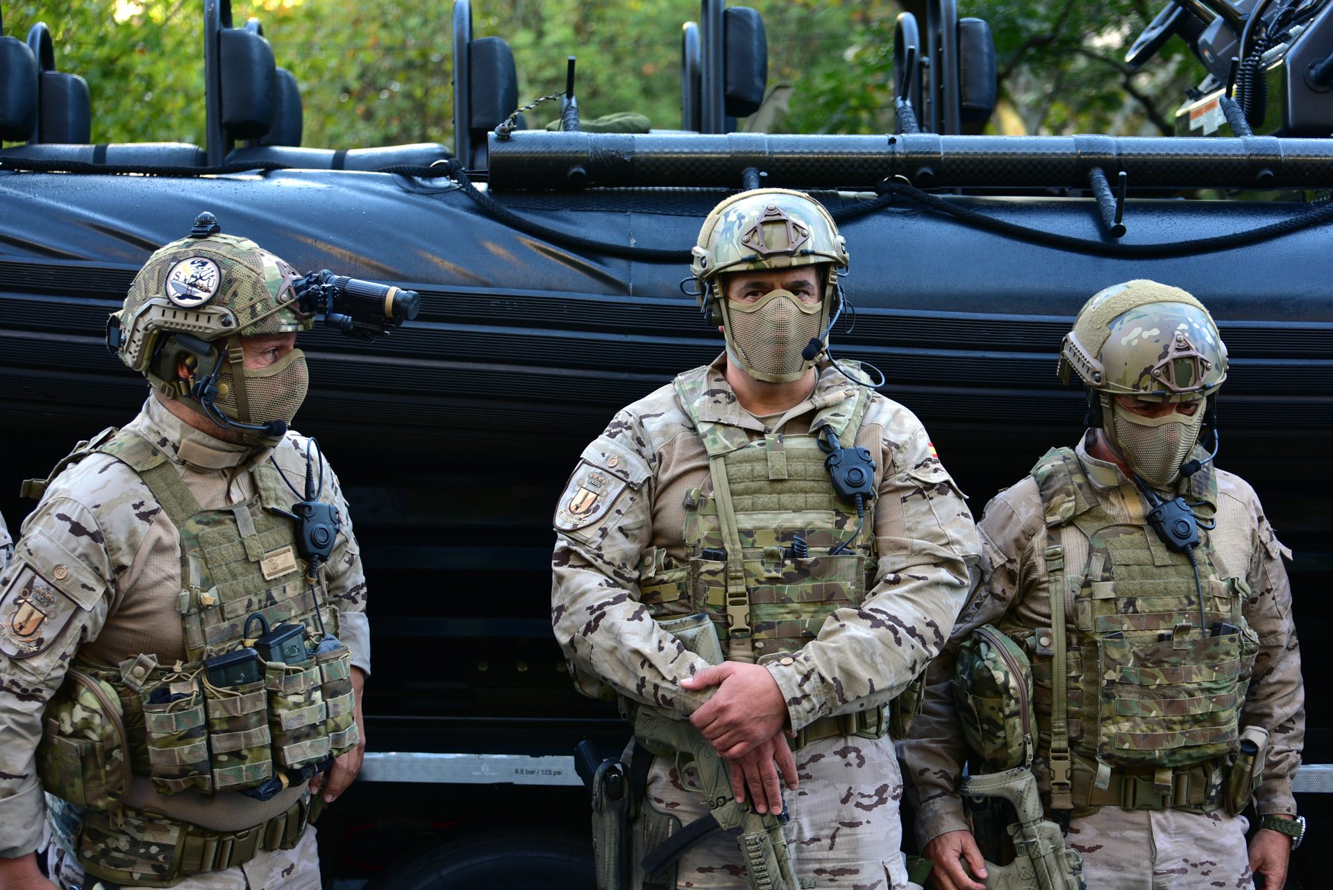 Tres soldados del cuerpo de operaciones anfibias de la Armada.