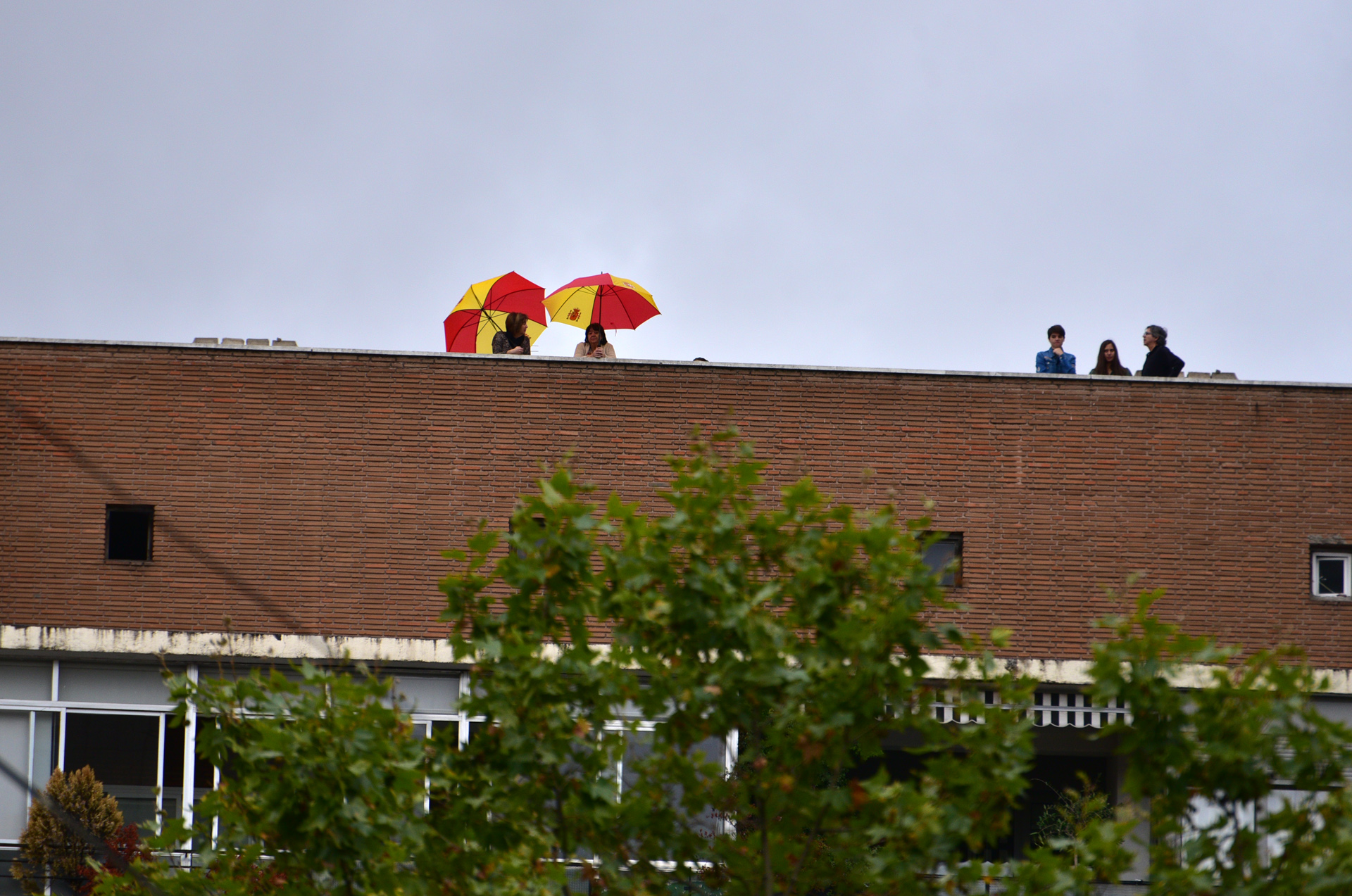 Dos ciudadanos disfrutaron del desfile desde la azotea de su edificio.