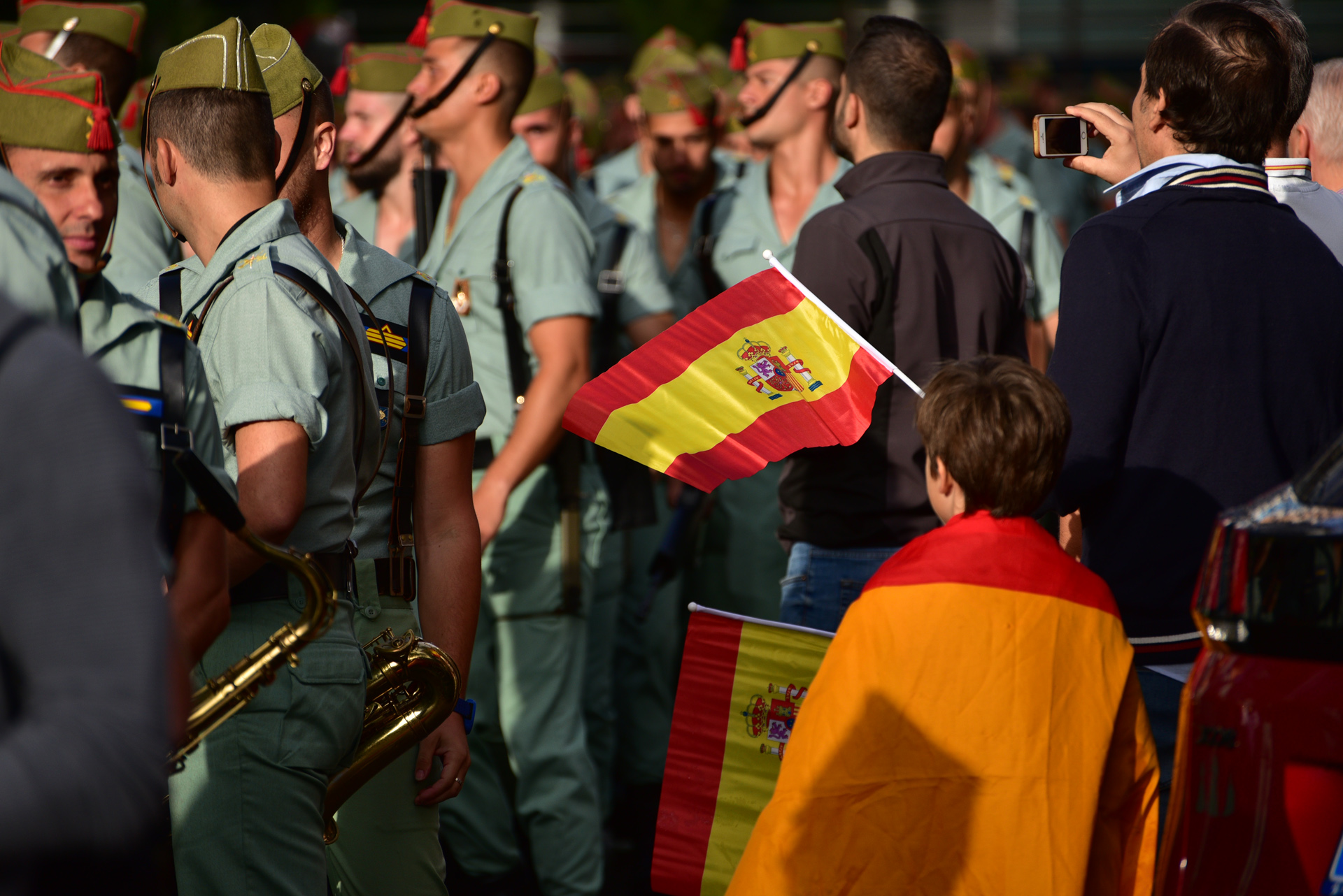 Gran éxito de público que acudió a ver el desfile portando miles de banderas de España de todos los tamaños.