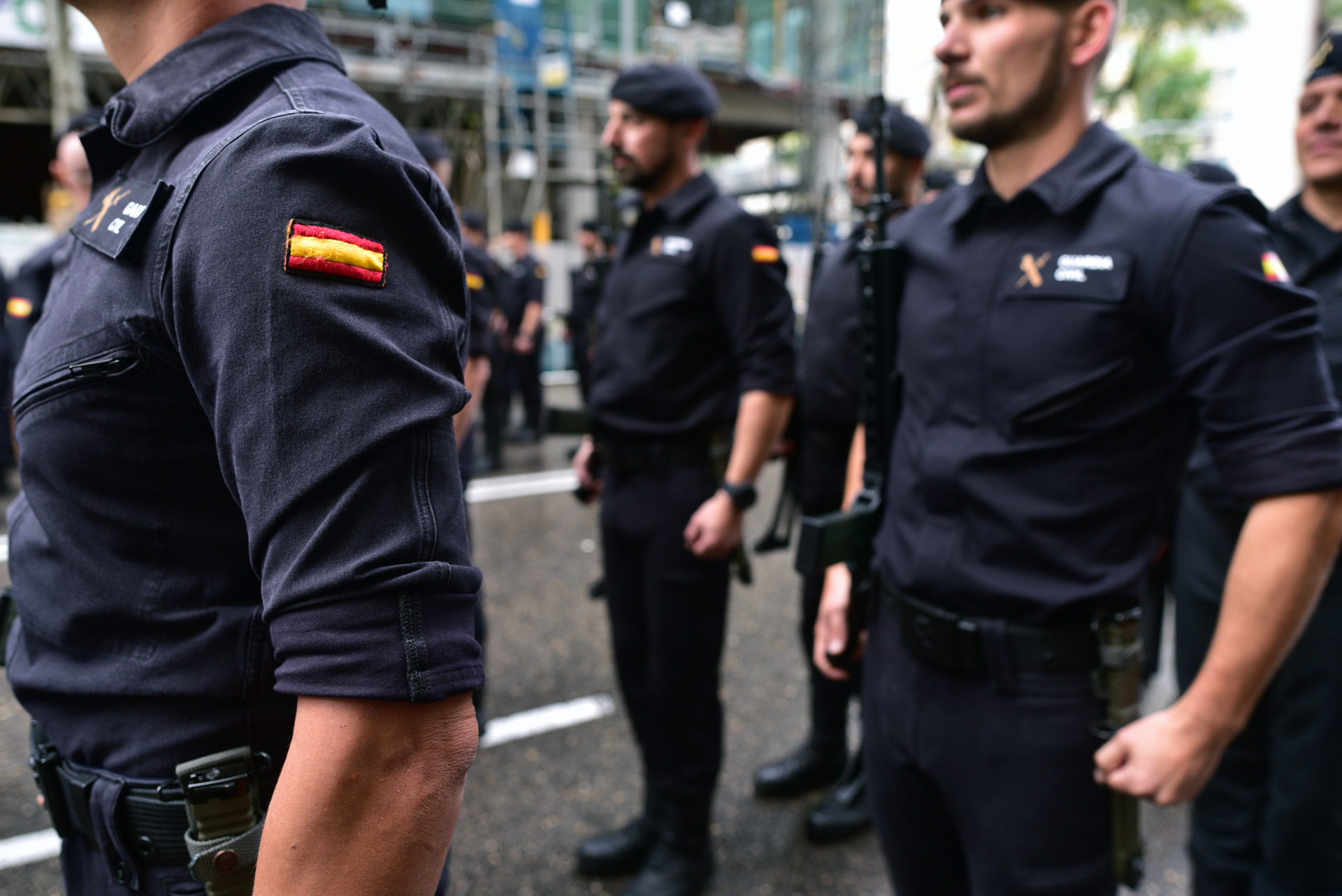 En formación y firmes. Una de las divisiones de Guardias Civiles.
