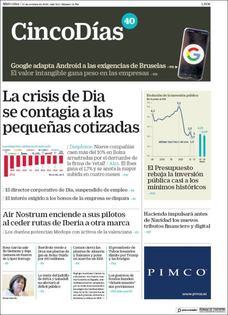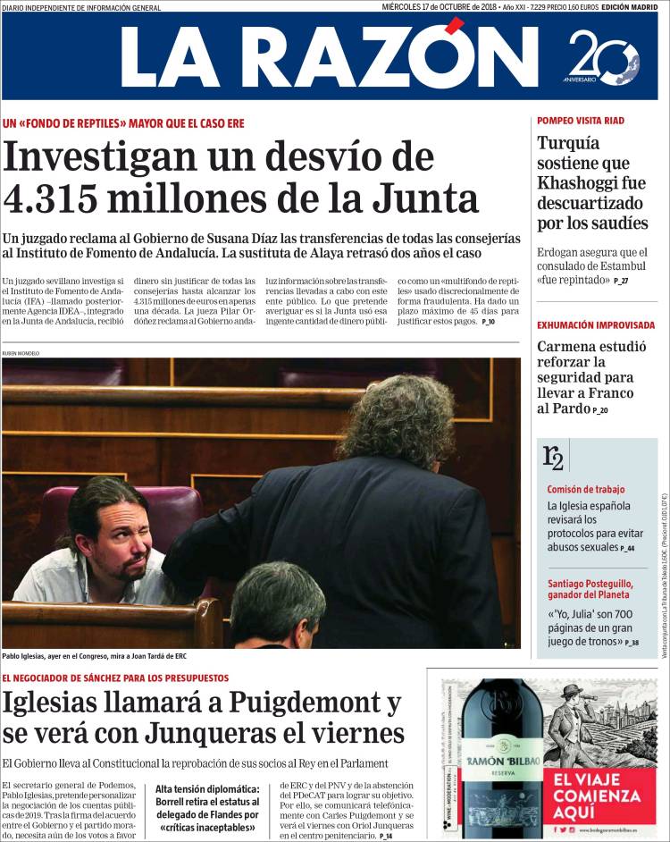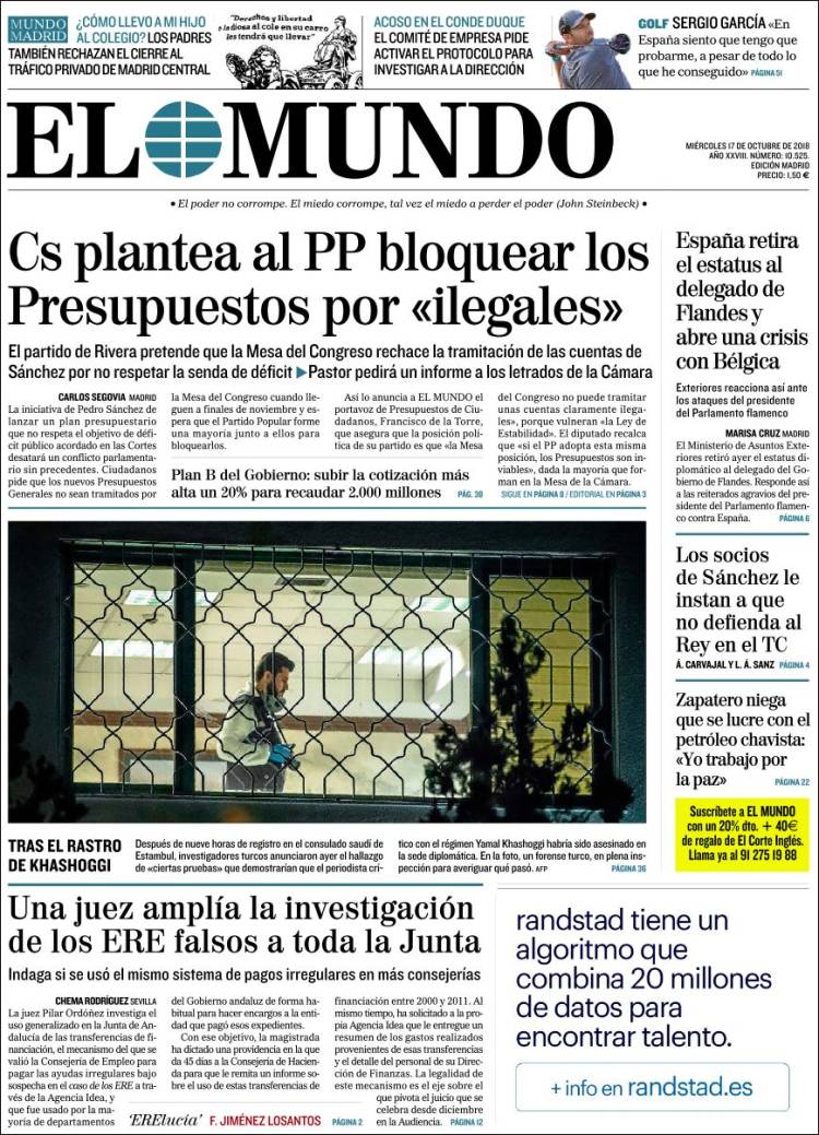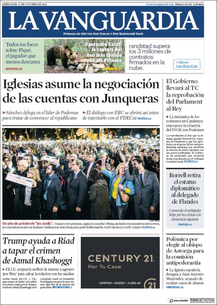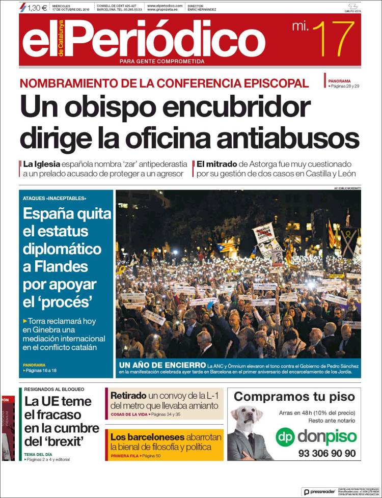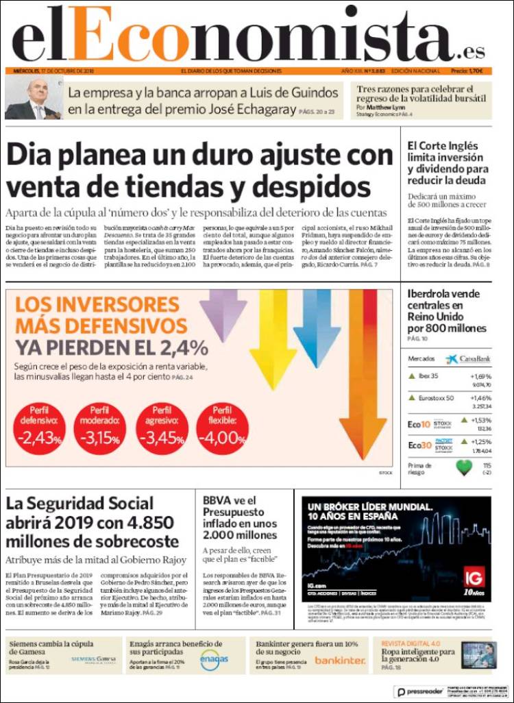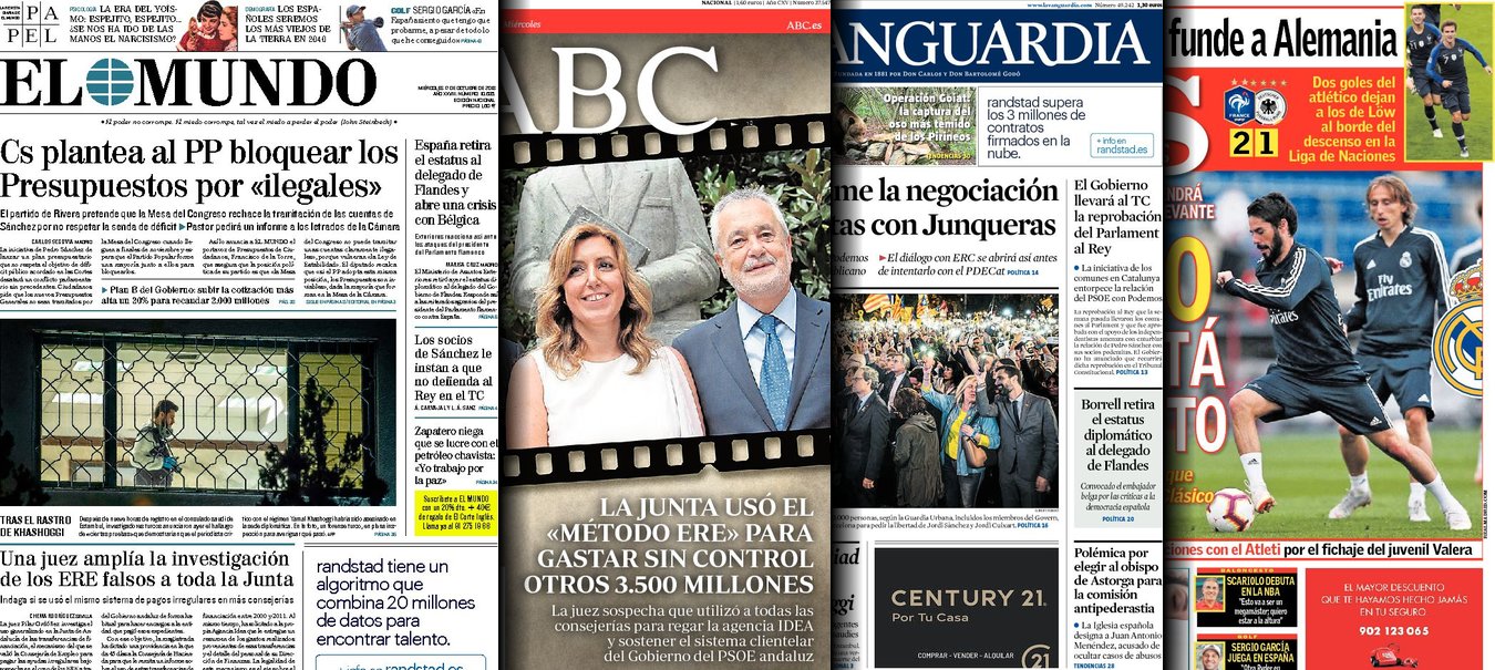 Portadas de los diarios El Mundo, El País, ABC, La Razón, La Vanguardia, El Periódico, Cinco Días, El Economista, Marca, As y Mundo Deportivo.