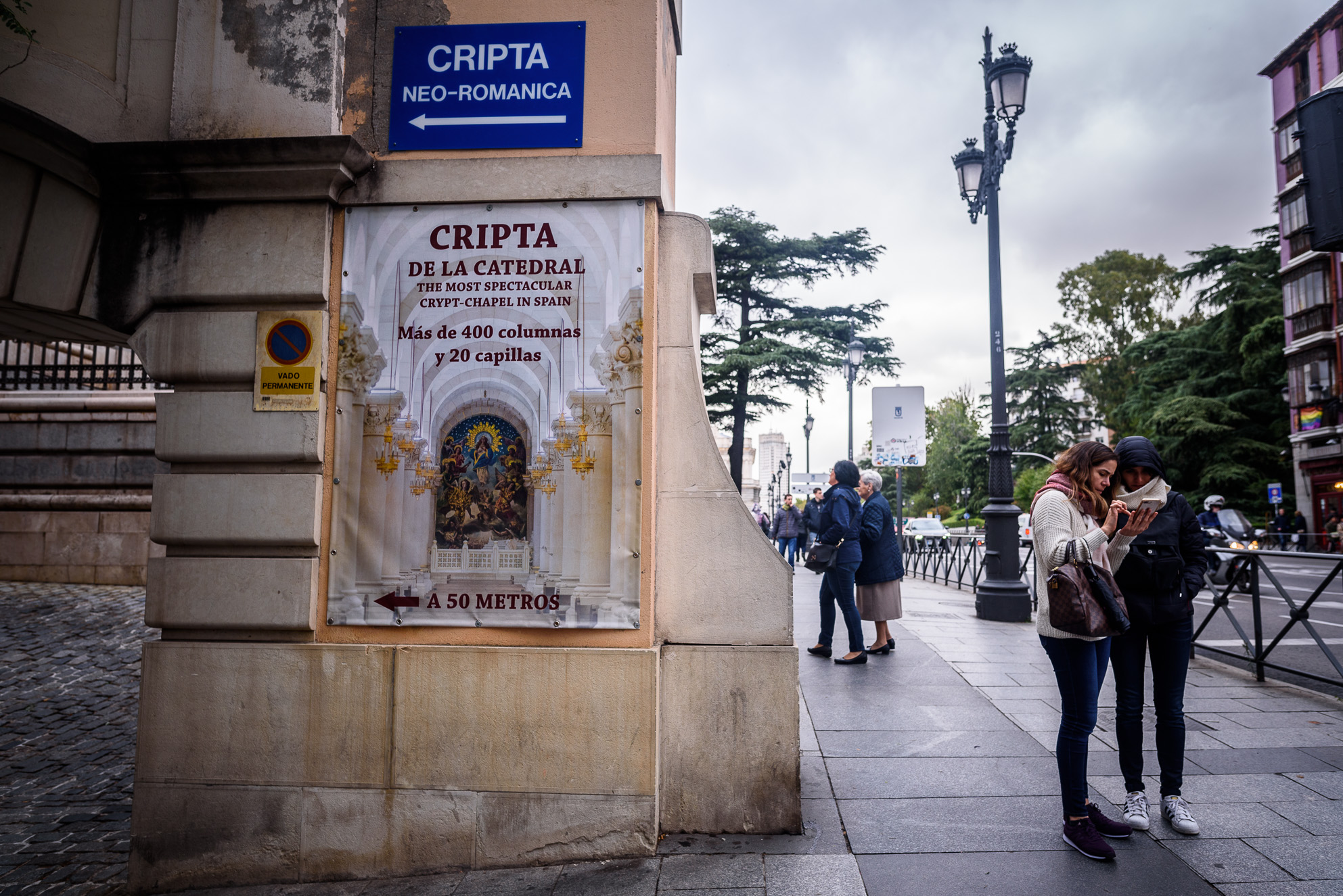 La espectacular cripta está localizada bajo la Catedral de la Almudena, en Madrid, con lo que su planta es similar a las dimensiones del templo.
