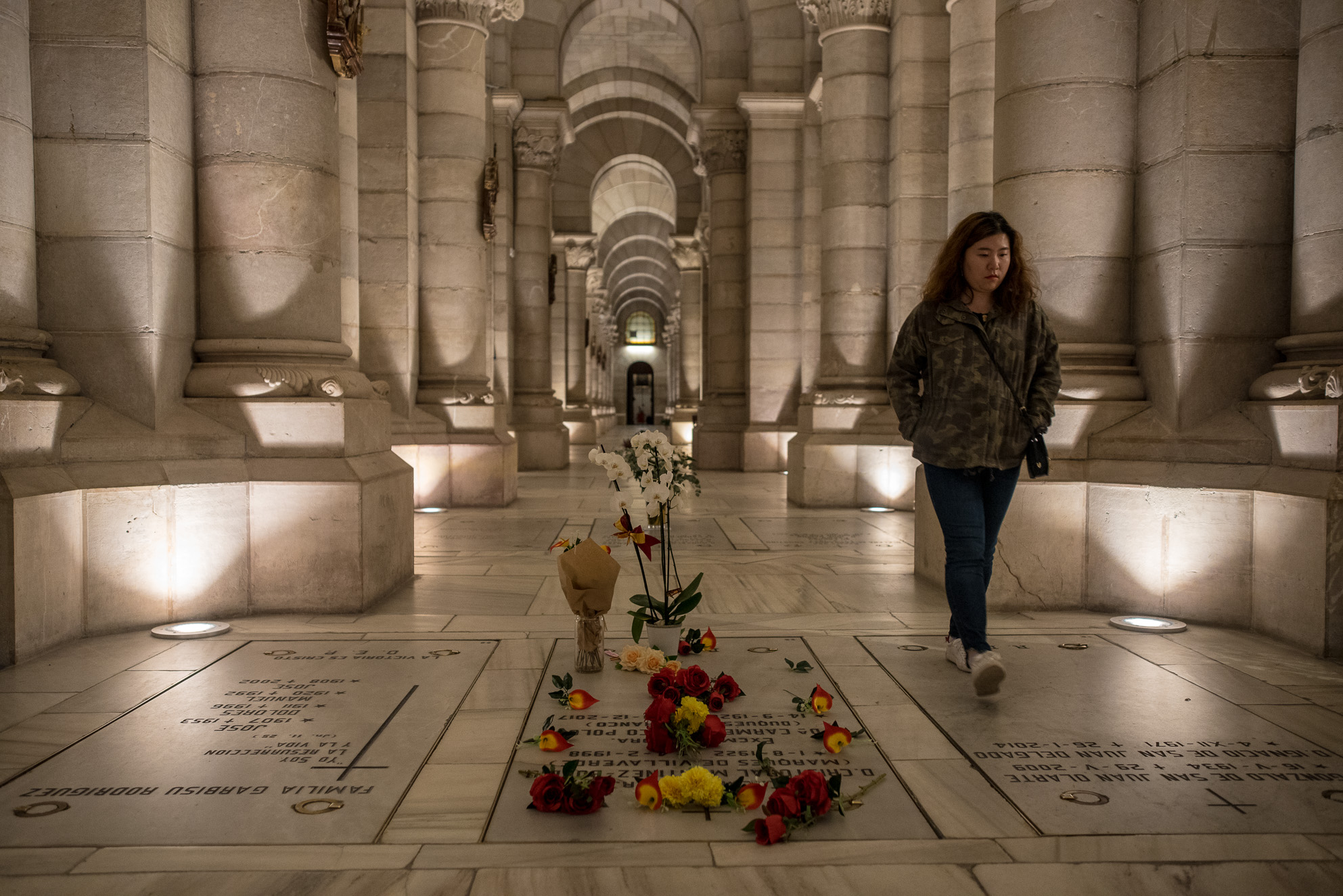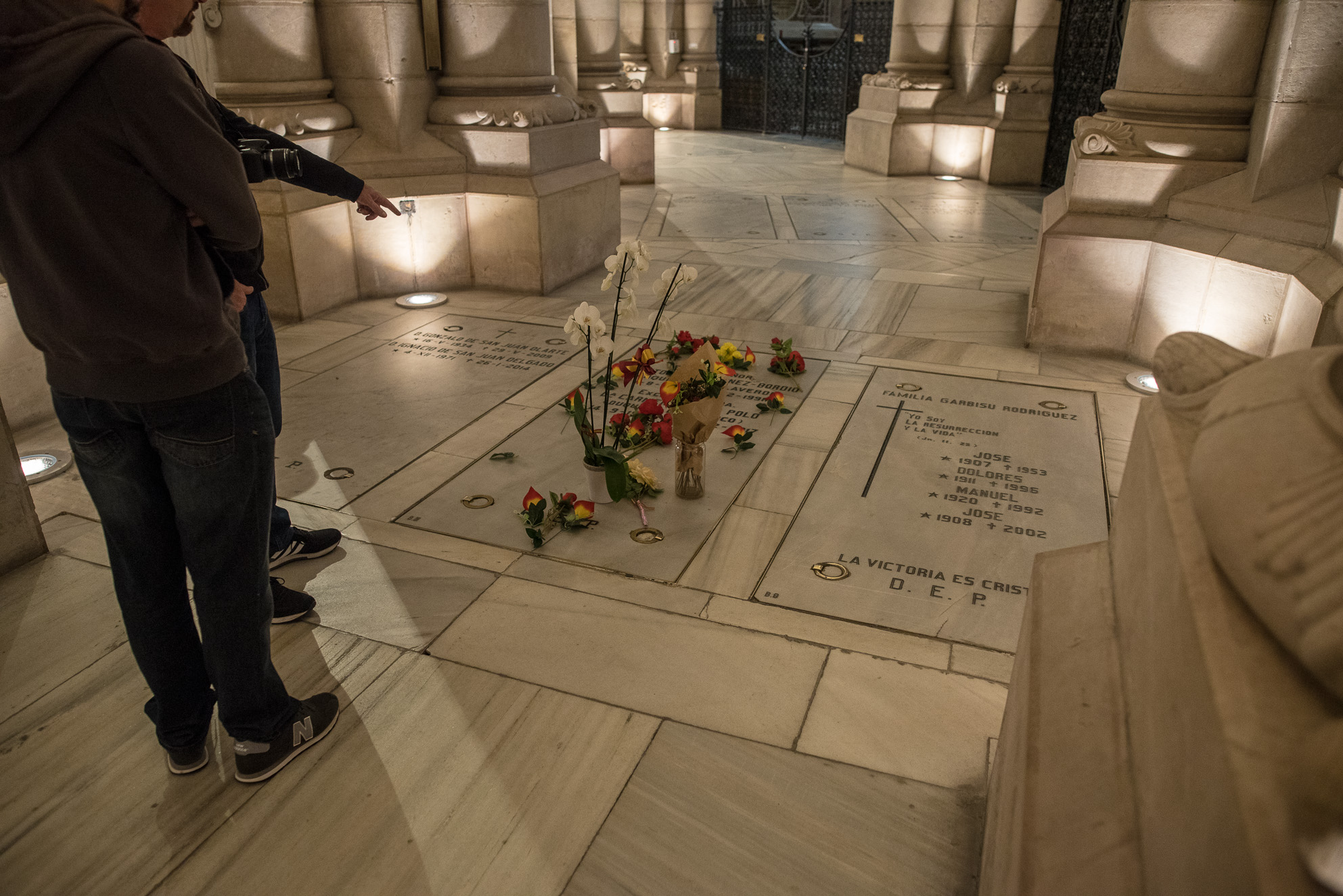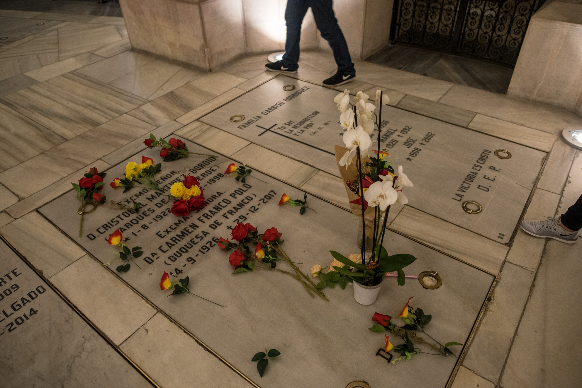 Las tumba del Marqués de Villaverde y de Carmen Franco Polo, hija de Franco, son las más adornadas de todas las que se ubican en la cripta. Sobre la rígida losa han sido colocadas flores de color rojo y amarillo.