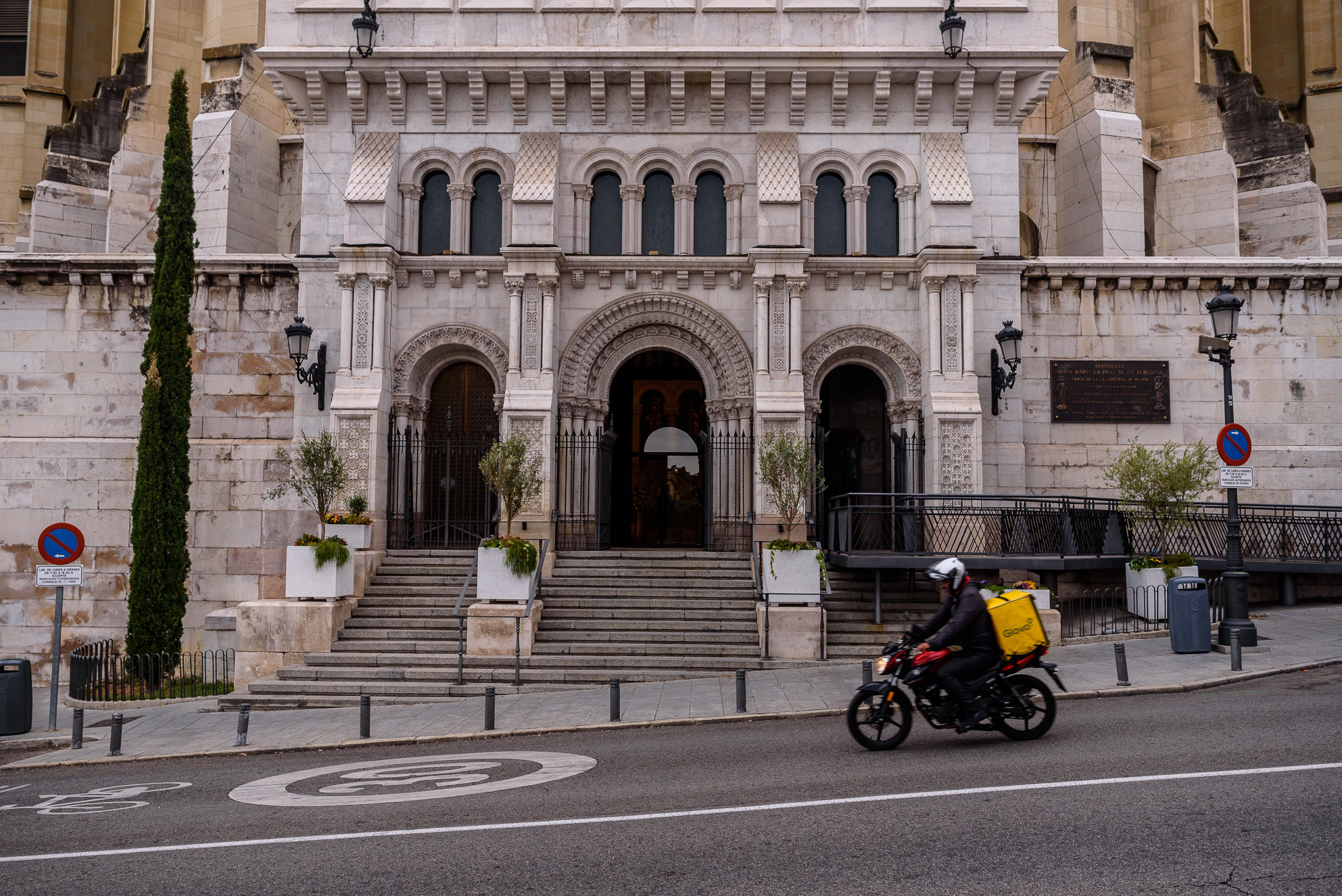 La imponente fachada, situada en la Calle Mayor, a la vuelta de la esquina de la entrada La Almudena, parece un templo medieval.