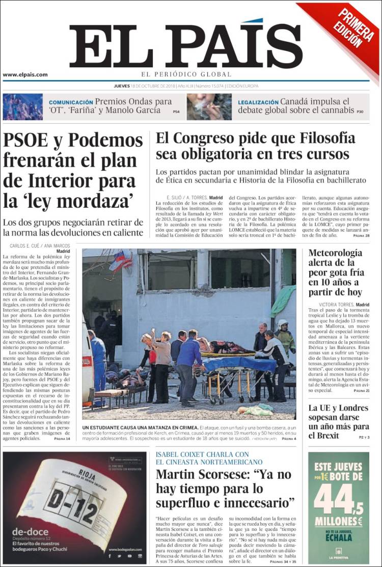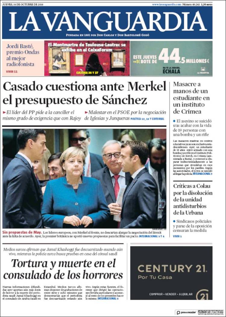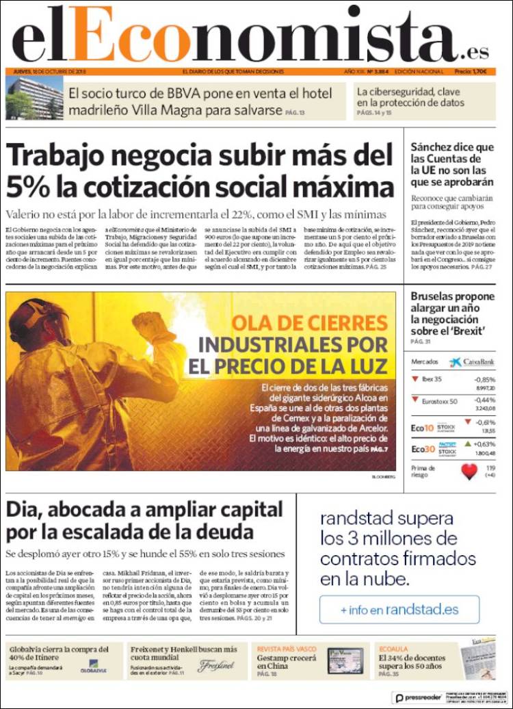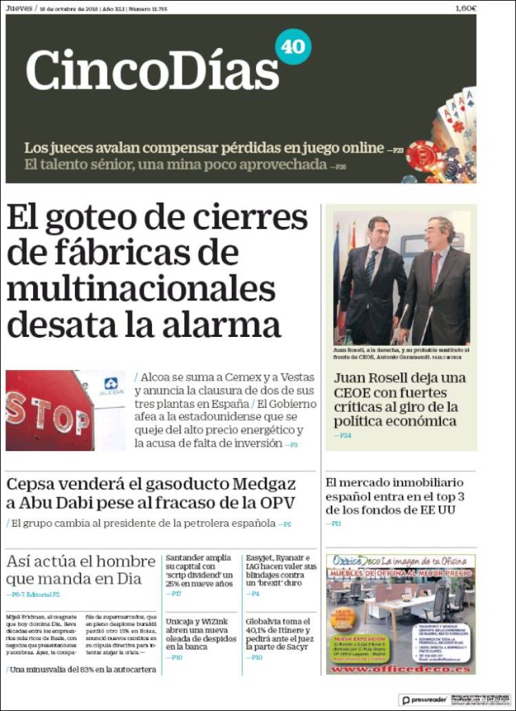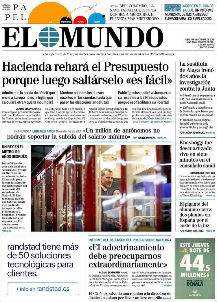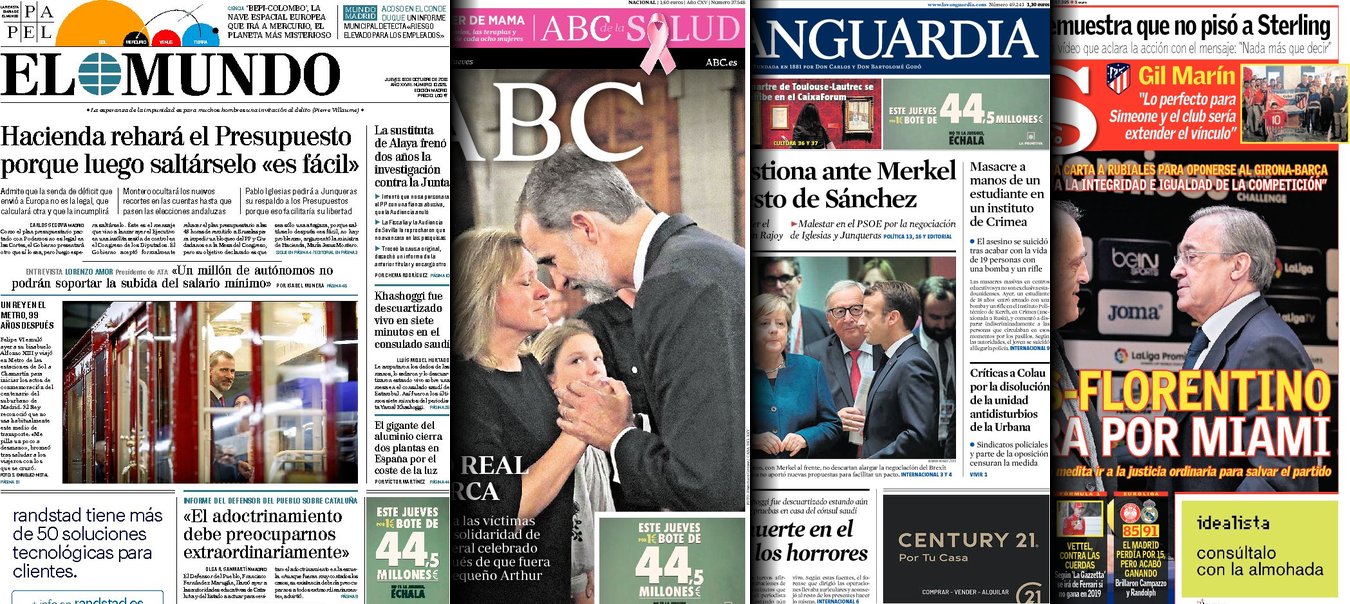 Portadas de los diarios El Mundo, El País, ABC, La Razón, La Vanguardia, El Periódico, Cinco Días, El Economista, Marca, As y Mundo Deportivo.