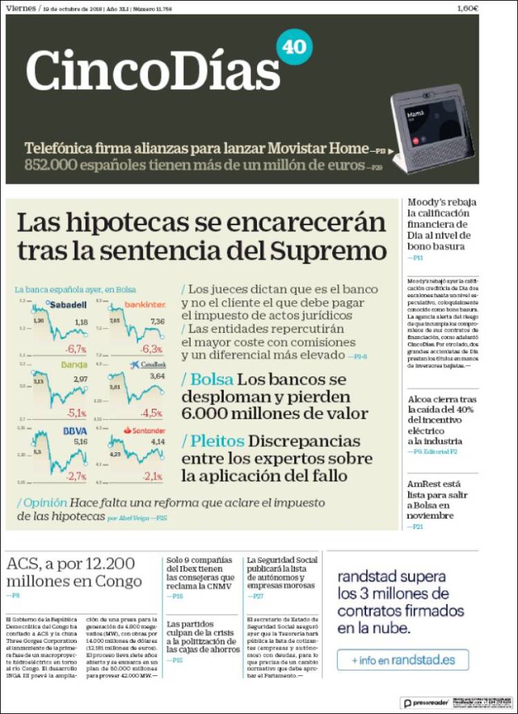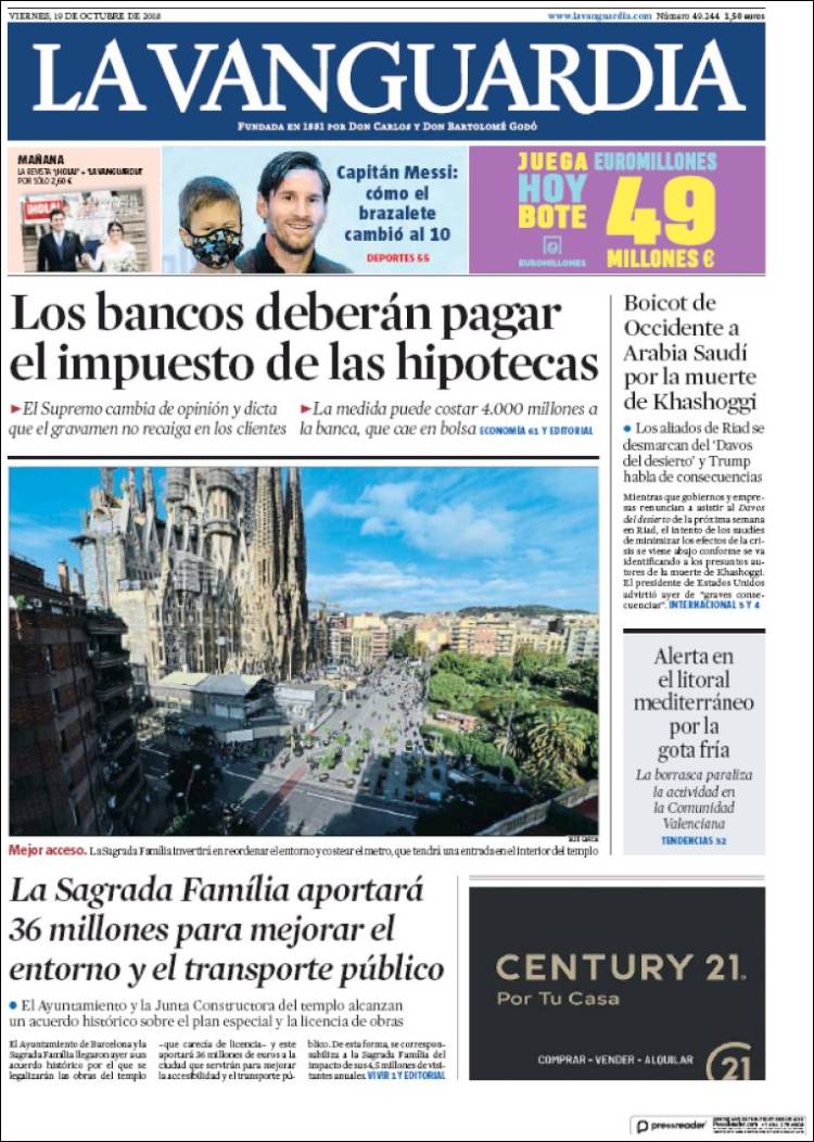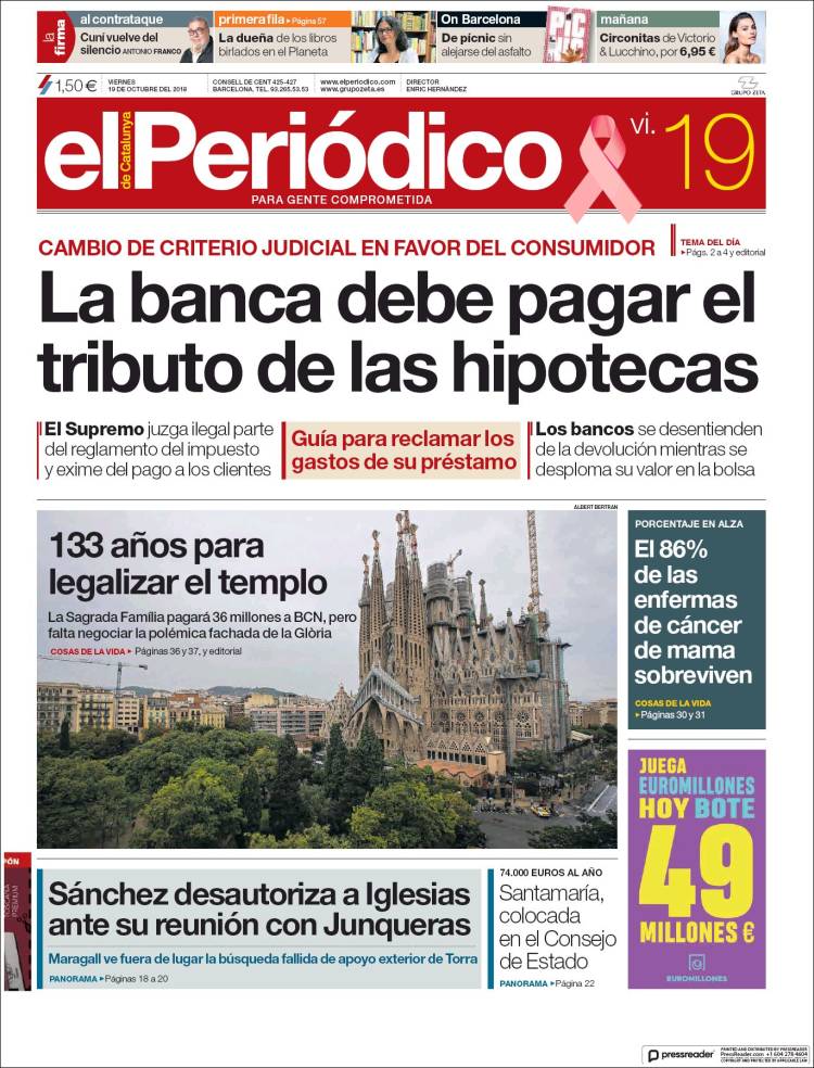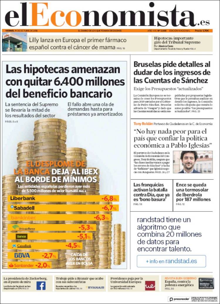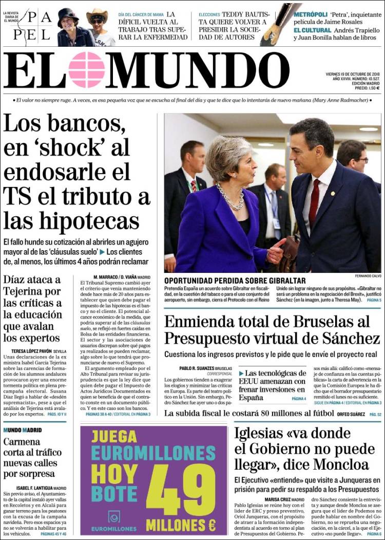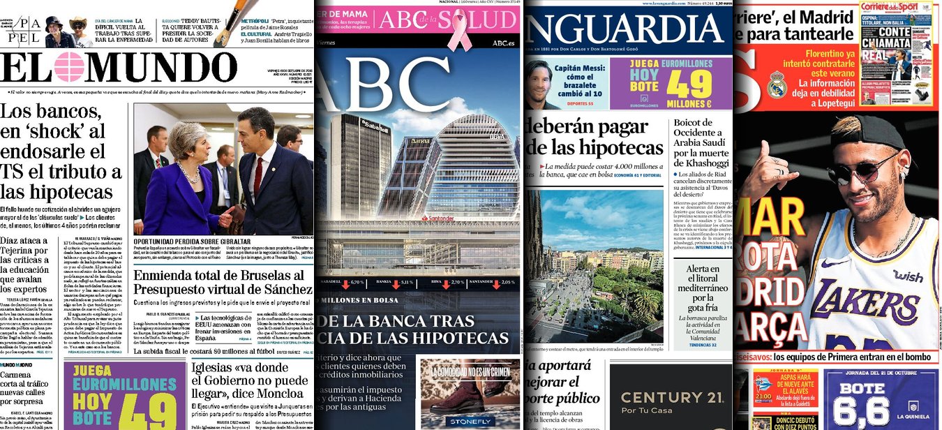 Portadas de los diarios El Mundo, El País, ABC, La Razón, La Vanguardia, El Periódico, Cinco Días, El Economista, Marca, As y Mundo Deportivo.