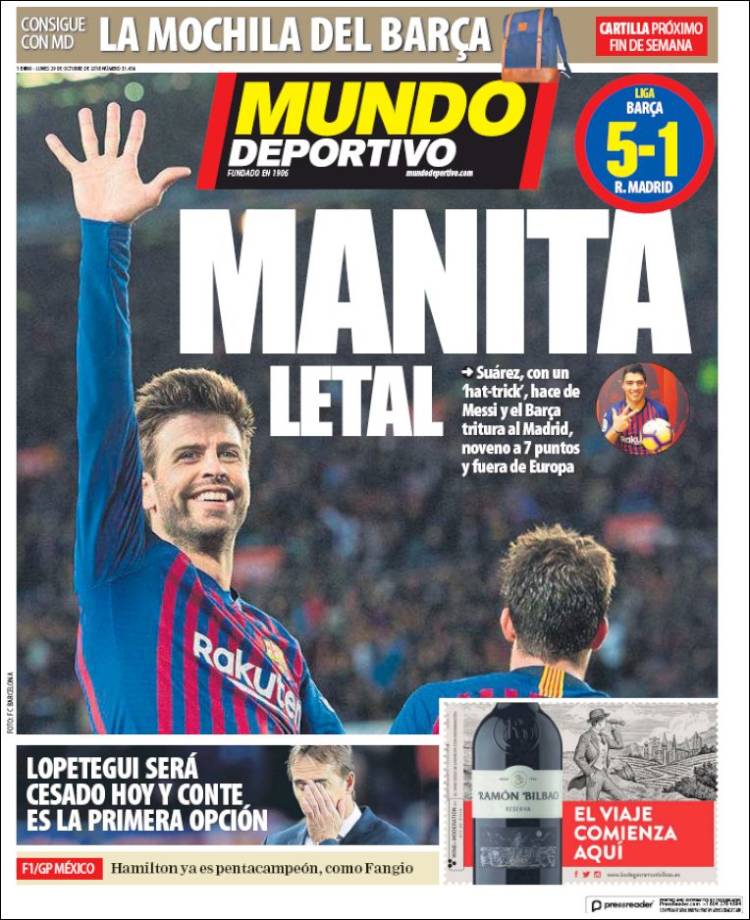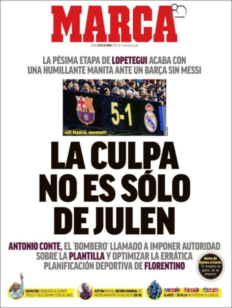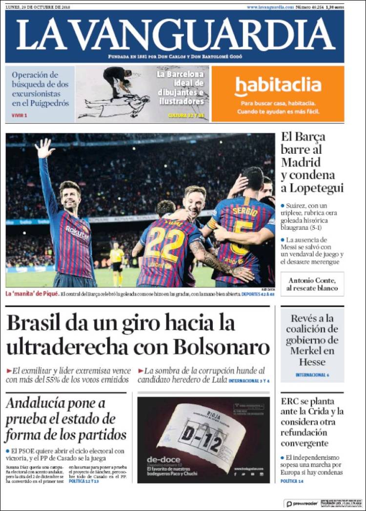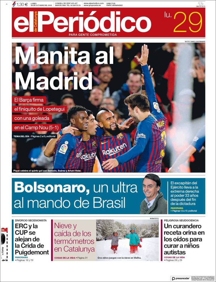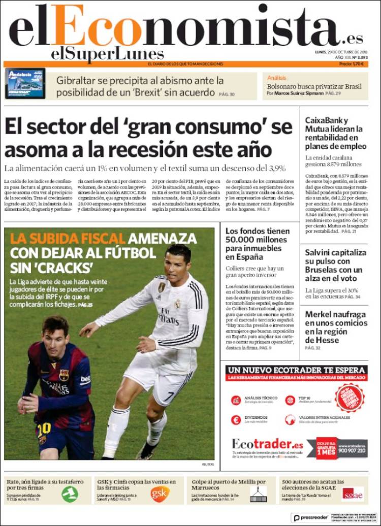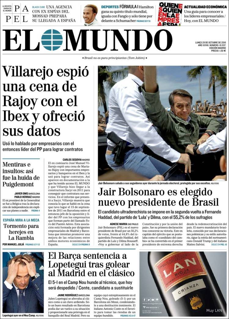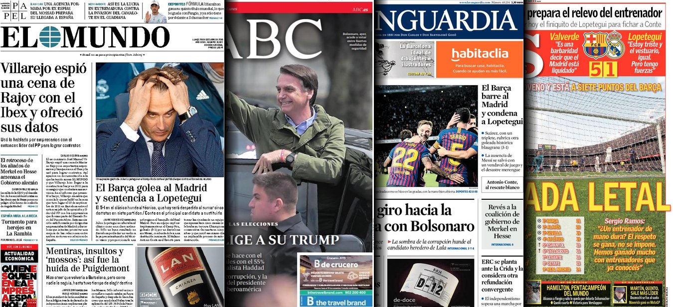 Portadas de los diarios El Mundo, El País, ABC, La Razón, La Vanguardia, El Periódico, Cinco Días, El Economista, Marca, As y Mundo Deportivo.