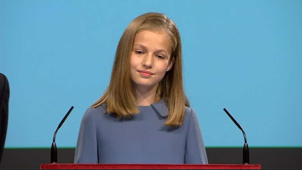 La princesa Leonor lee el artículo 1 de la Constitución en su primera intervención pública