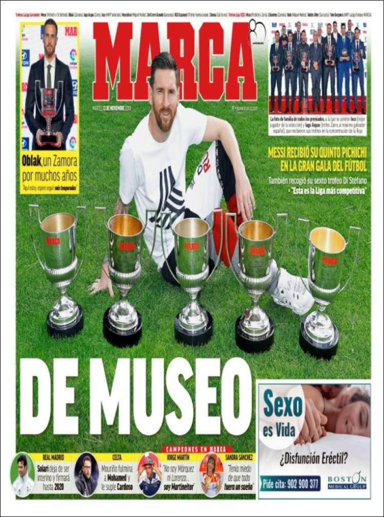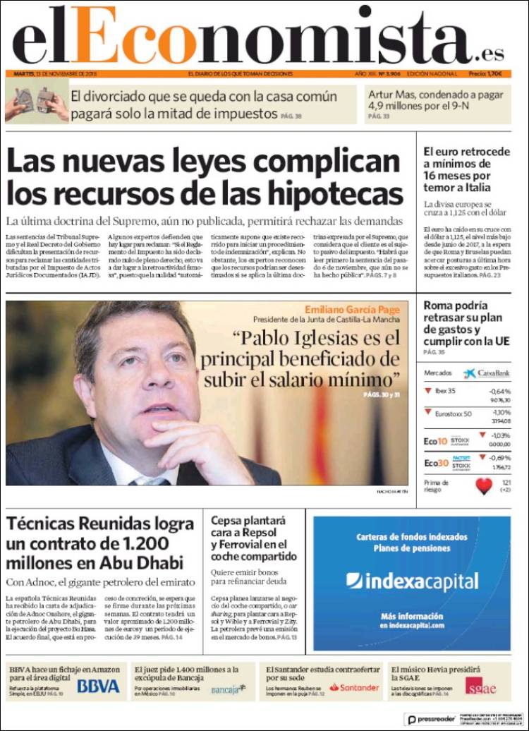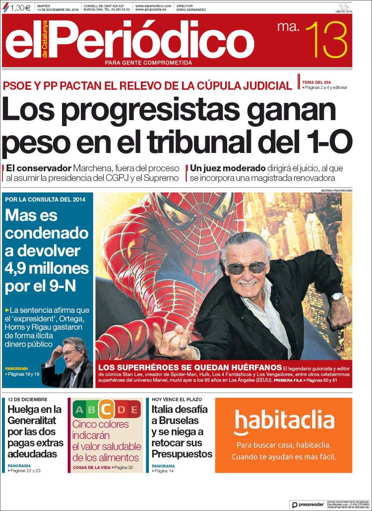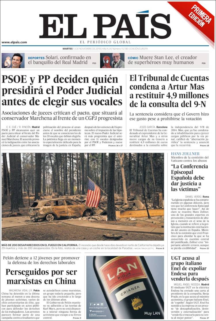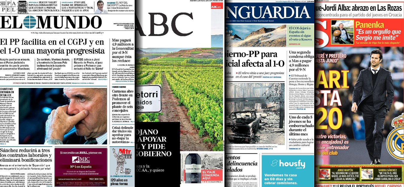 Portadas de los diarios El Mundo, El País, ABC, La Razón, La Vanguardia, El Periódico, Cinco Días, El Economista, Marca, As, Mundo Deportivo y Sport.