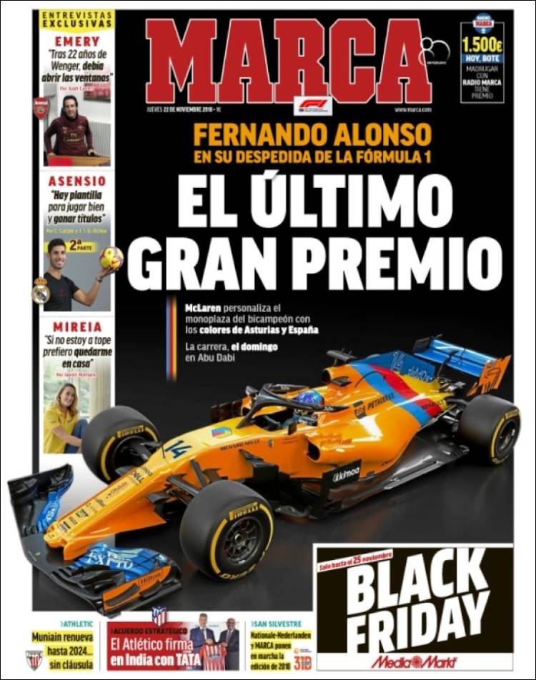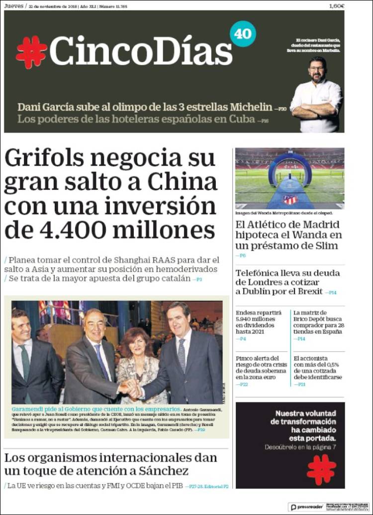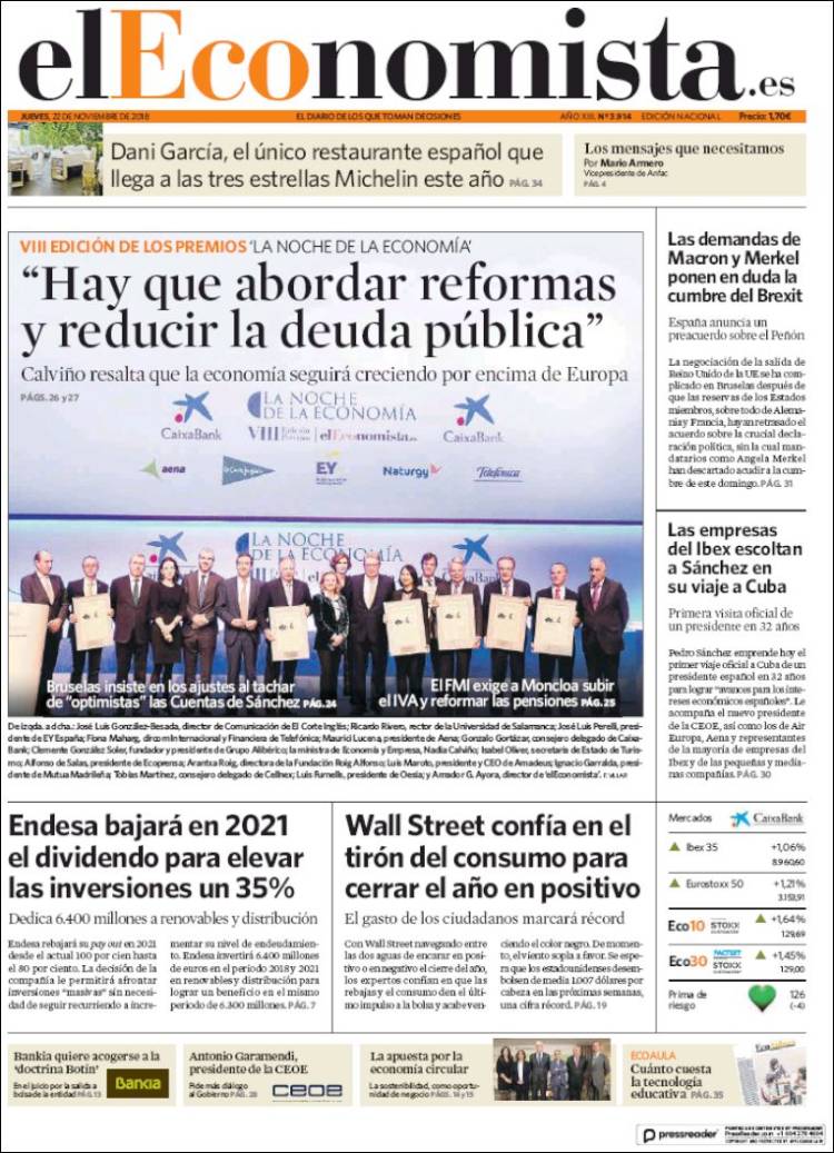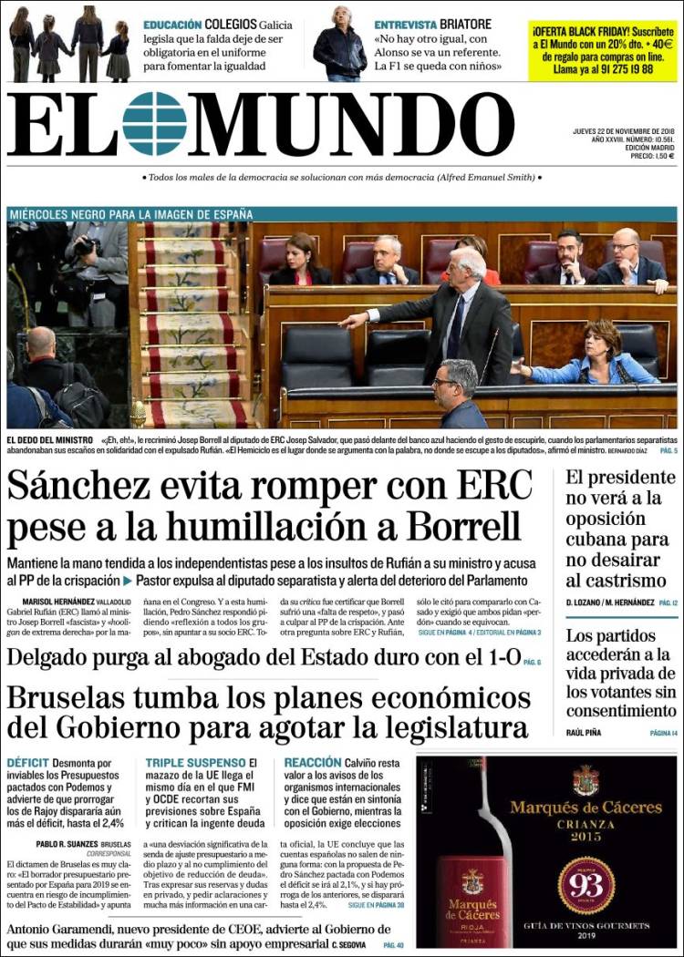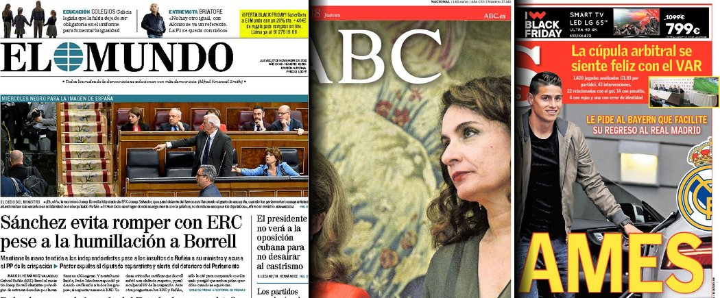 Portadas de los diarios El Mundo, El País, ABC, La Razón, La Vanguardia, El Periódico, Cinco Días, El Economista, Marca, As y Mundo Deportivo.