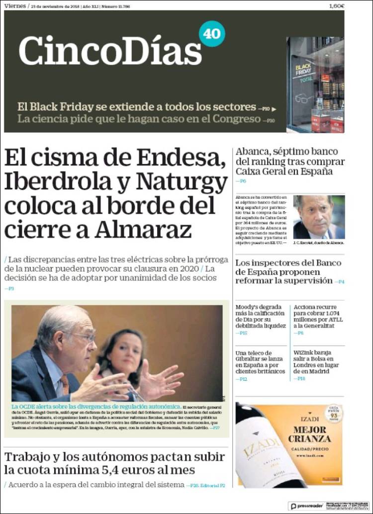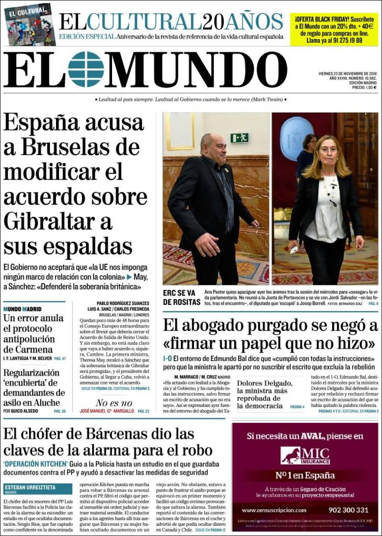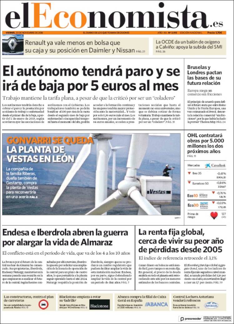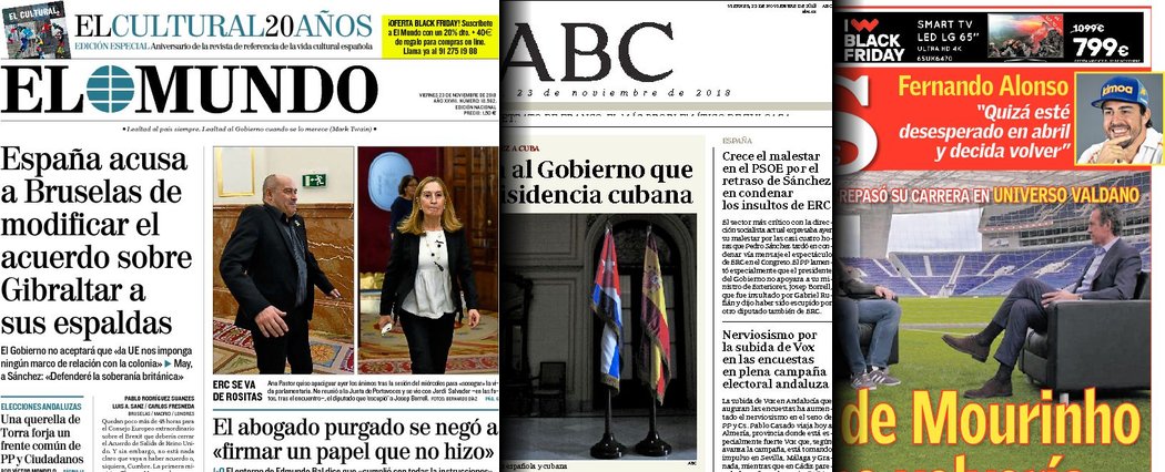 Portadas de los diarios El Mundo, El País, ABC, La Razón, La Vanguardia, El Periódico, Cinco Días, El Economista, Marca, As y Mundo Deportivo.