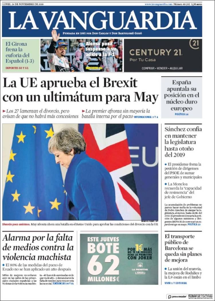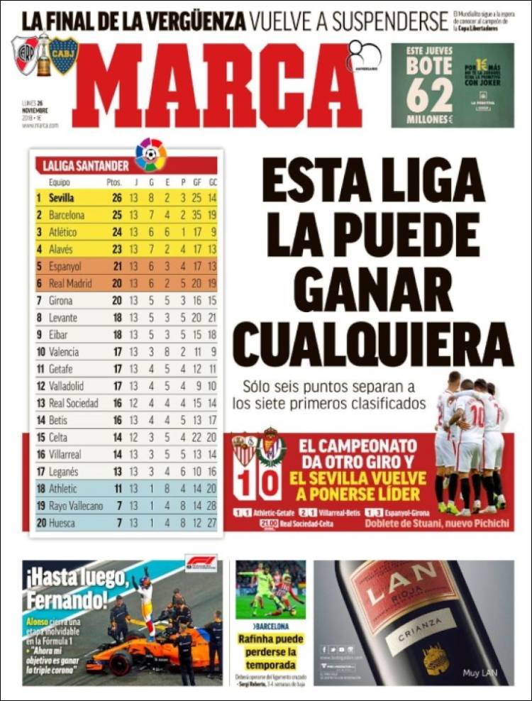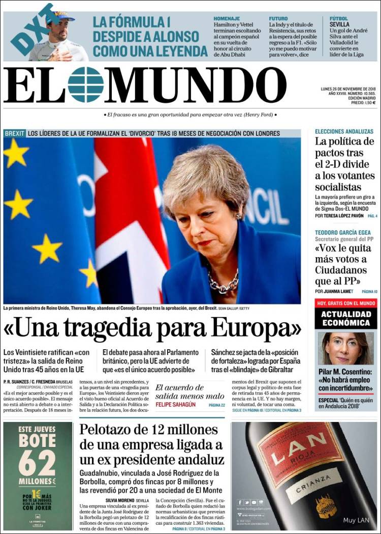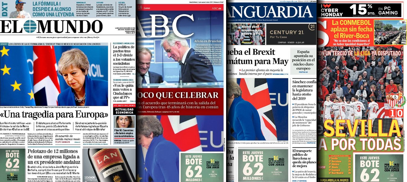 Portadas de los diarios El Mundo, El País, ABC, La Razón, La Vanguardia, El Periódico, Cinco Días, El Economista, Marca, As y Mundo Deportivo.