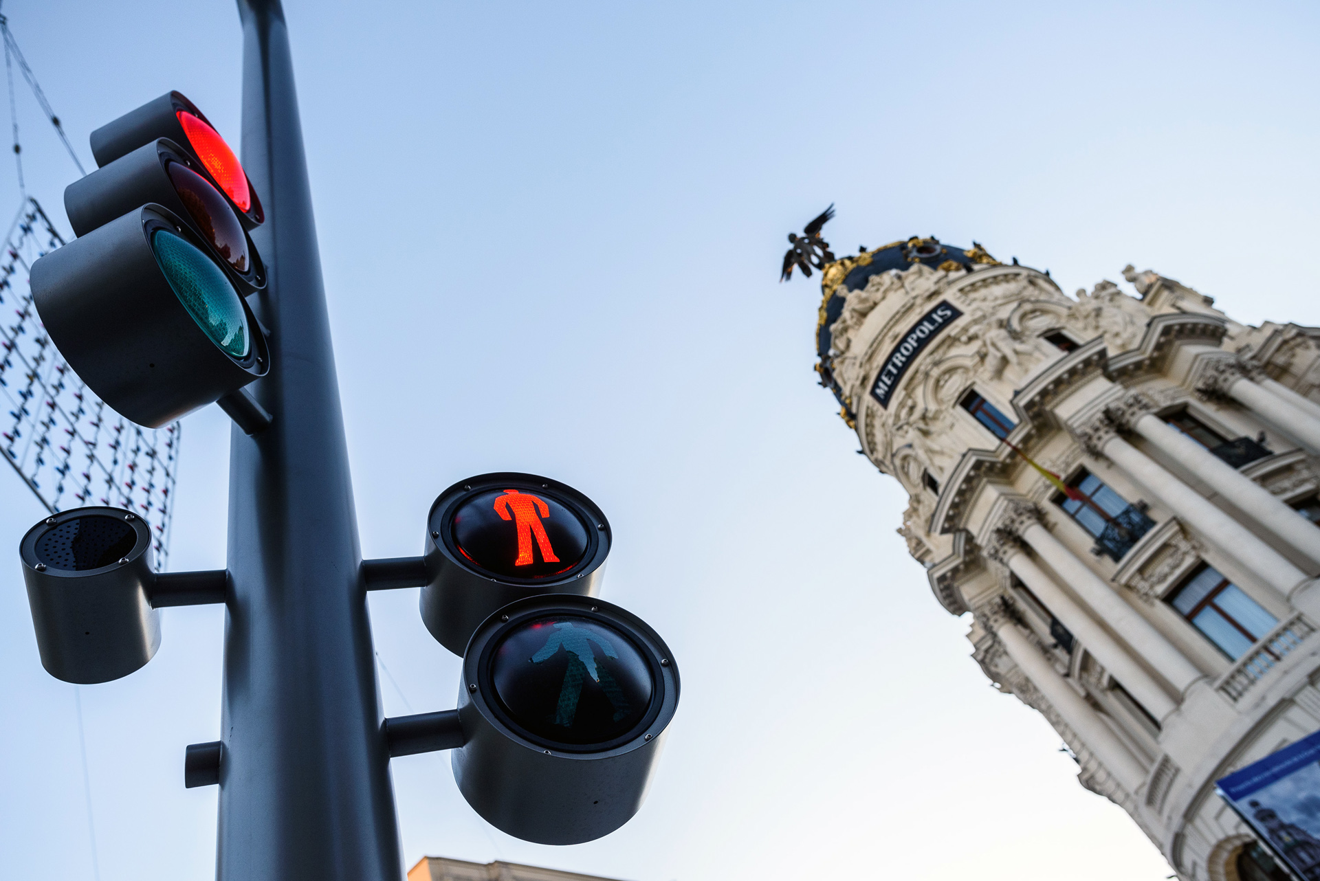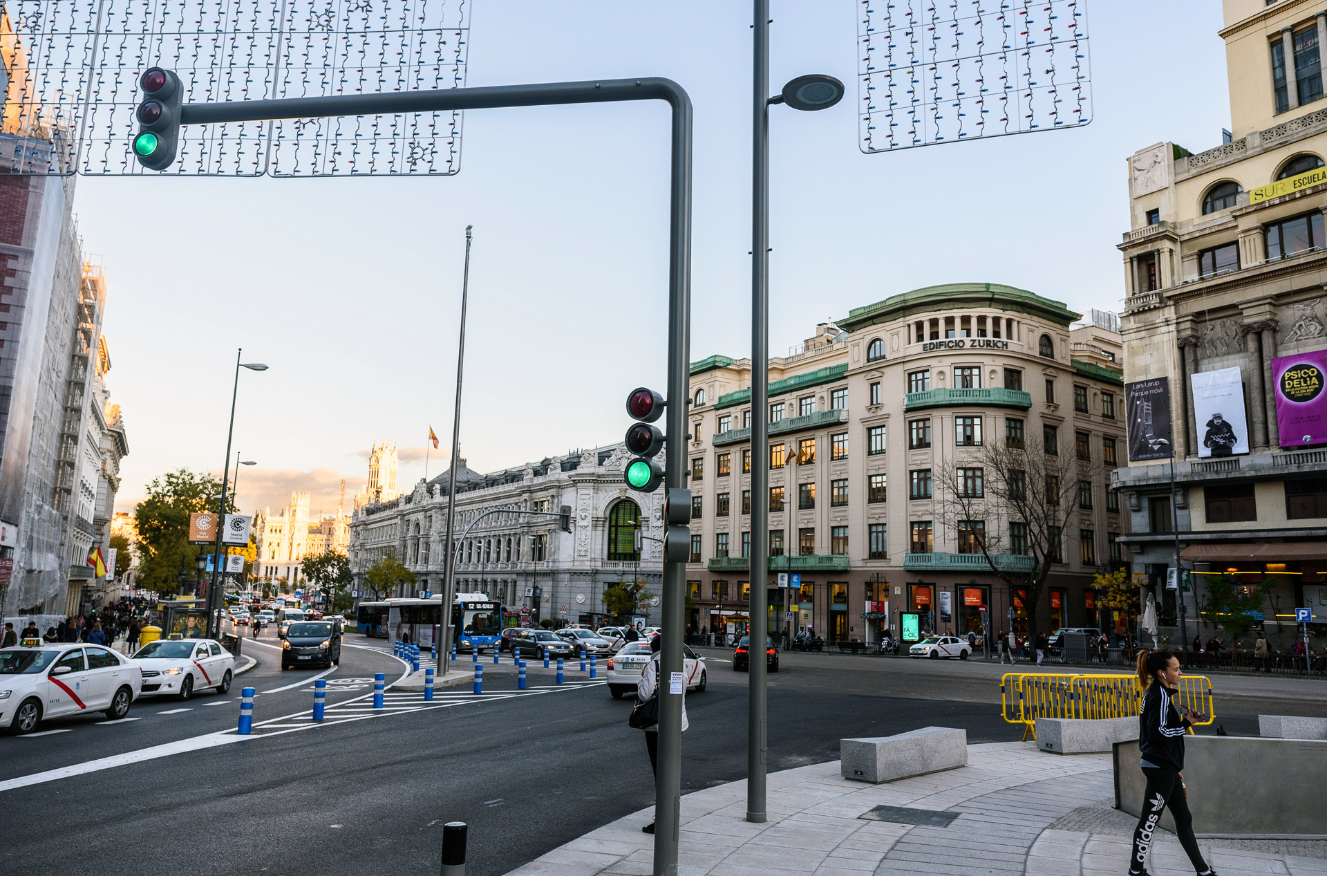De las 95 unidades de semáforos instaladas, 61 son columnas de un modelo adaptado especialmente para la nueva Gran Vía.