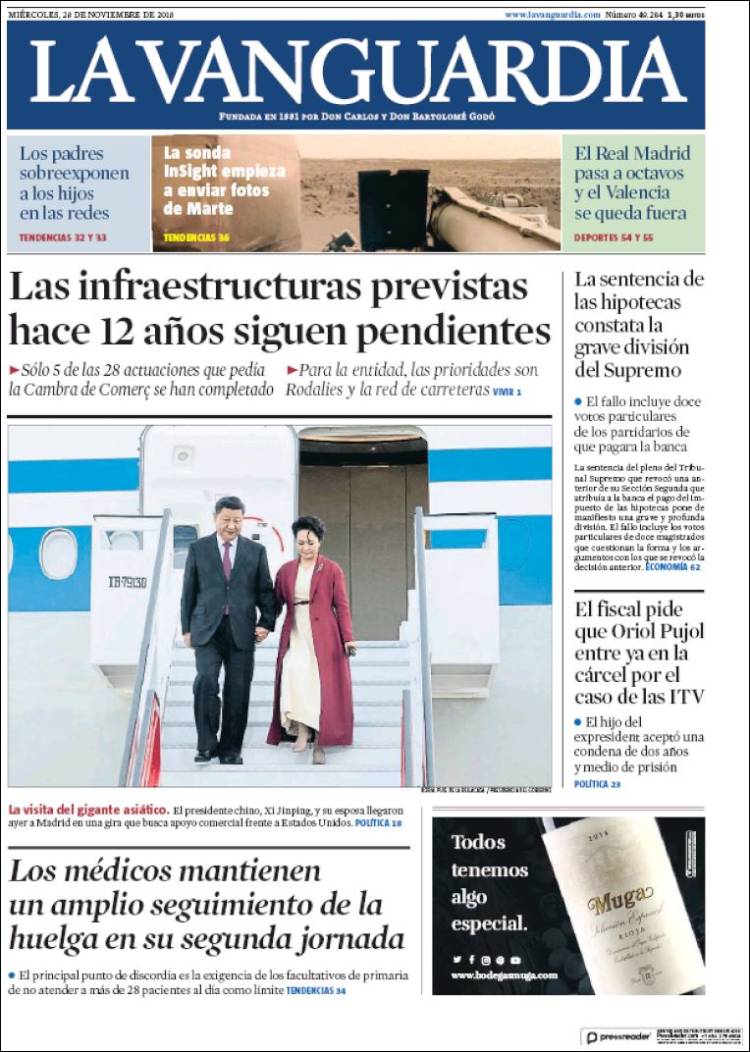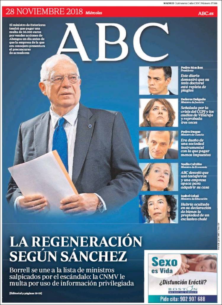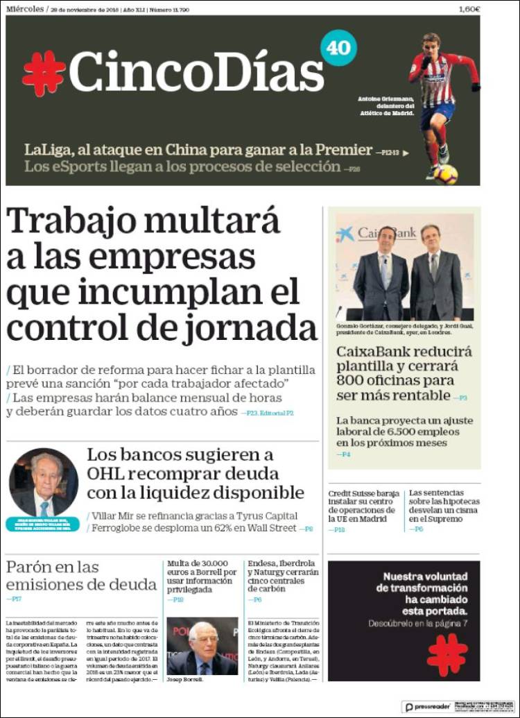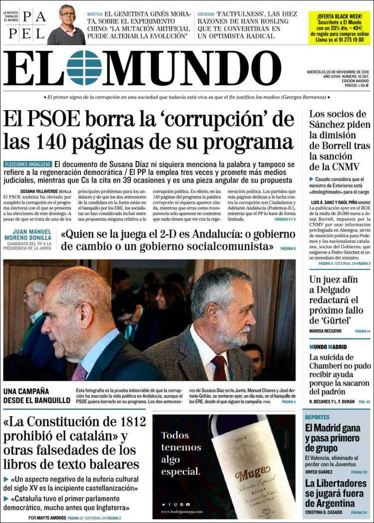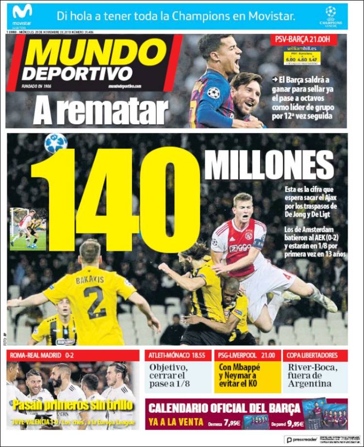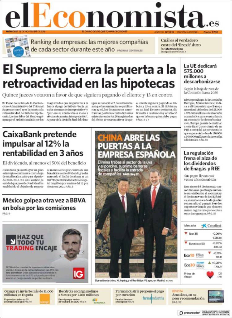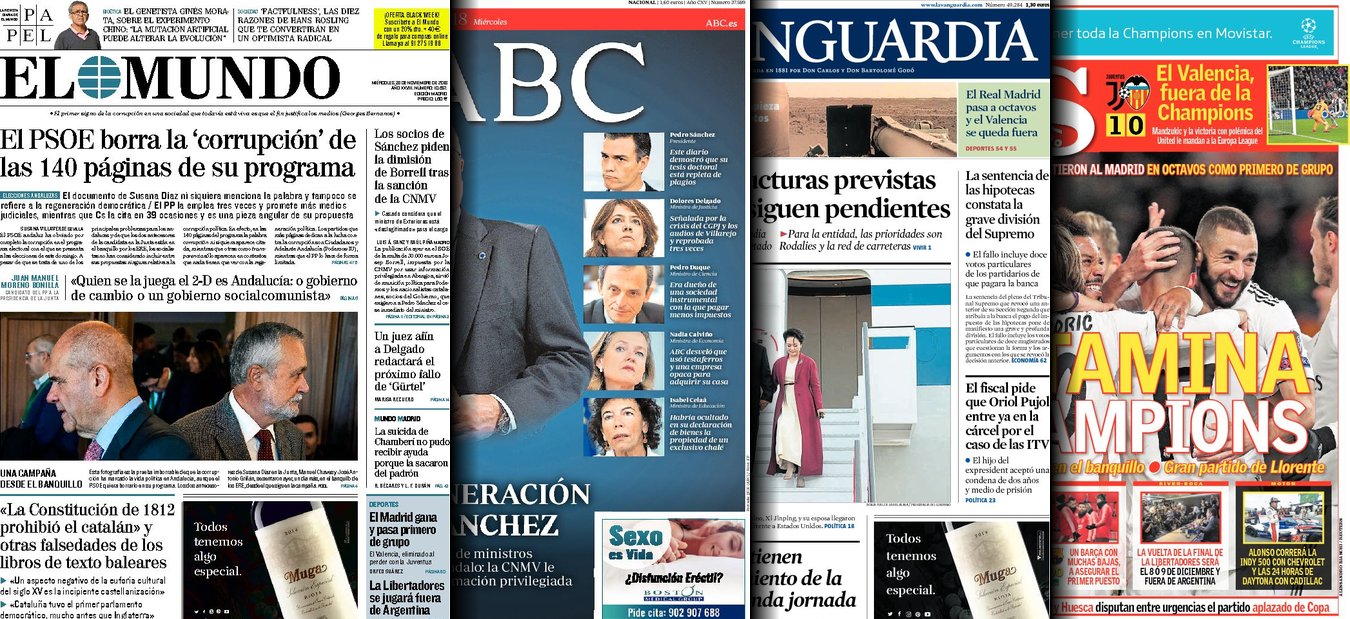 Portadas de los diarios El Mundo, El País, ABC, La Razón, La Vanguardia, El Periódico, Cinco Días, El Economista, Marca, As y Mundo Deportivo.