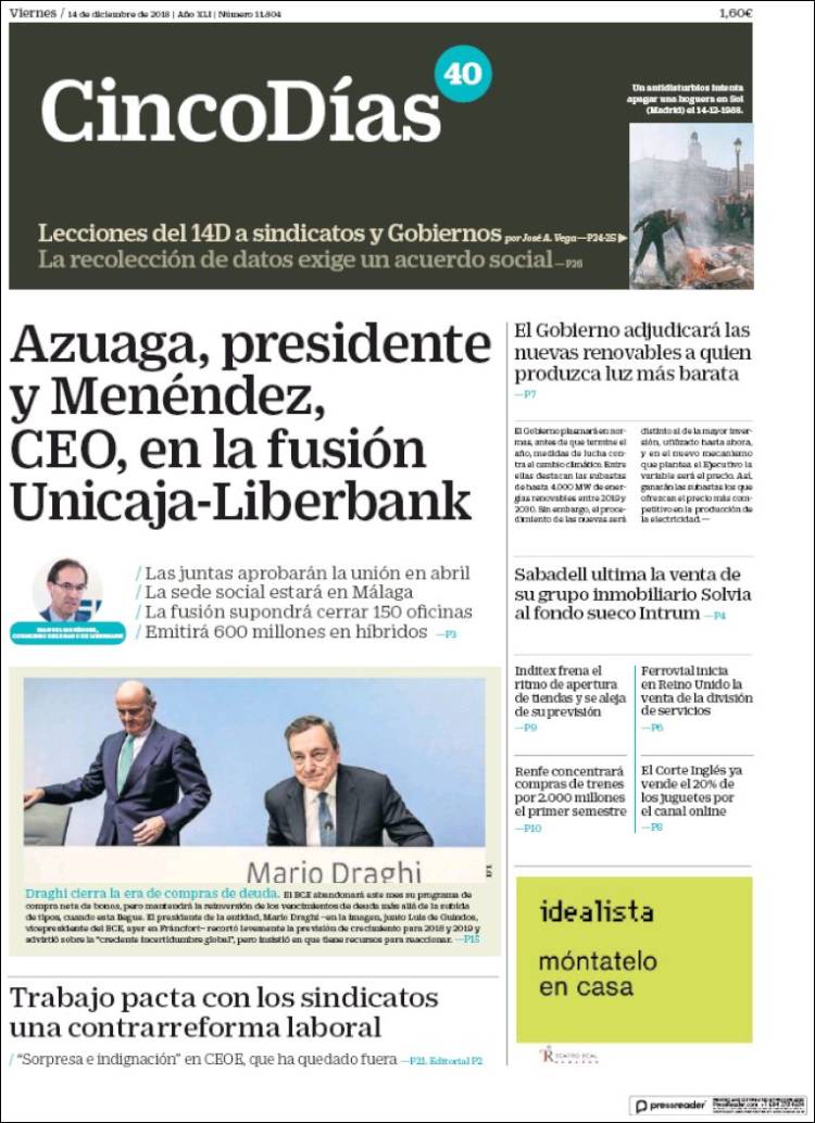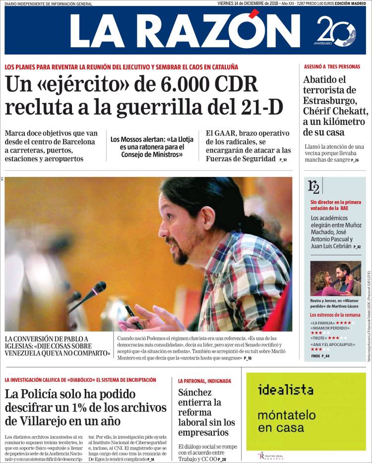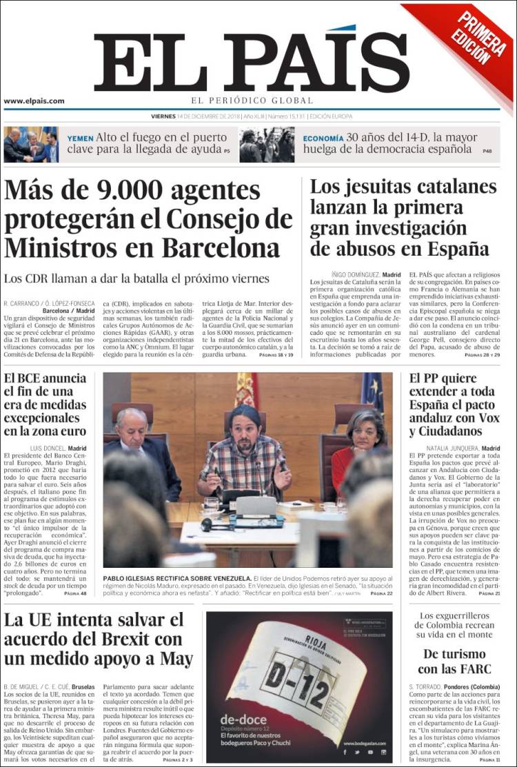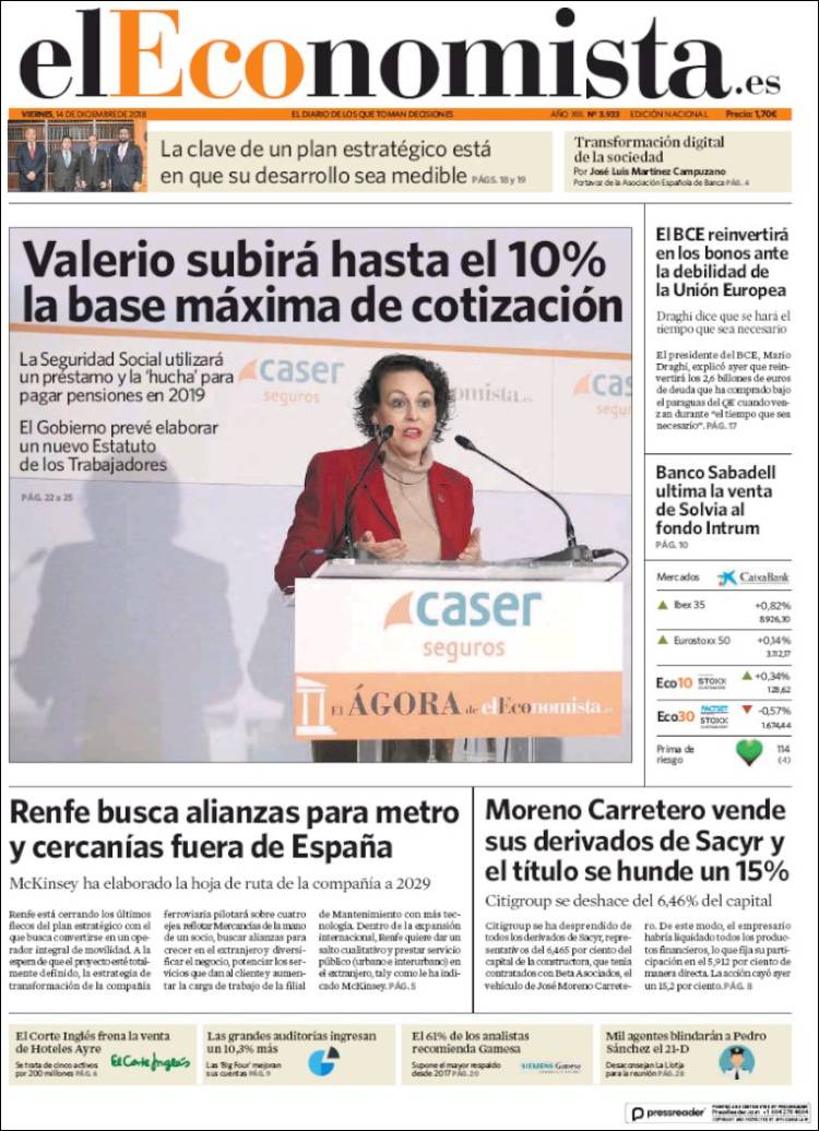 Portadas de los diarios El Mundo, El País, ABC, La Razón, La Vanguardia, El Periódico, Cinco Días, El Economista, Marca, As y Mundo  Deportivo.