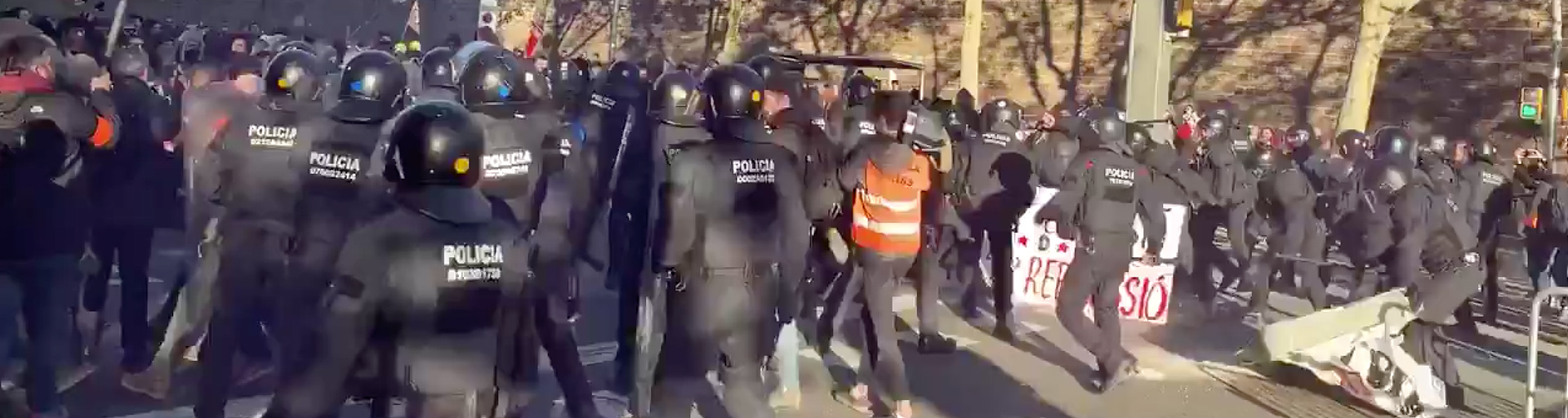 En las imágenes recogidas por Crónica Global se aprecia las primeras cargas policiales contra los violentos CDR que quieren saltarse el cordón policial en Barcelona.