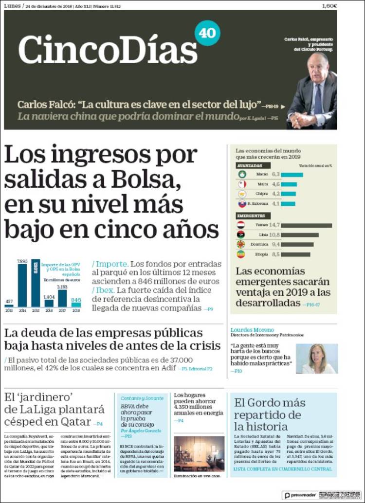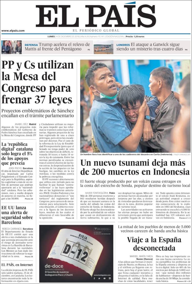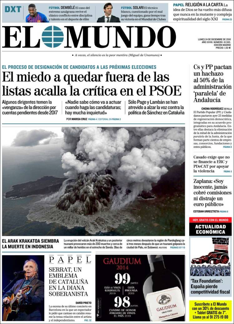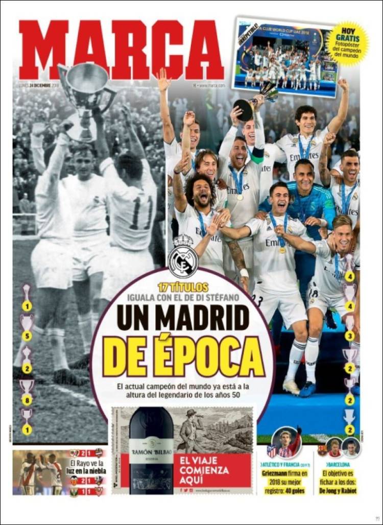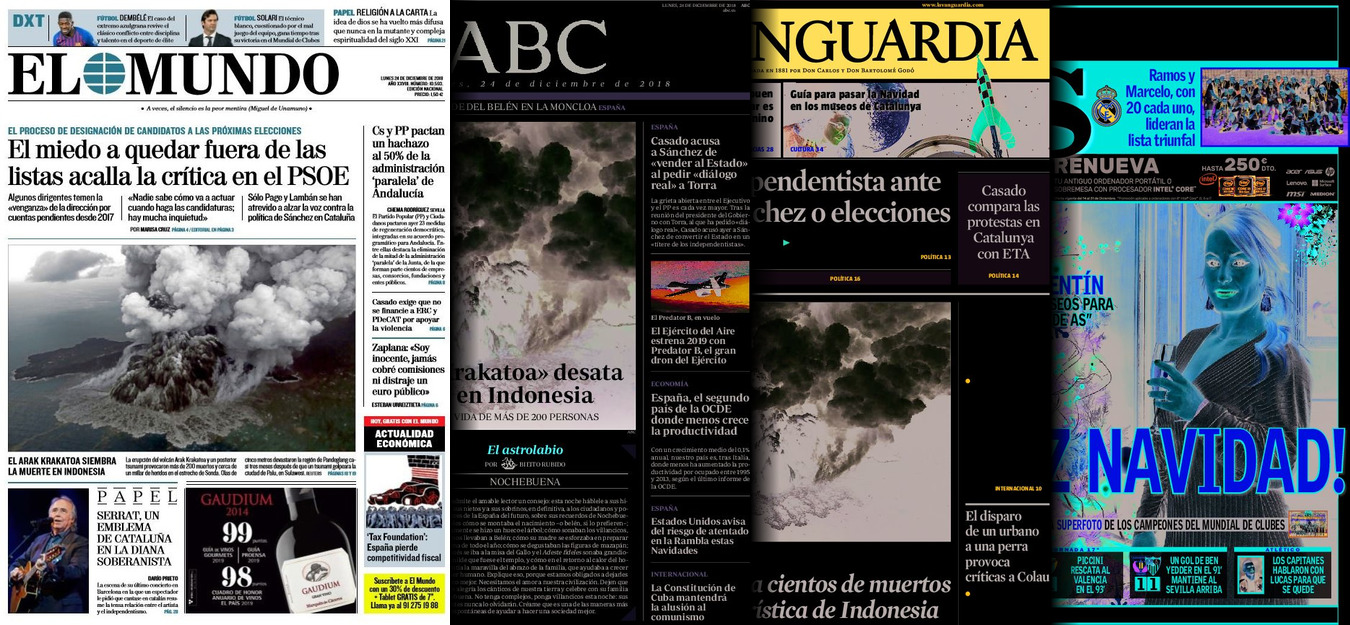 Portadas de los diarios El Mundo, El País, ABC, La Razón, La Vanguardia, El Periódico, Cinco Días, Marca, As, Mundo Deportivo y Sport.