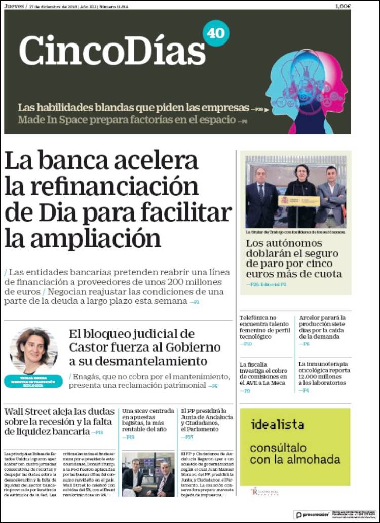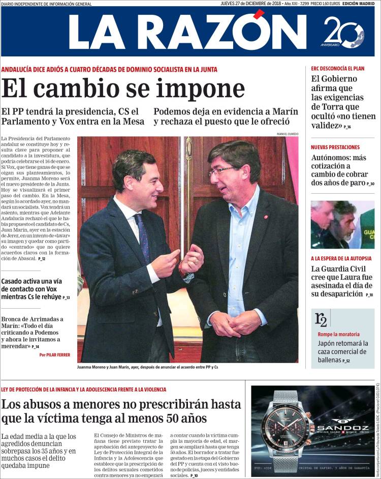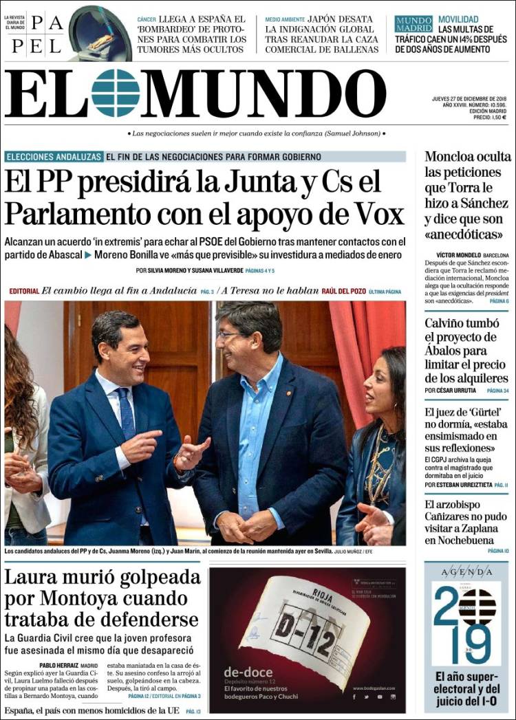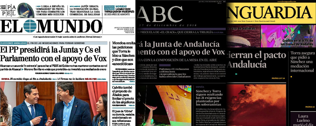 Portadas de los diarios El Mundo, El País, ABC, La Razón, La Vanguardia, El Periódico, Cinco Días, Marca, As y Mundo Deportivo.
