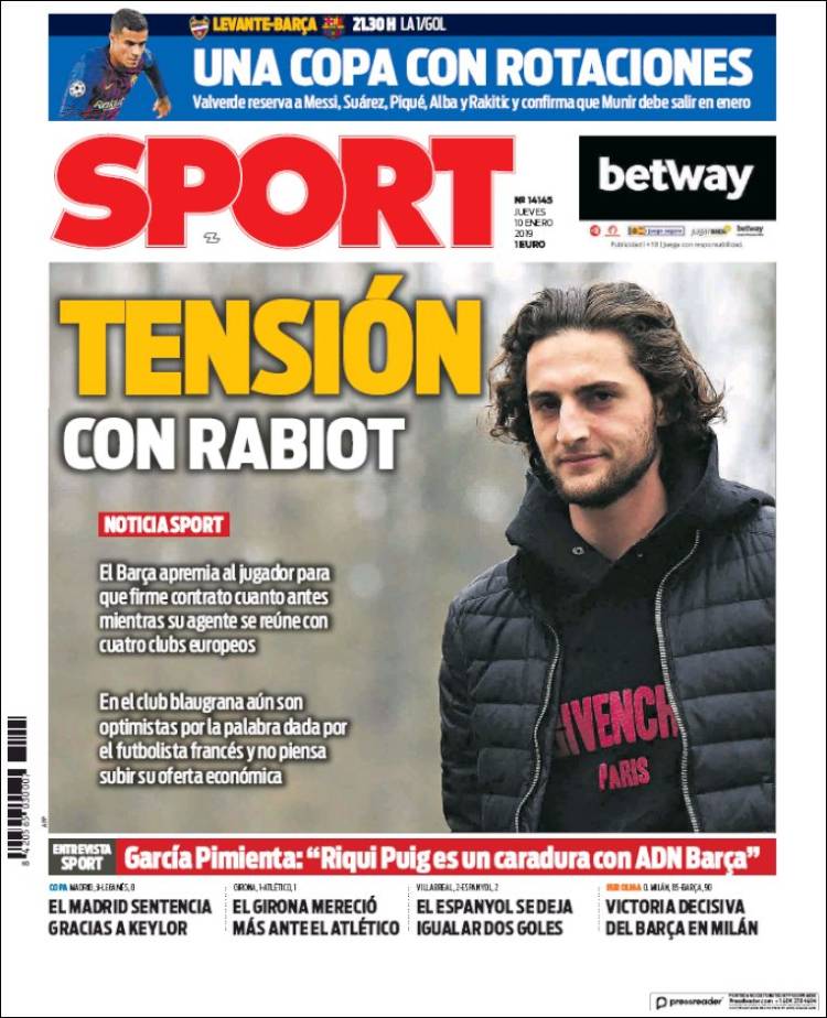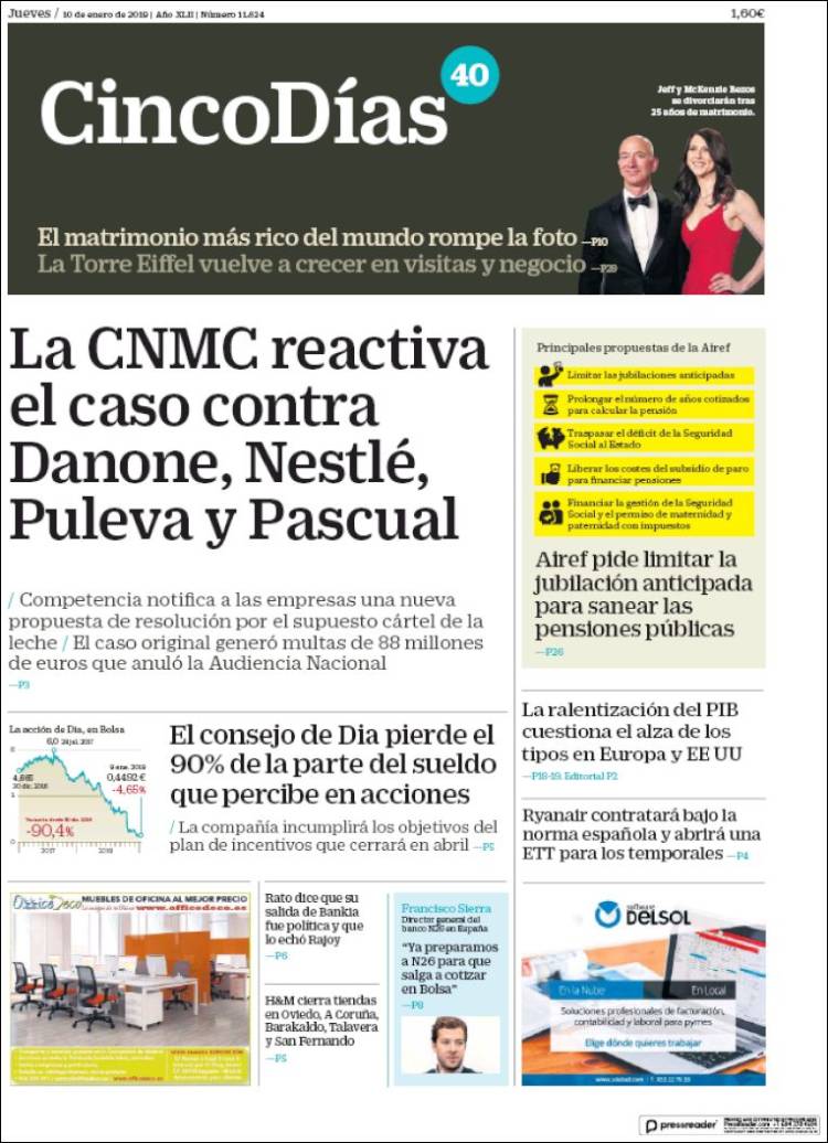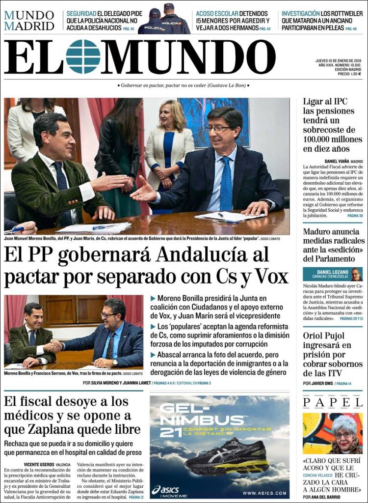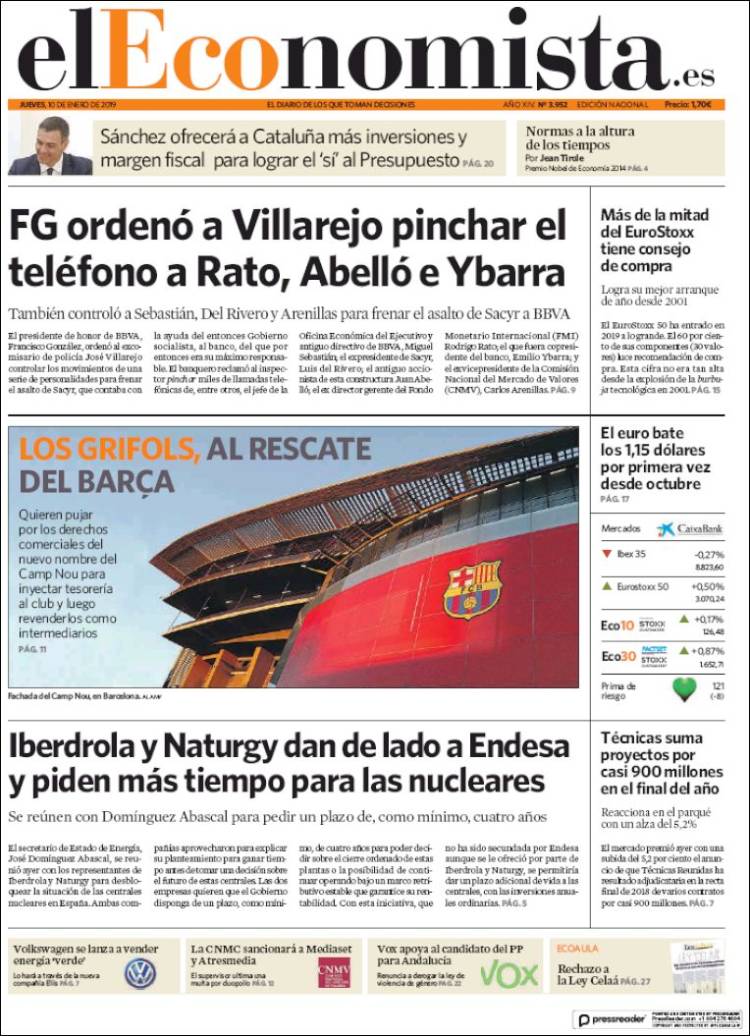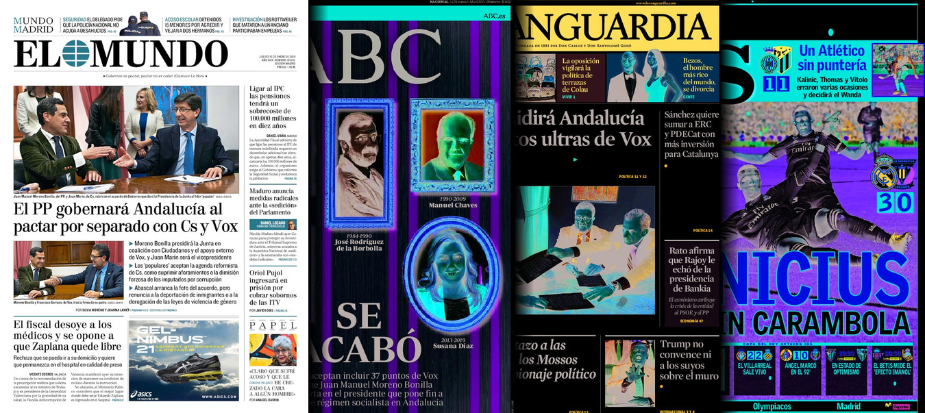 Portadas de los diarios El Mundo, El País, ABC, La Razón, La Vanguardia, El Periódico, Cinco Días, El Economista, Marca, As, Mundo  Deportivo y Sport.