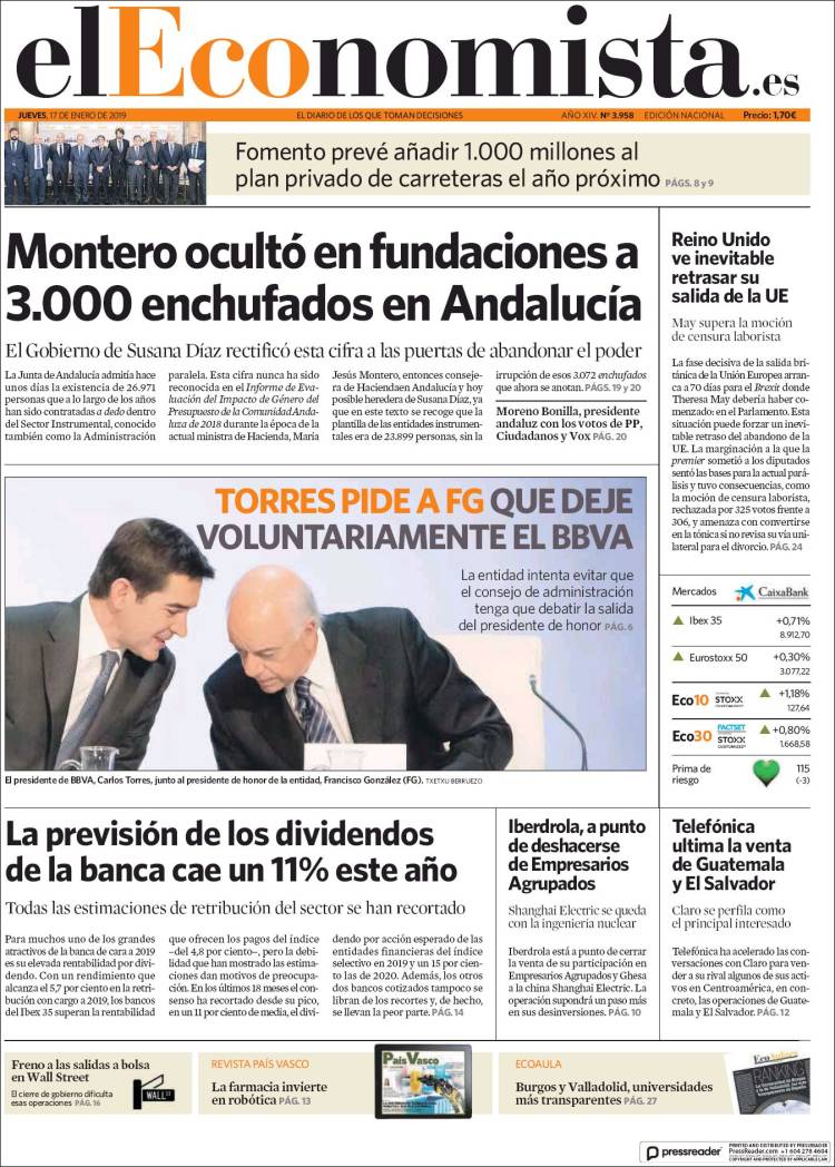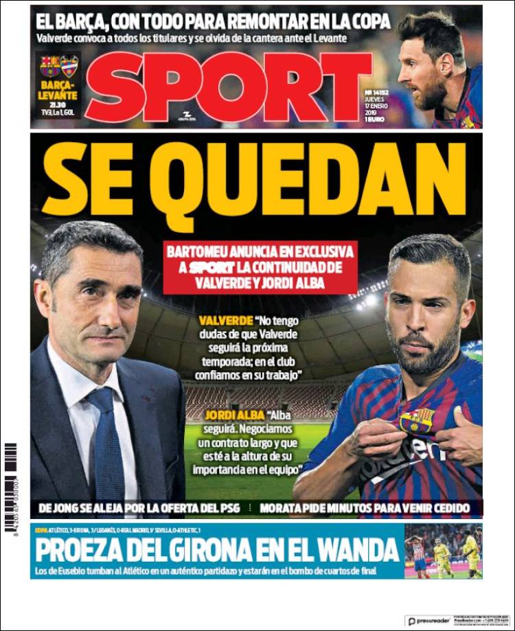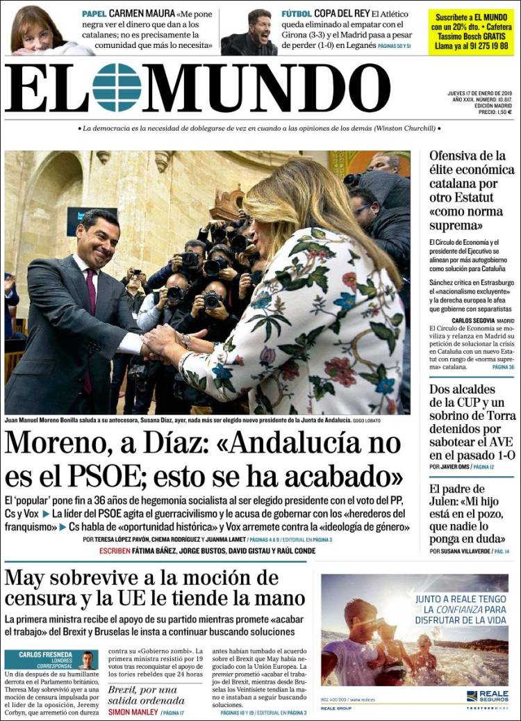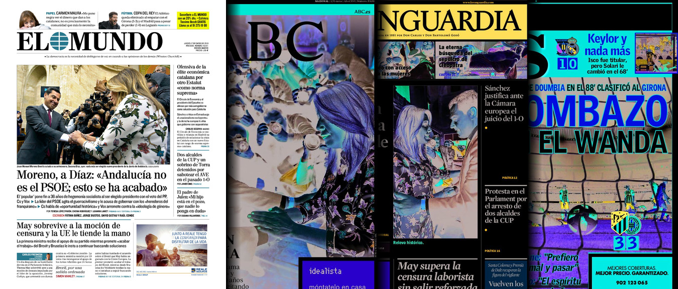 Portadas de los diarios El Mundo, El País, ABC, La Razón, La Vanguardia, El Periódico, Cinco Días, El Economista, Marca, As, Mundo  Deportivo y Sport.