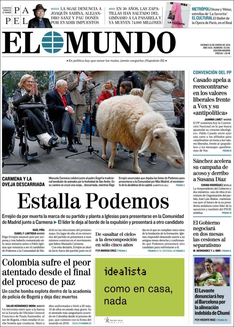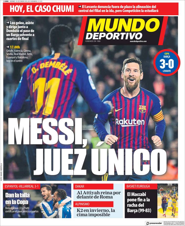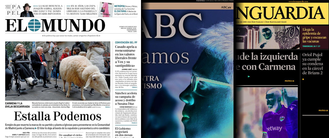 Portadas de los diarios El Mundo, El País, ABC, La Razón, La Vanguardia, El Periódico, Cinco Días, El Economista, Marca, As, Mundo  Deportivo y Sport.