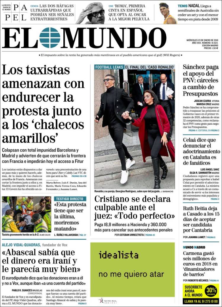 Portadas de los diarios El Mundo, El País, ABC, La Razón, La Vanguardia, El Periódico, Cinco Días, El Economista, Marca, As y Mundo Deportivo.