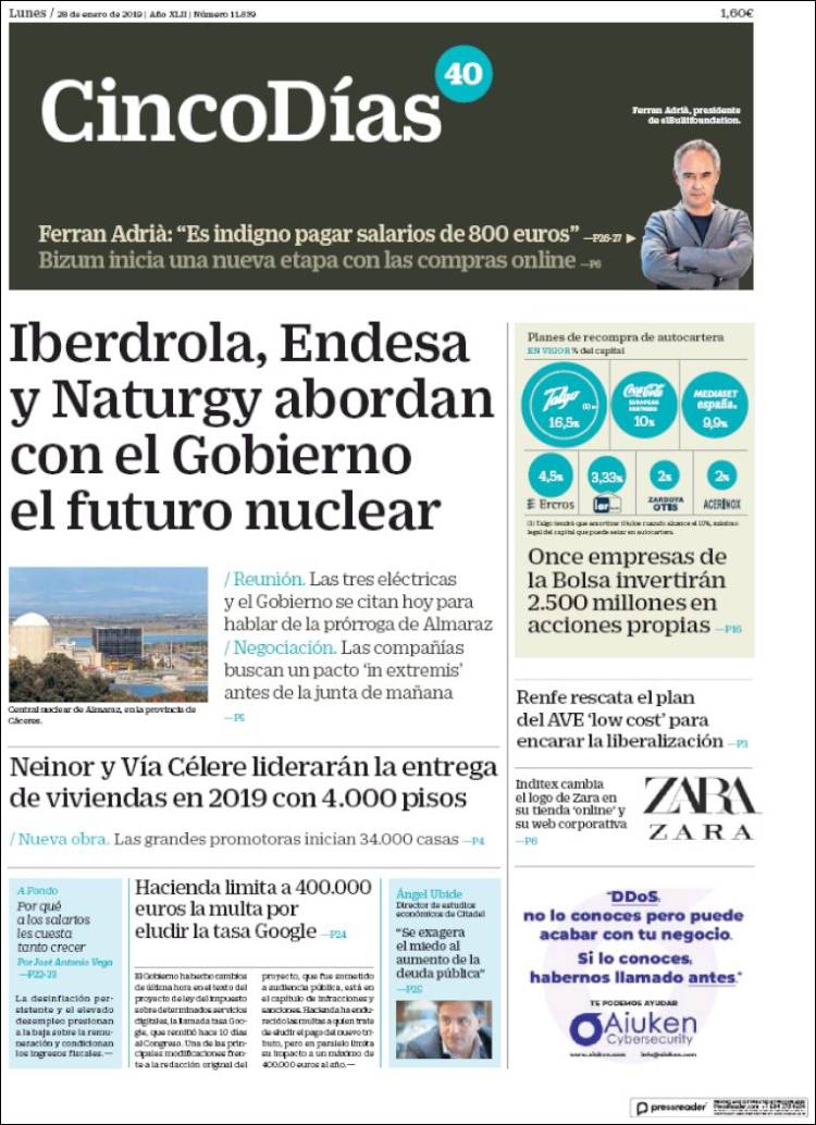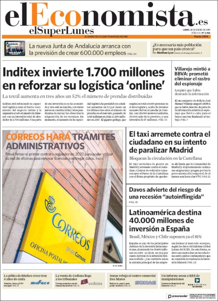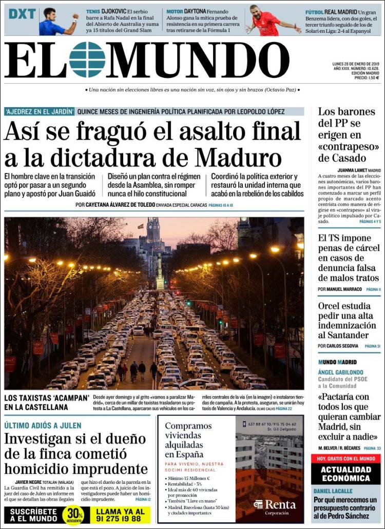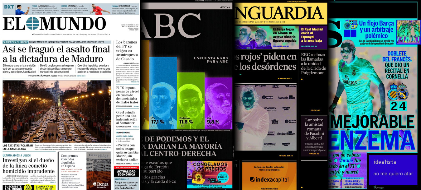 Portadas de los diarios El Mundo, El País, ABC, La Razón, La Vanguardia, El Periódico, Cinco Días, El Economista, Marca, As, Mundo Deportivo y Sport..