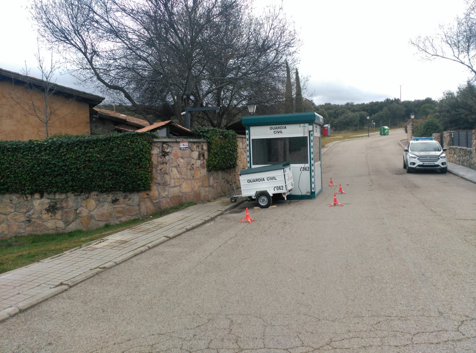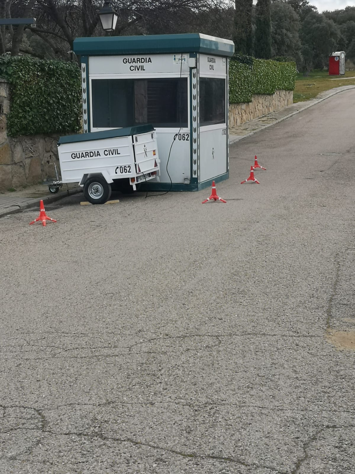 Garita de la Guardia Civil instalada en el muro que rodea la gran propiedad de Pablo Iglesias e Irene Montero