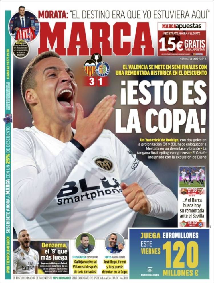 Portadas de los diarios El Mundo, El País, ABC, La Razón, La Vanguardia, El Periódico, Cinco Días, El Economista, Marca, As y Mundo Deportivo.