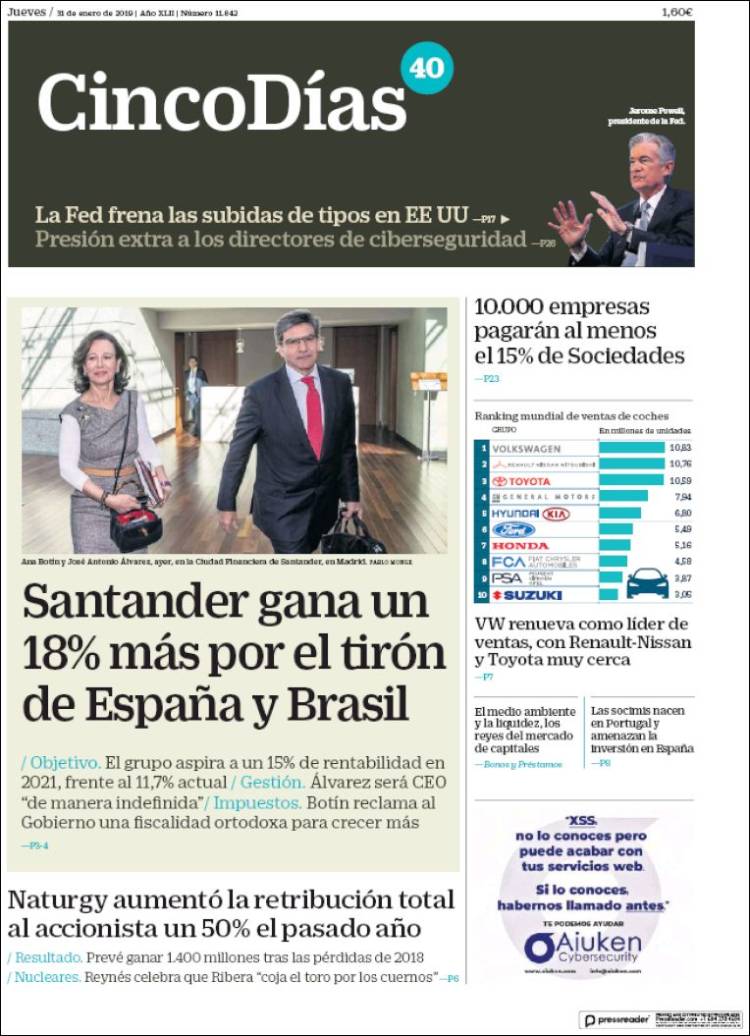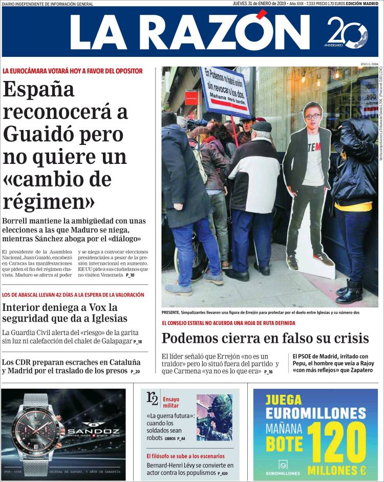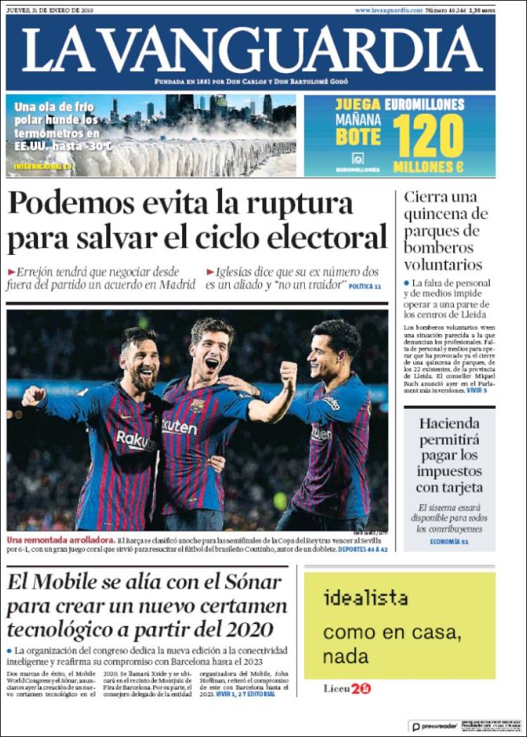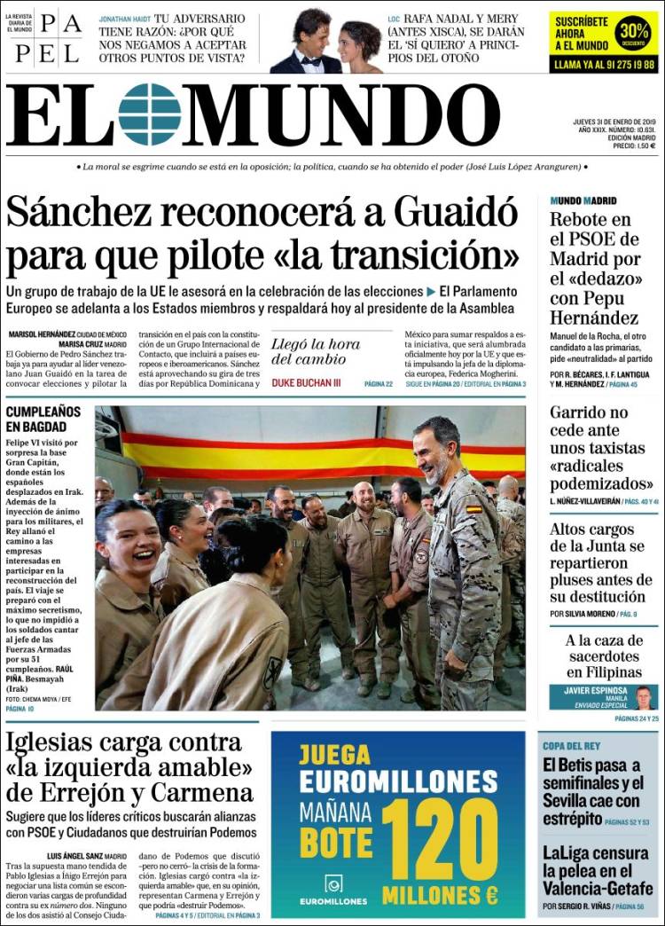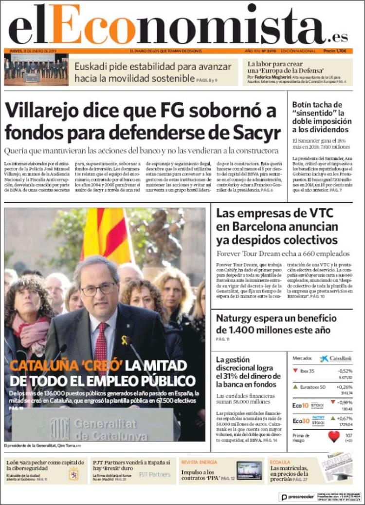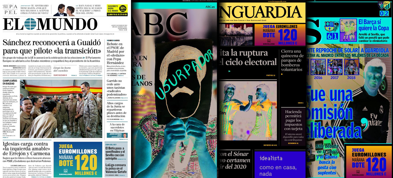 Portadas de los diarios El Mundo, El País, ABC, La Razón, La Vanguardia, El Periódico, Cinco Días, El Economista, Marca, As, Mundo Deportivo y Sport..