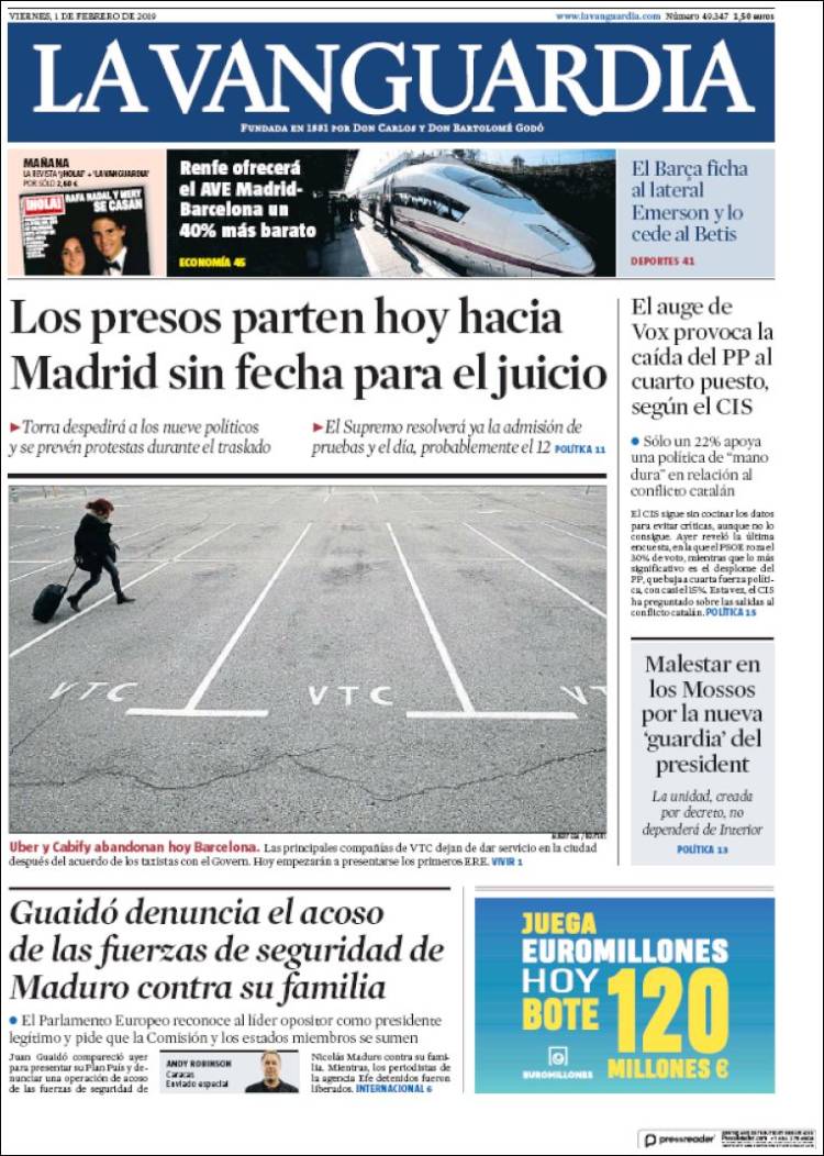 Portadas de los diarios El Mundo, El País, ABC, La Razón, La Vanguardia, El Periódico, Cinco Días, El Economista, Marca, As, Mundo Deportivo y Sport.