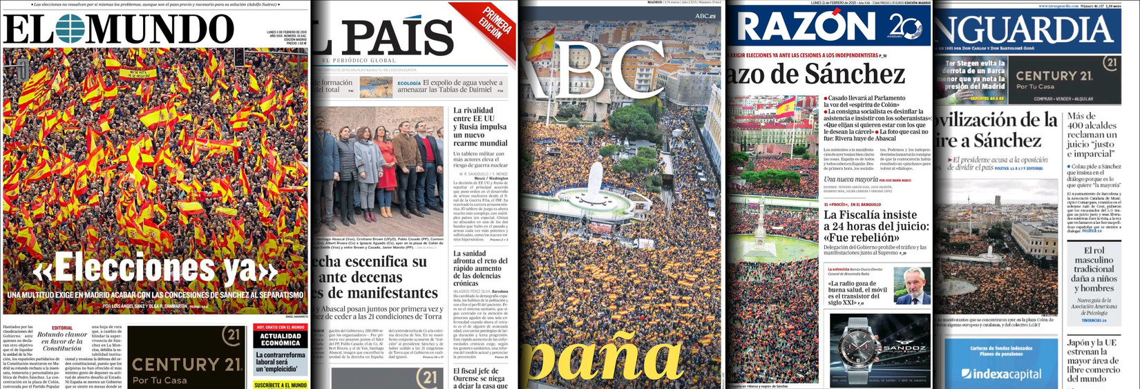 Portadas de los diarios El Mundo, El País, ABC, La Razón, La Vanguardia, El Periódico, Cinco Días, El Economista, Marca, As Mundo Deportivo.