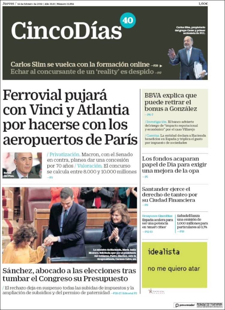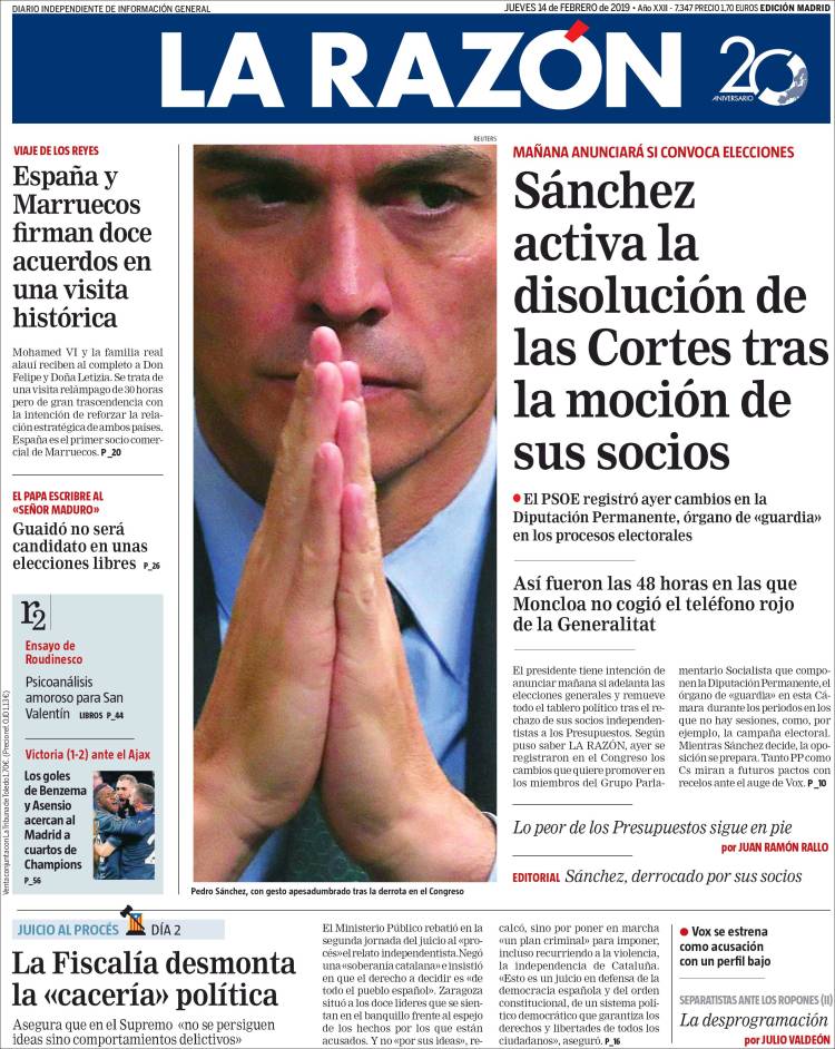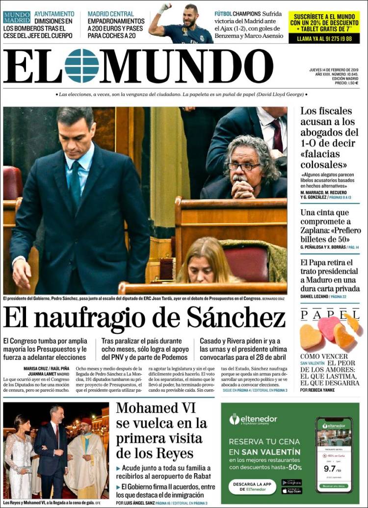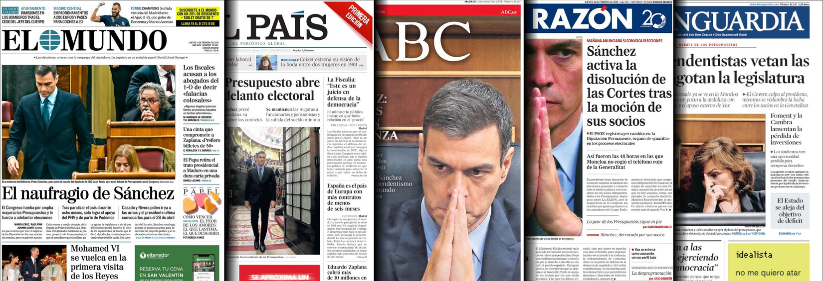 Portadas de los diarios El Mundo, El País, ABC, La Razón, La Vanguardia, El Periódico, Cinco Días, El Economista, Marca, As y Mundo Deportivo.