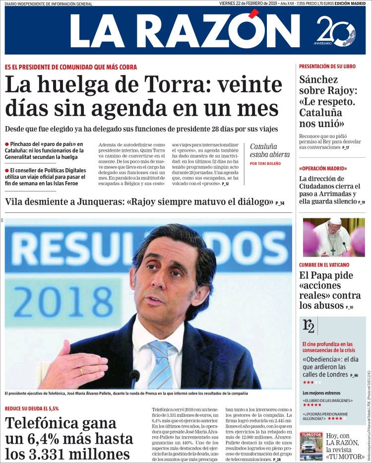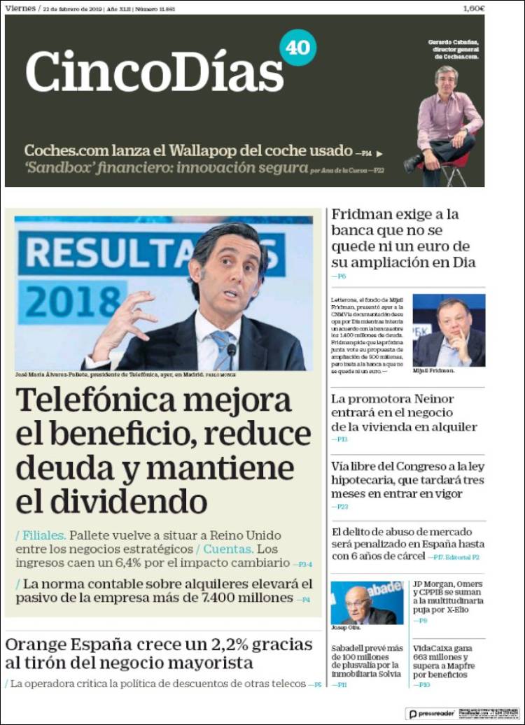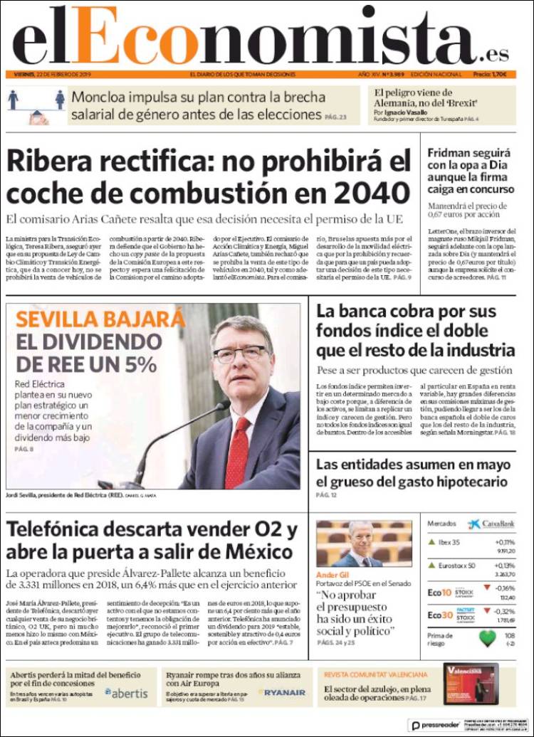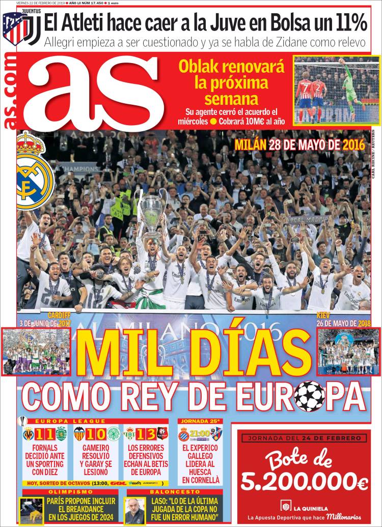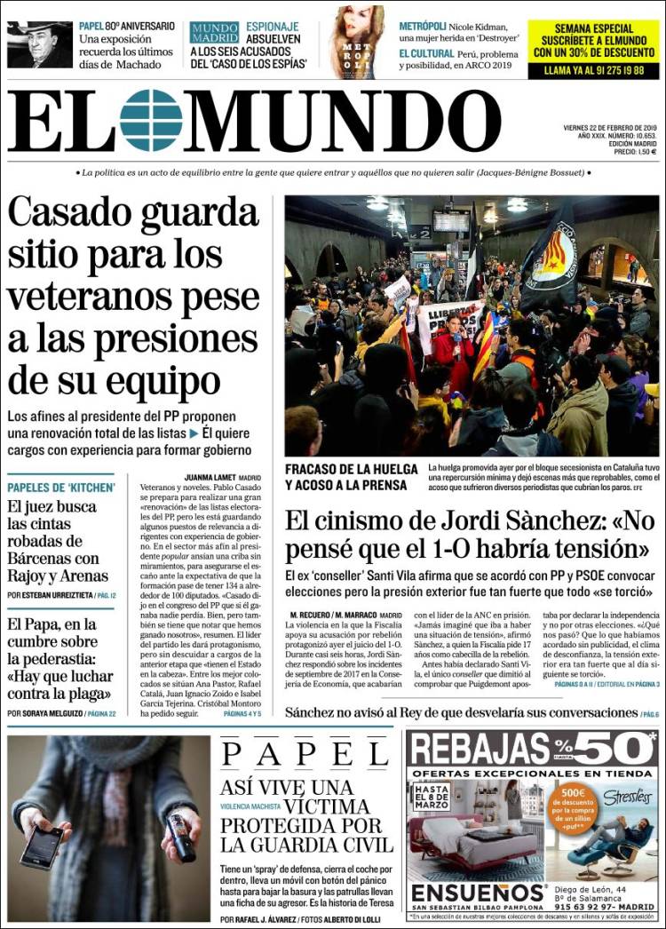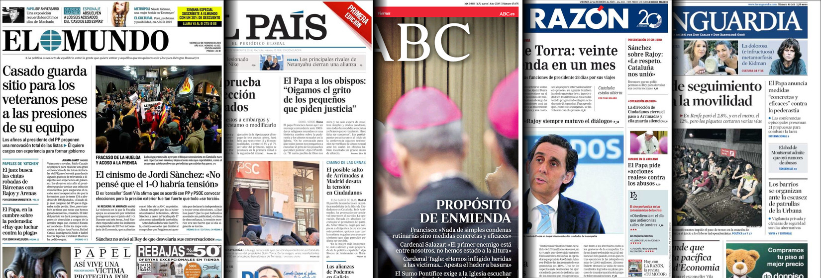 Portadas de los diarios El Mundo, El País, ABC, La Razón, La Vanguardia, Cinco Días, El Economista, Marca, As, Mundo Deportivo y Sport.