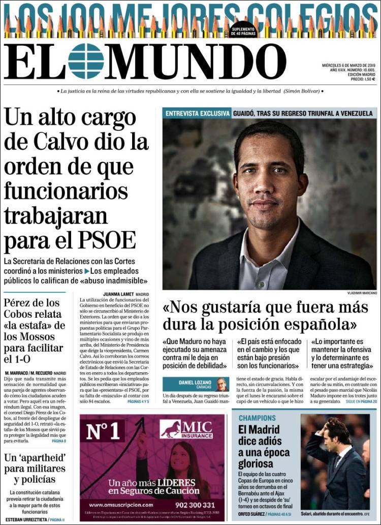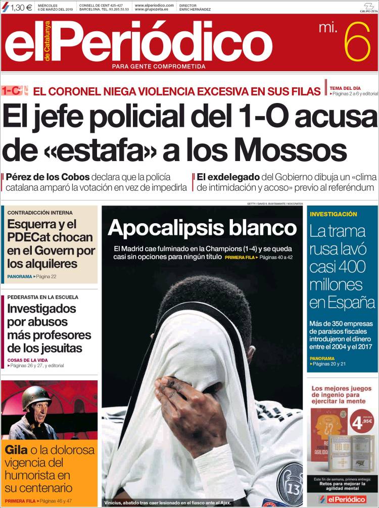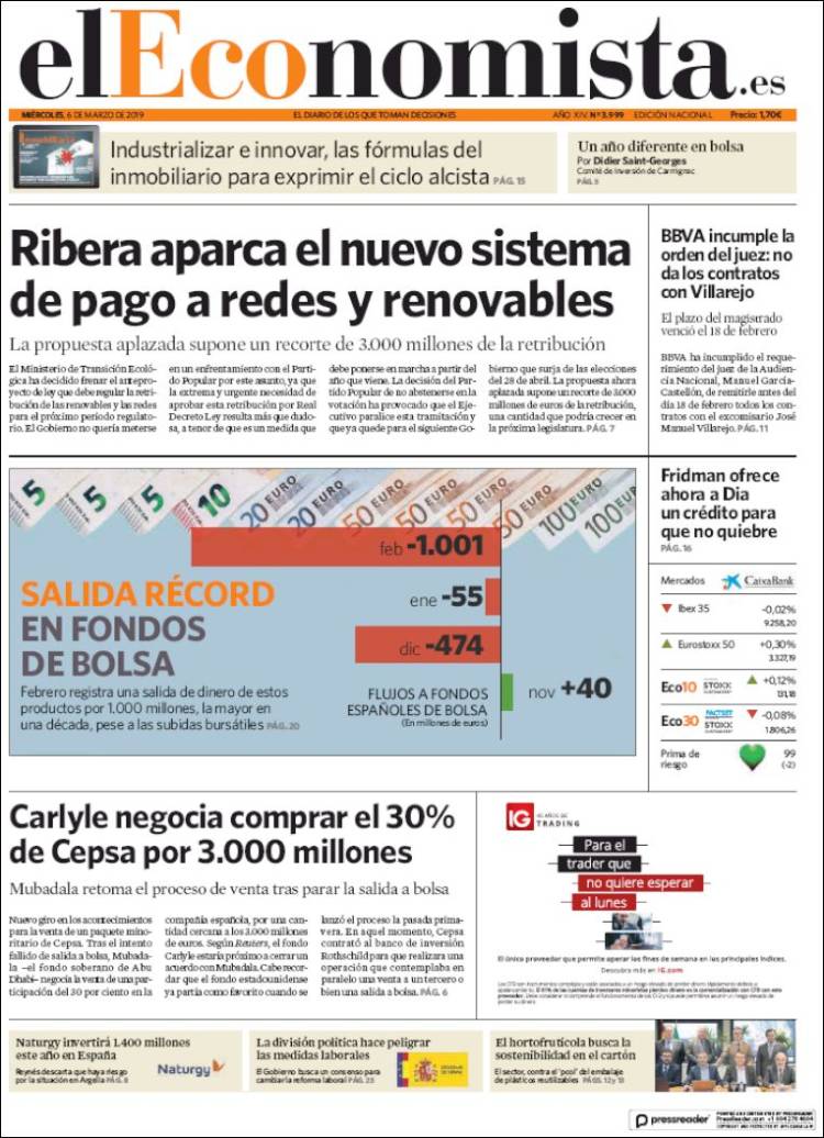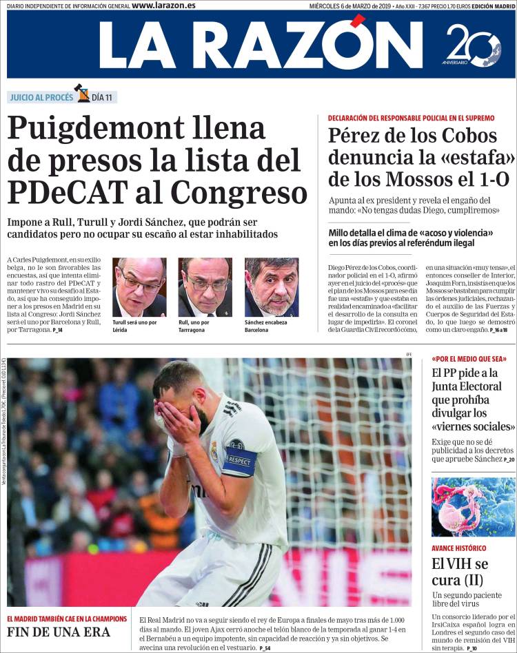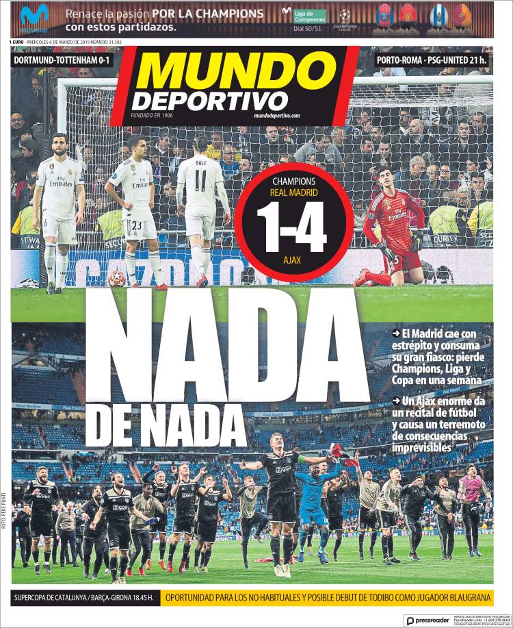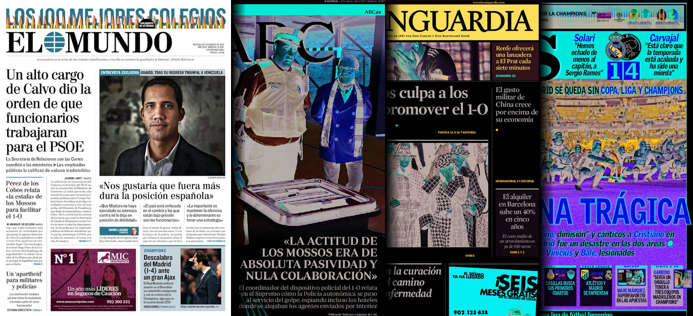 Portadas de los diarios El Mundo, El País, ABC, La Razón, La Vanguardia, El Periódico, CincoDías, El Economista, Marca, As y Mundo Deportivo.