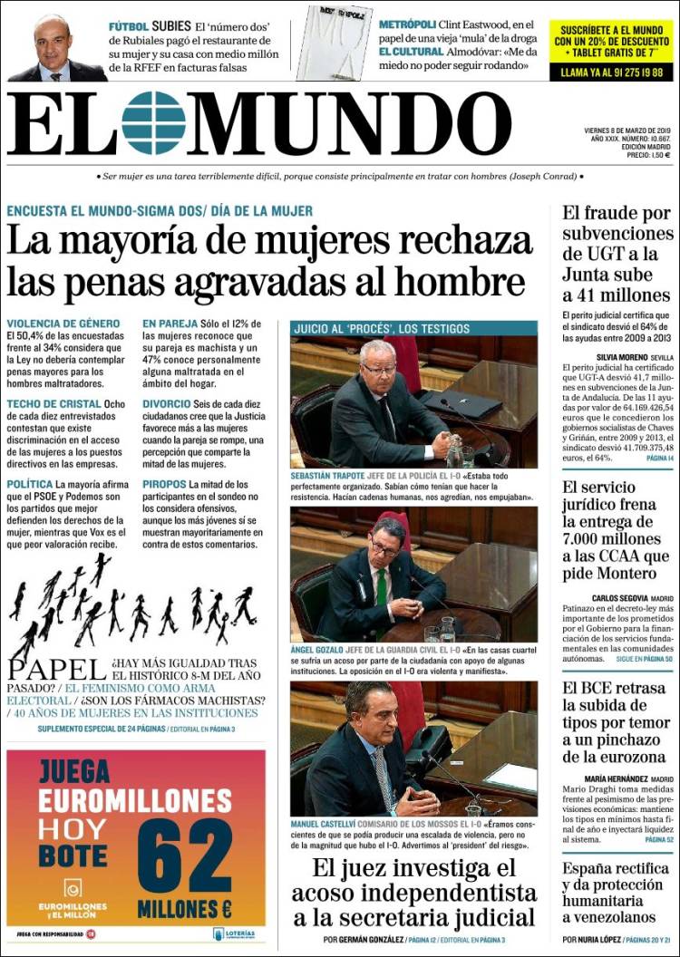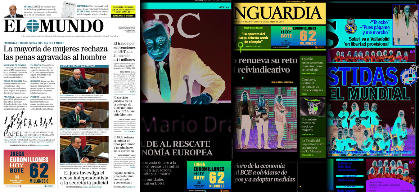 Portadas de los diarios El Mundo, El País, ABC, La Razón, La Vanguardia, El Periódico, CincoDías, El Economista, Marca, As y Mundo Deportivo.