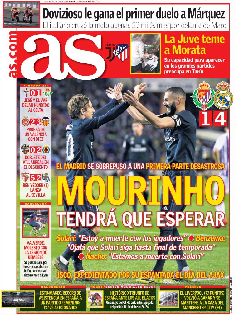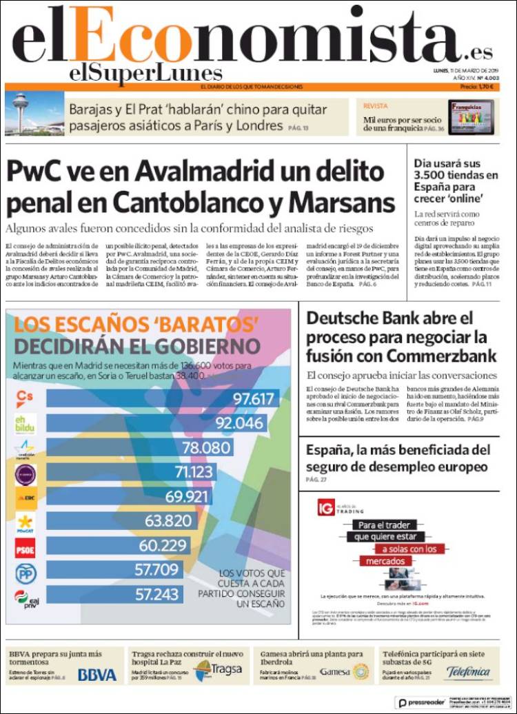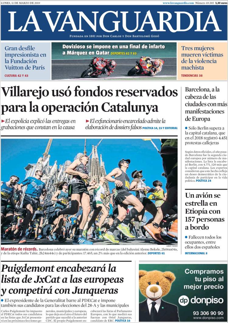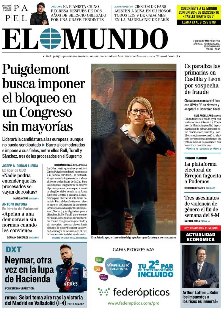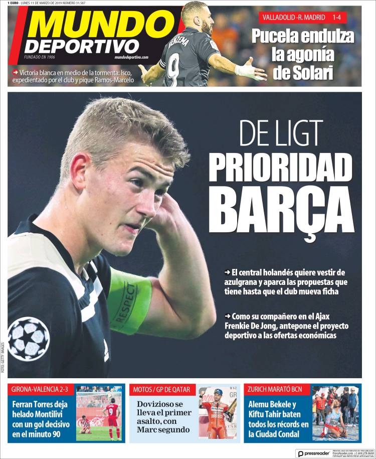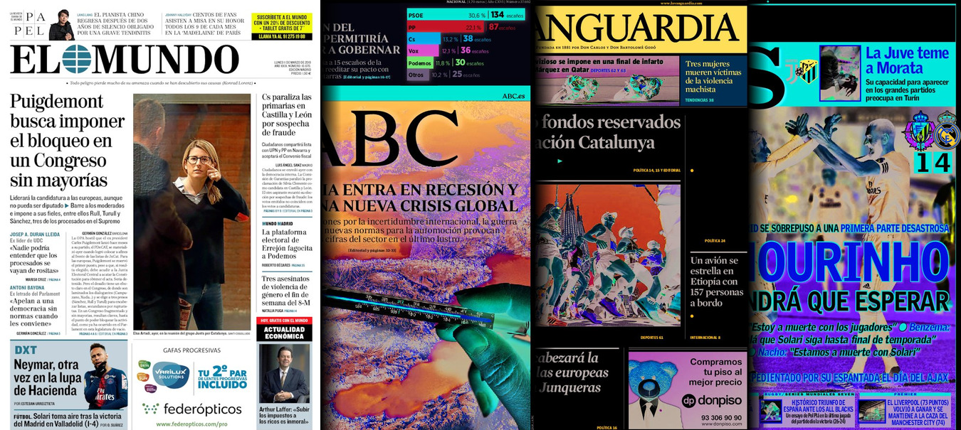 Portadas de los diarios El Mundo, El País, ABC, La Razón, La Vanguardia, El Periódico, CincoDías, El Economista, Marca, As y Mundo Deportivo.