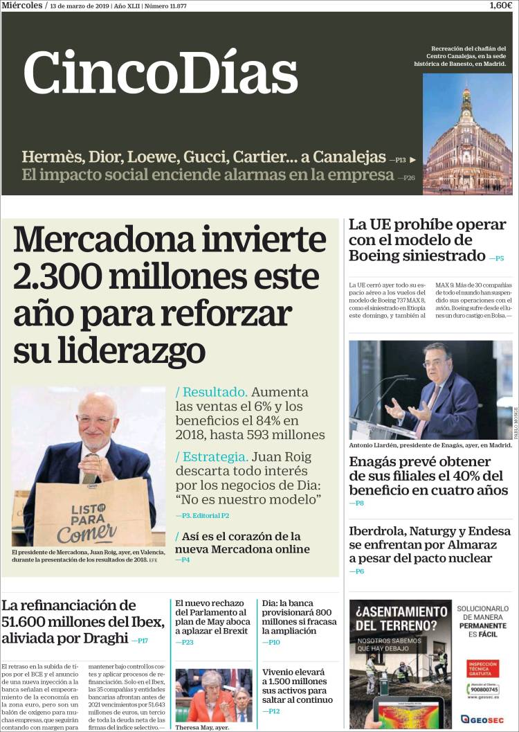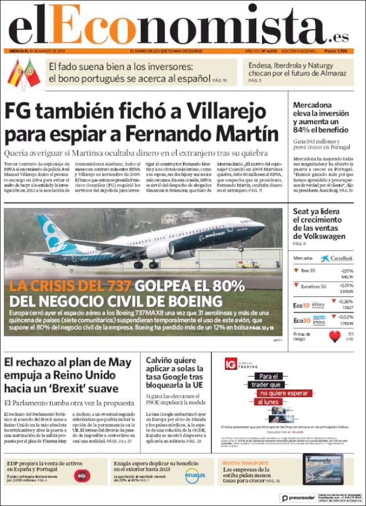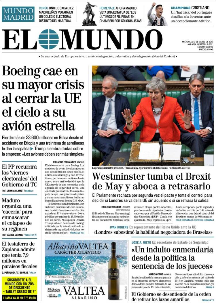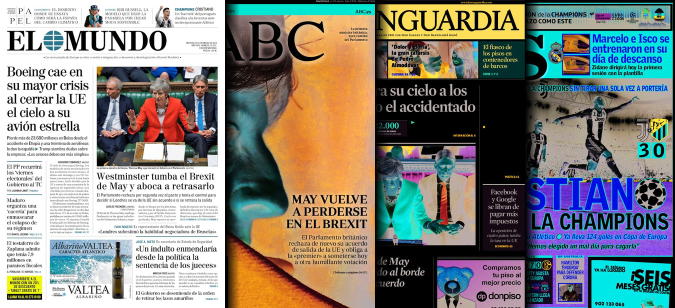 Portadas de los diarios El Mundo, El País, ABC, La Razón, La Vanguardia, CincoDías, El Economista, Marca, As y Mundo Deportivo.