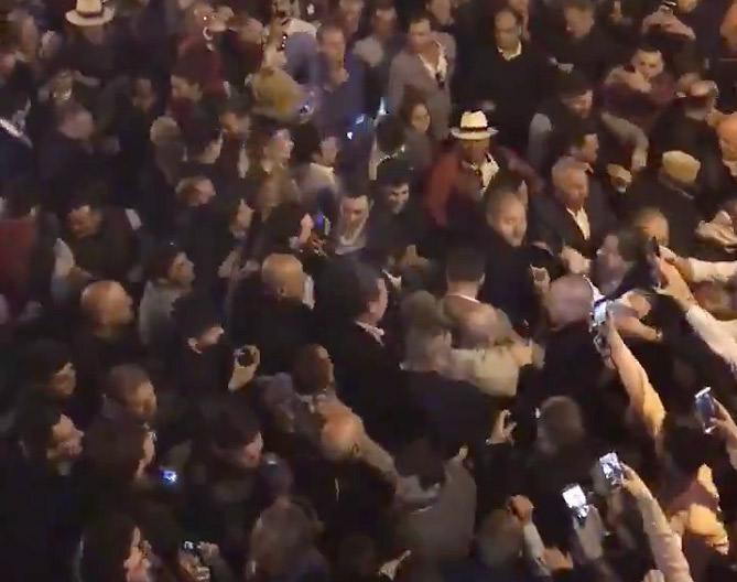 Una multitud rodea a Santiago Abascal a la salida de la plaza de toros de Valencia