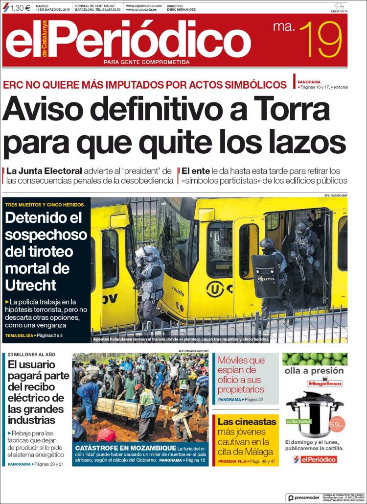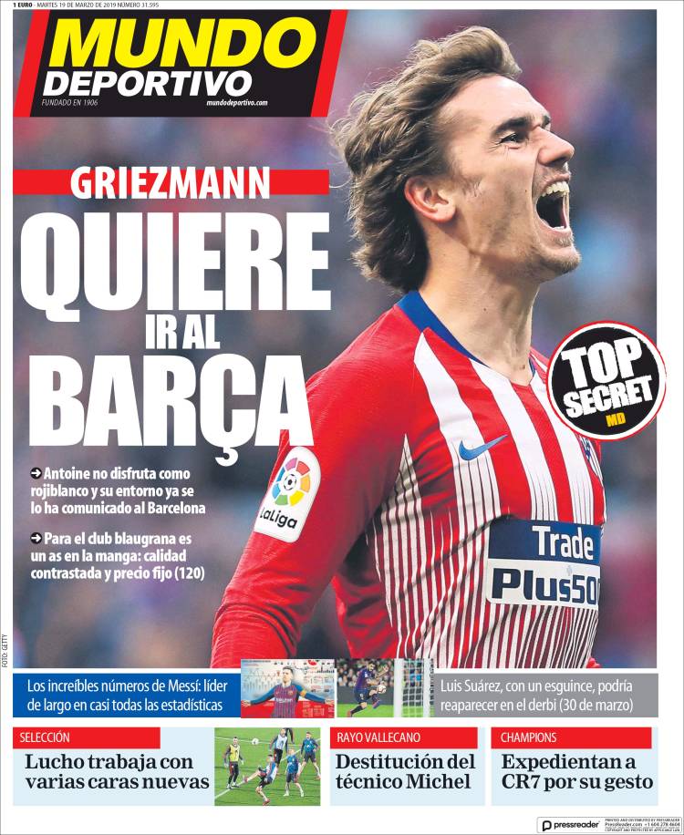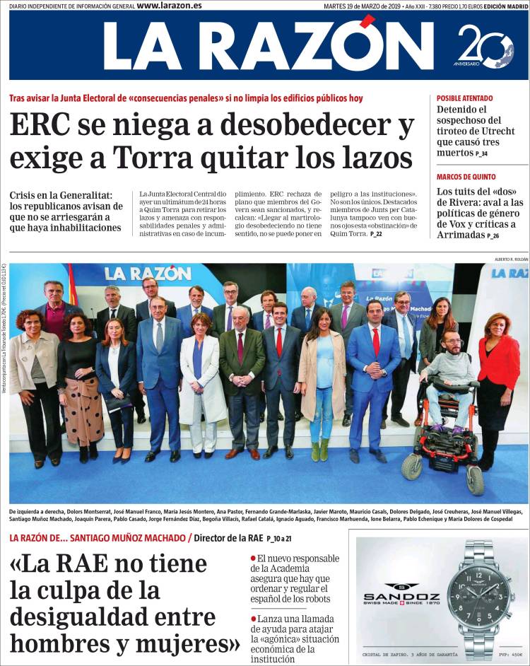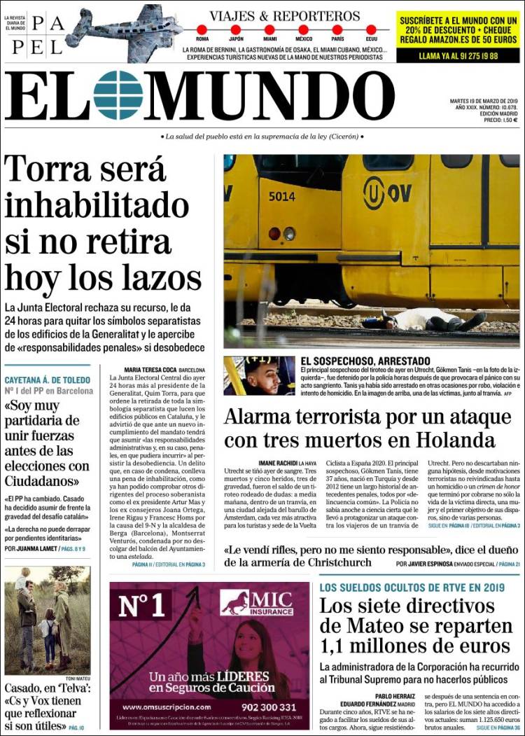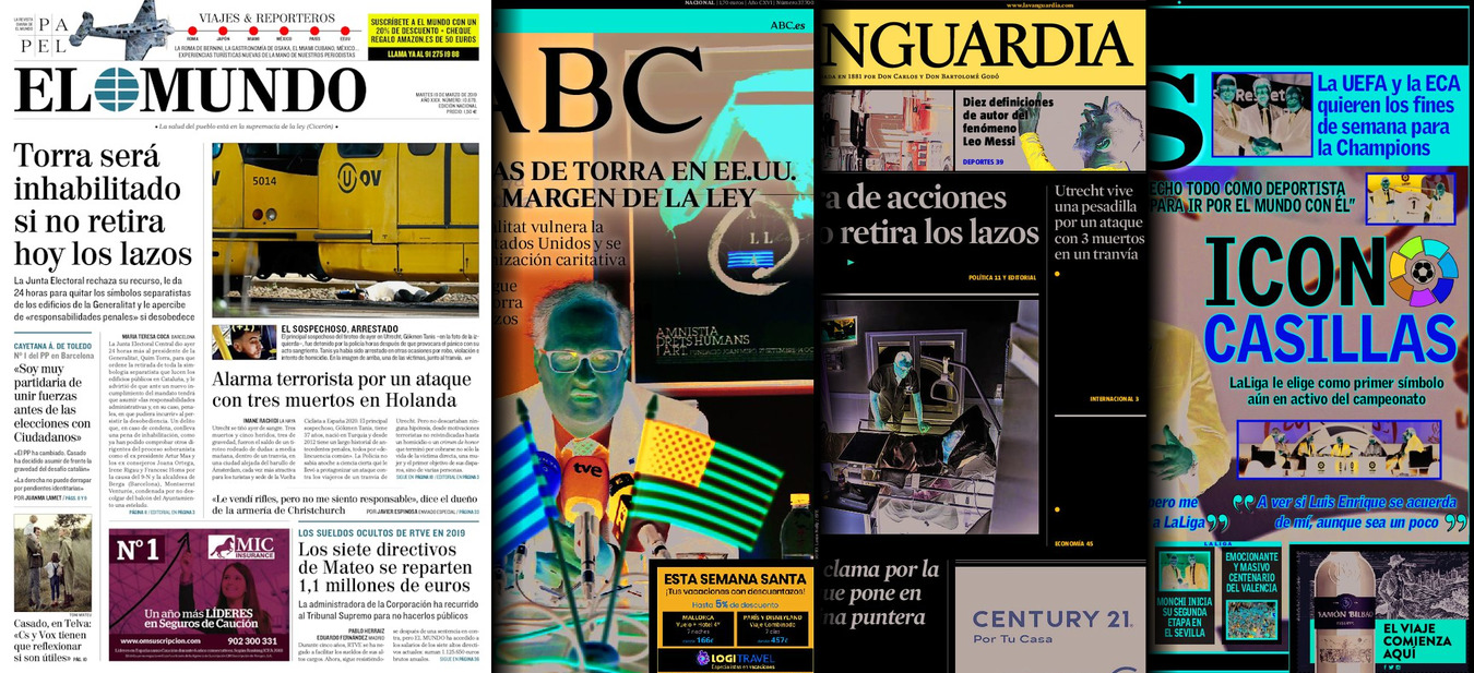 Portadas de los diarios El Mundo, El País, ABC, La Razón, La Vanguardia, El Periódico, CincoDías, El Economista, Marca, As, Mundo Deportivo y Sport..