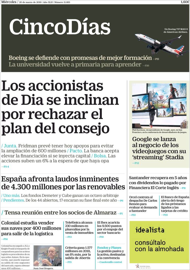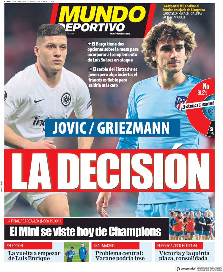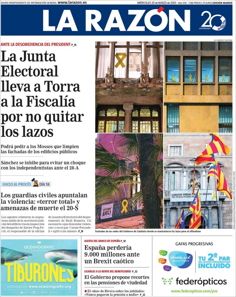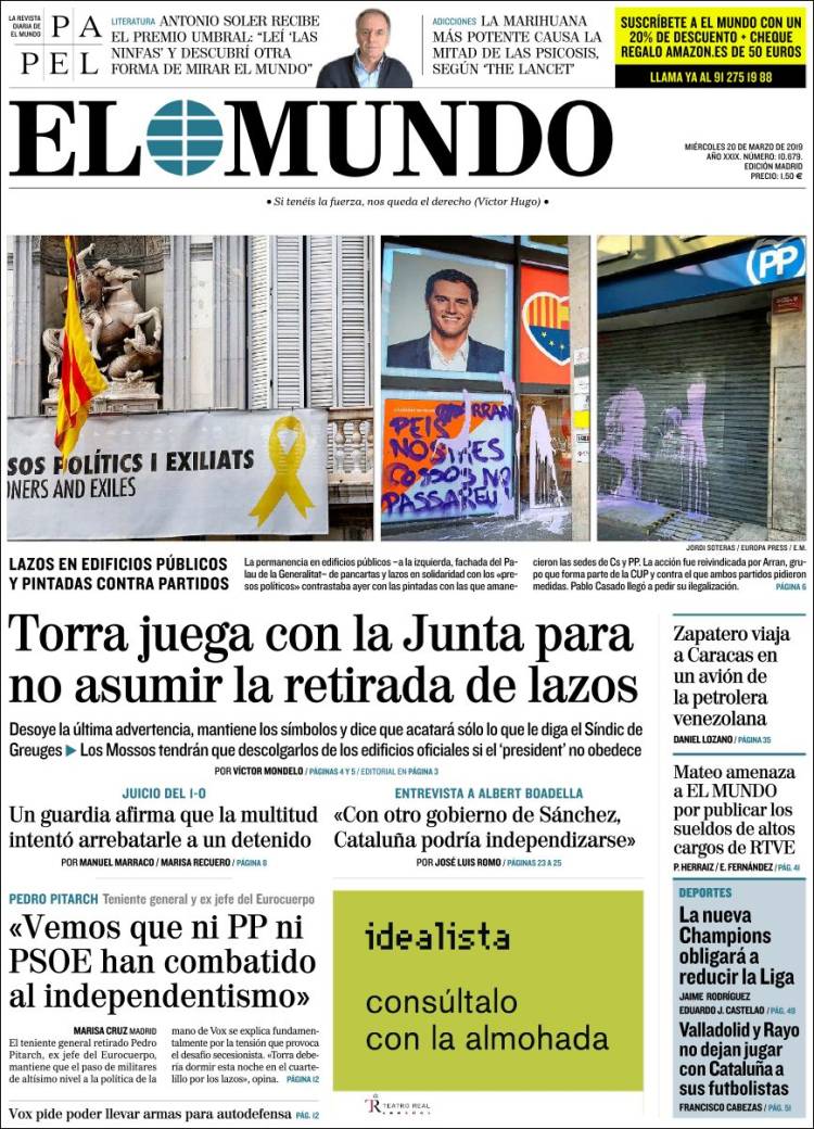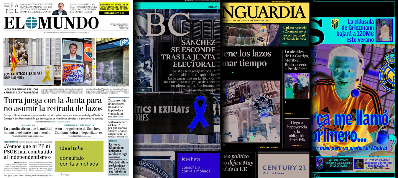 Portadas de los diarios El Mundo, El País, ABC, La Razón, La Vanguardia, CincoDías, El Economista, Marca, As, Mundo Deportivo y Sport..