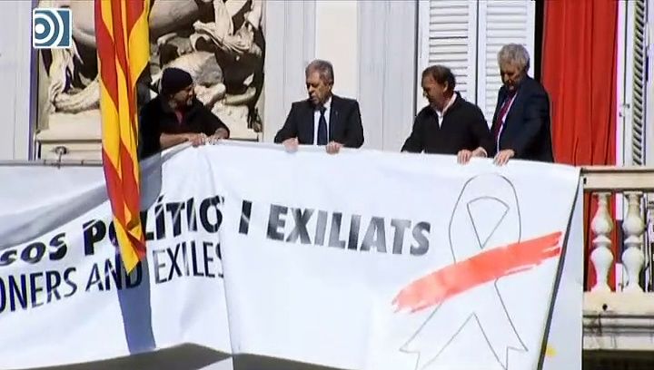 El presidente catalán opta por sustituir el lazo amarillo de la fachada de la Generalidad por uno blanco y rojo como el logo de la Òmniun Cultural.