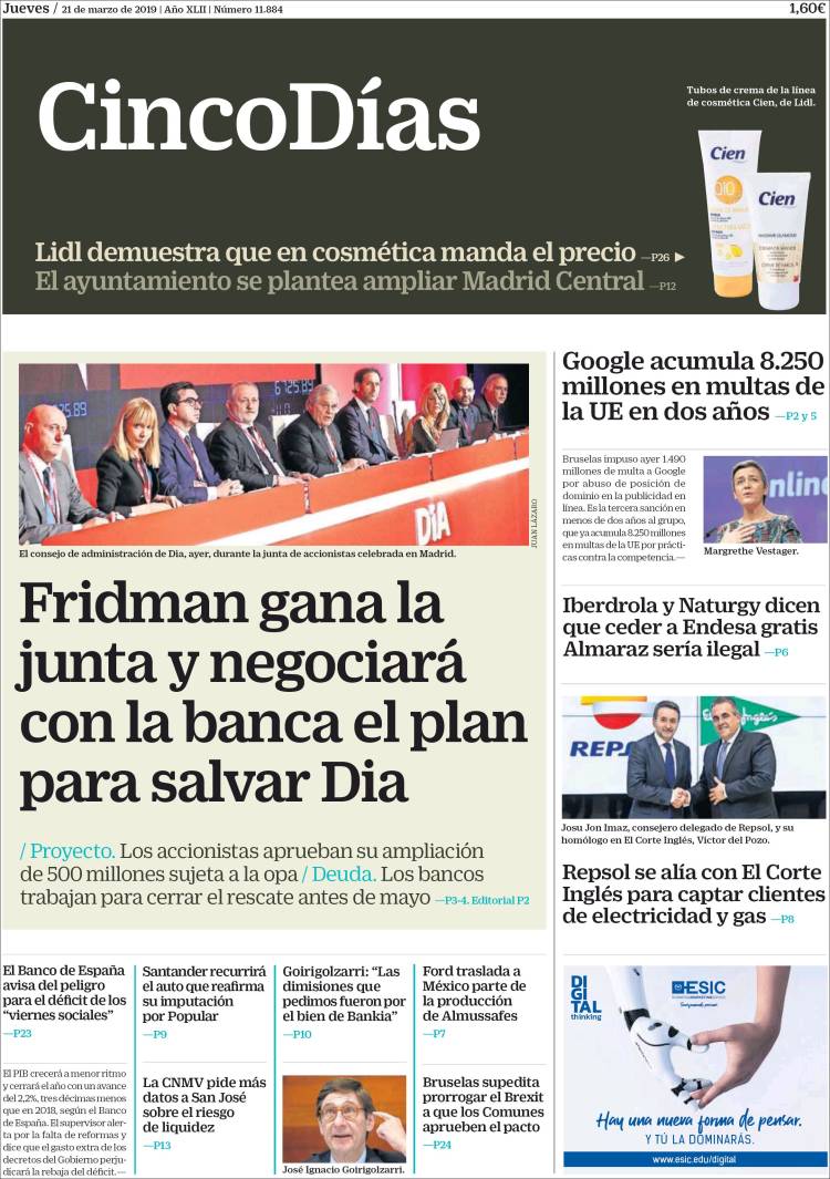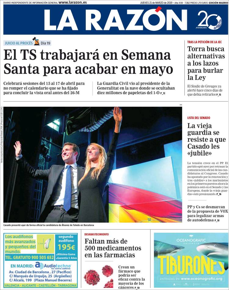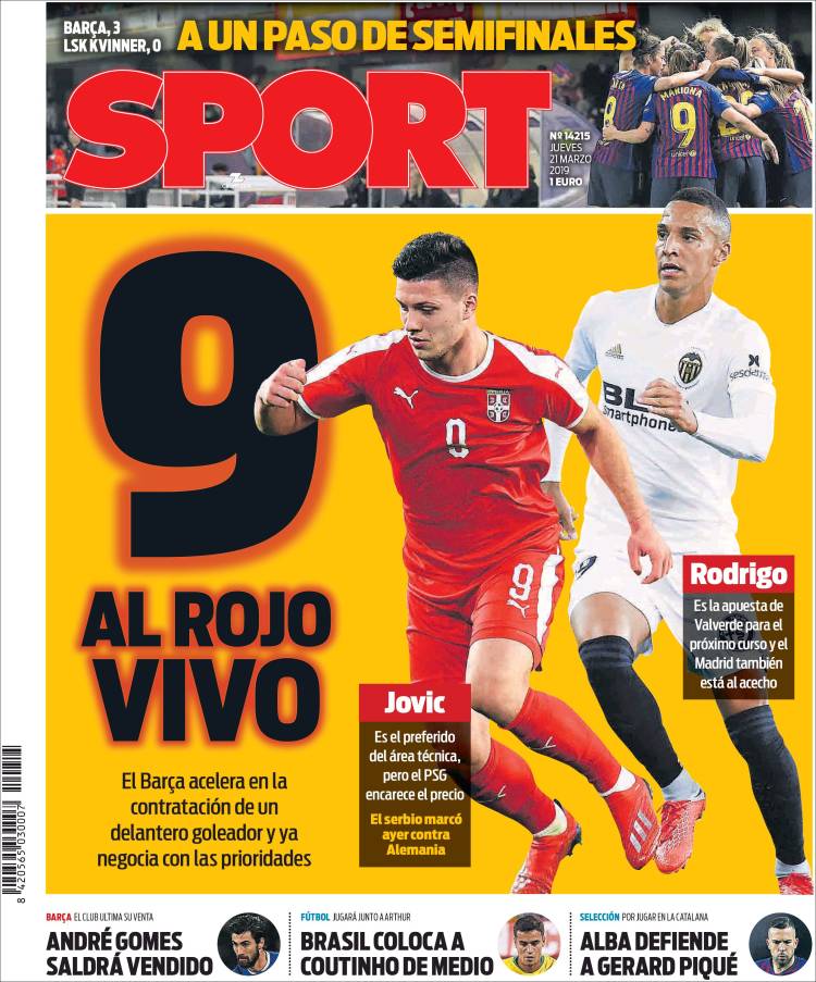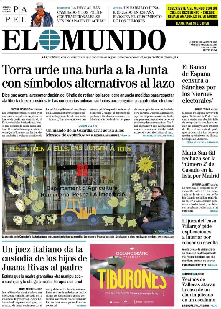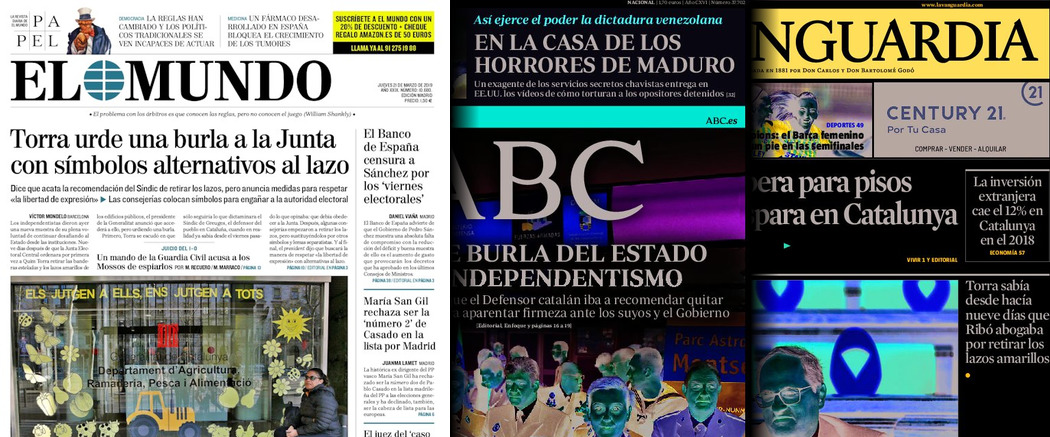 Portadas de los diarios El Mundo, El País, ABC, La Razón, La Vanguardia, El Periódico, CincoDías, El Economista, Marca, As, Mundo Deportivo y Sport..