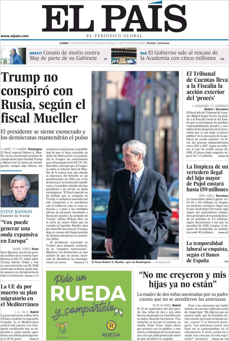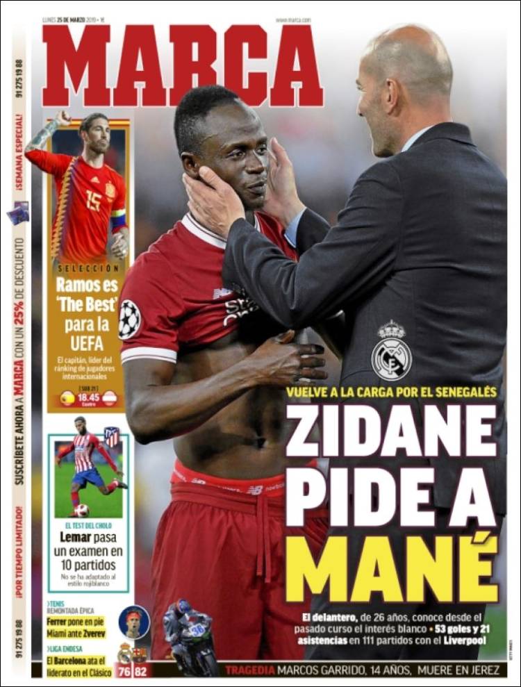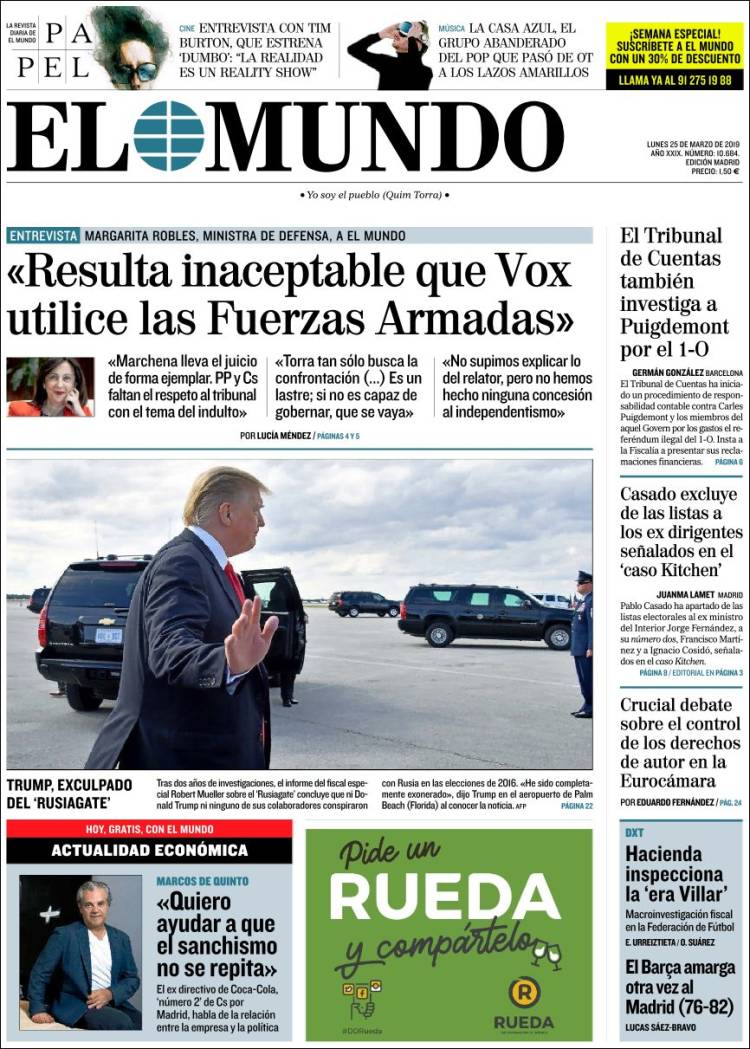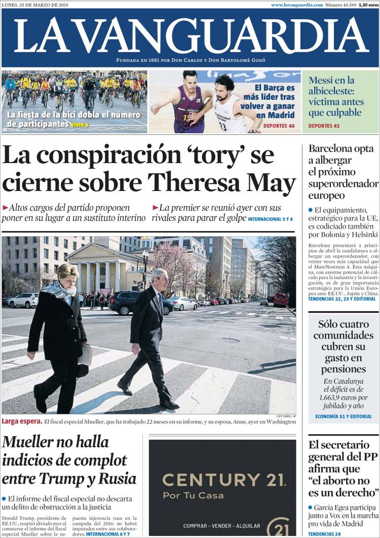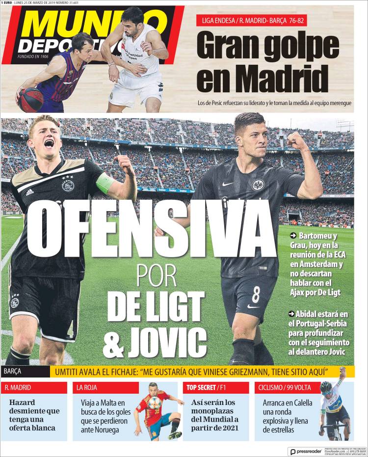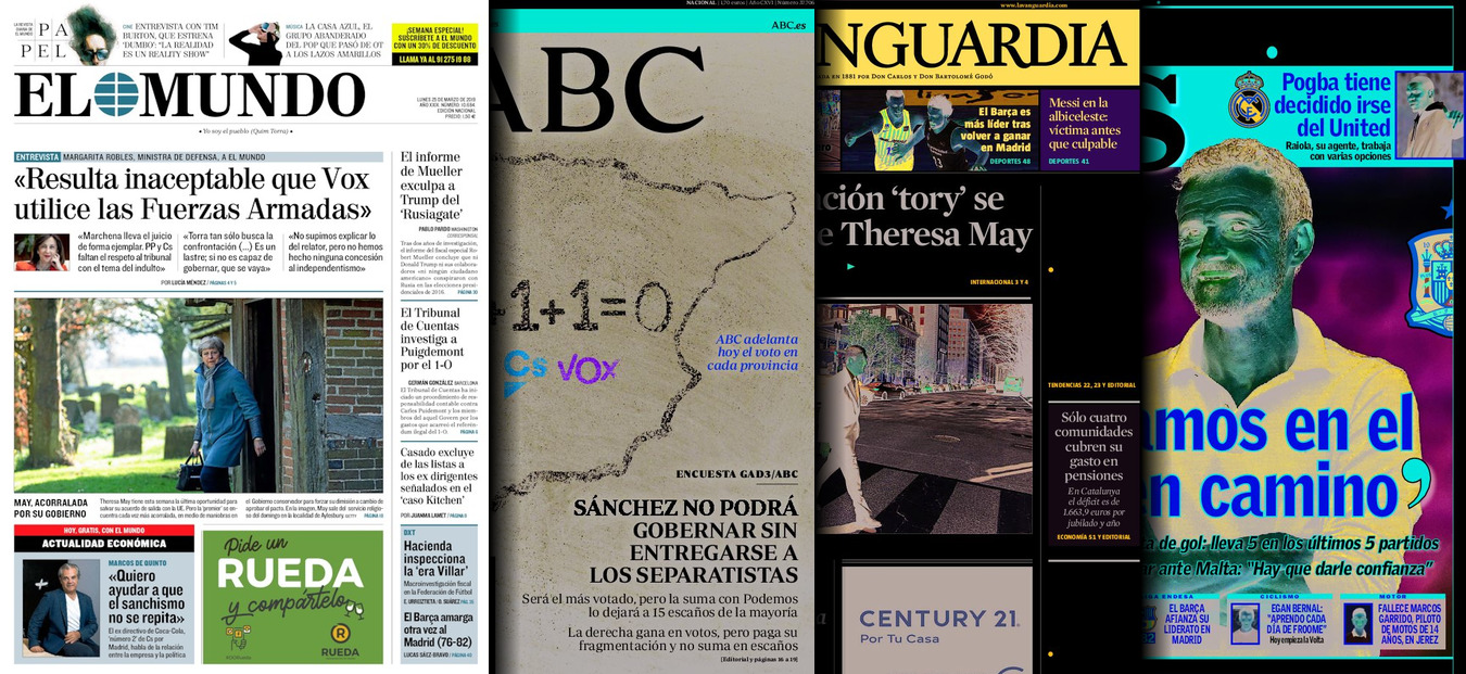 Portadas de los diarios El Mundo, El País, ABC, La Razón, La Vanguardia, CincoDías, El Economista, Marca y Mundo Deportivo.