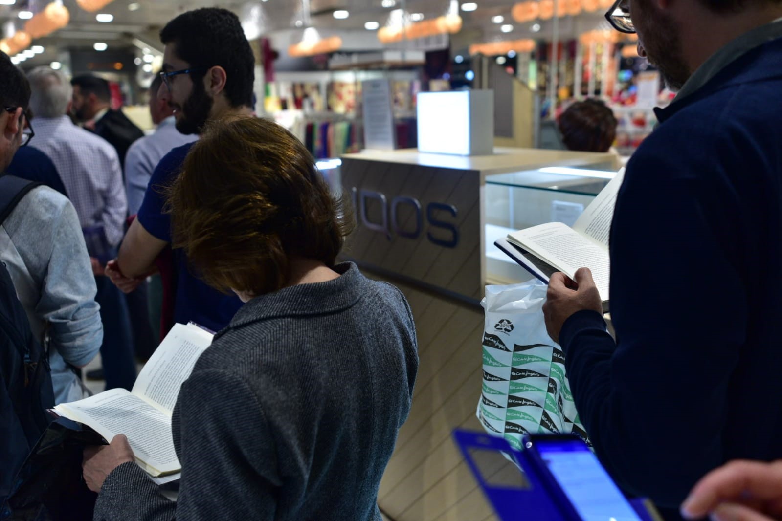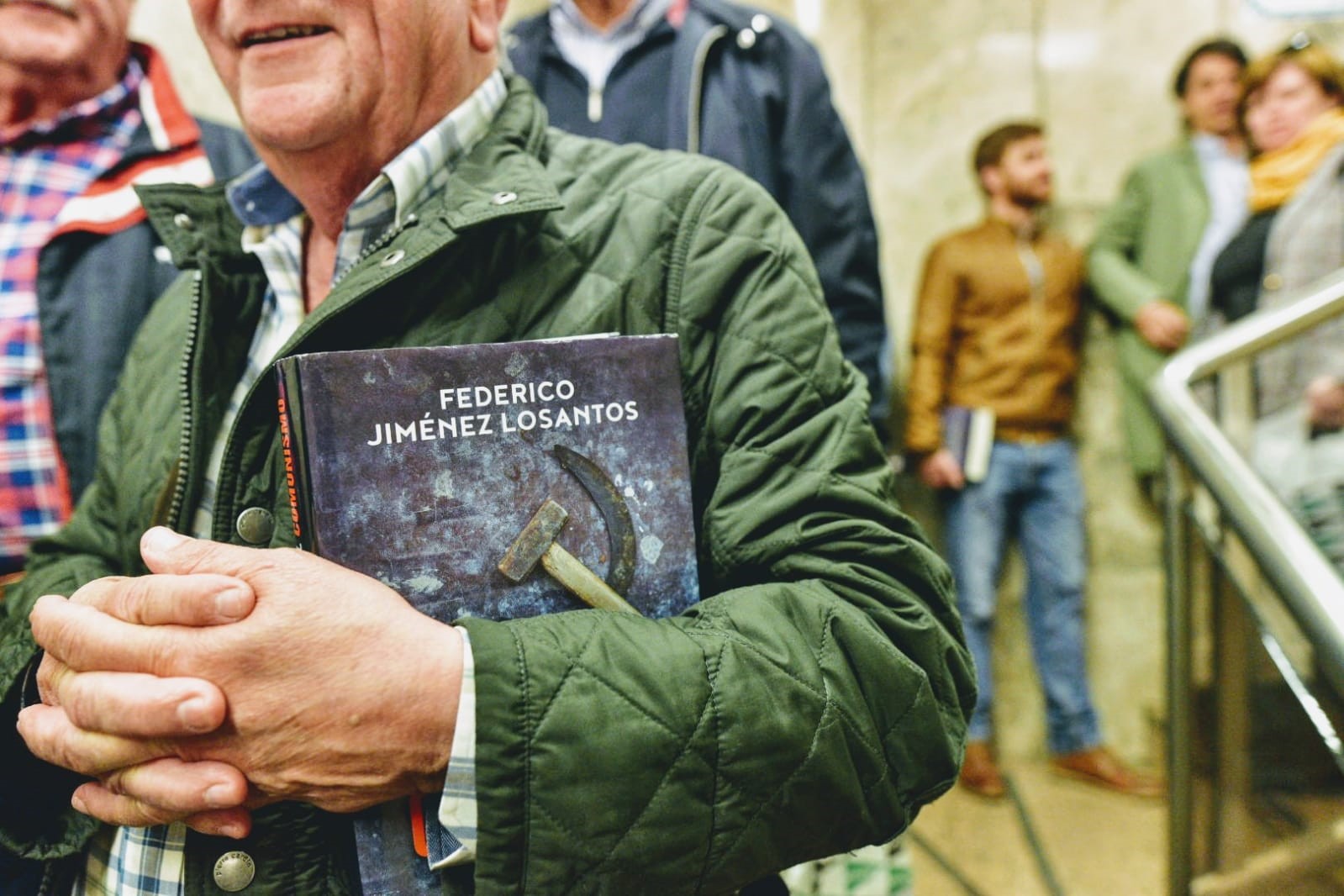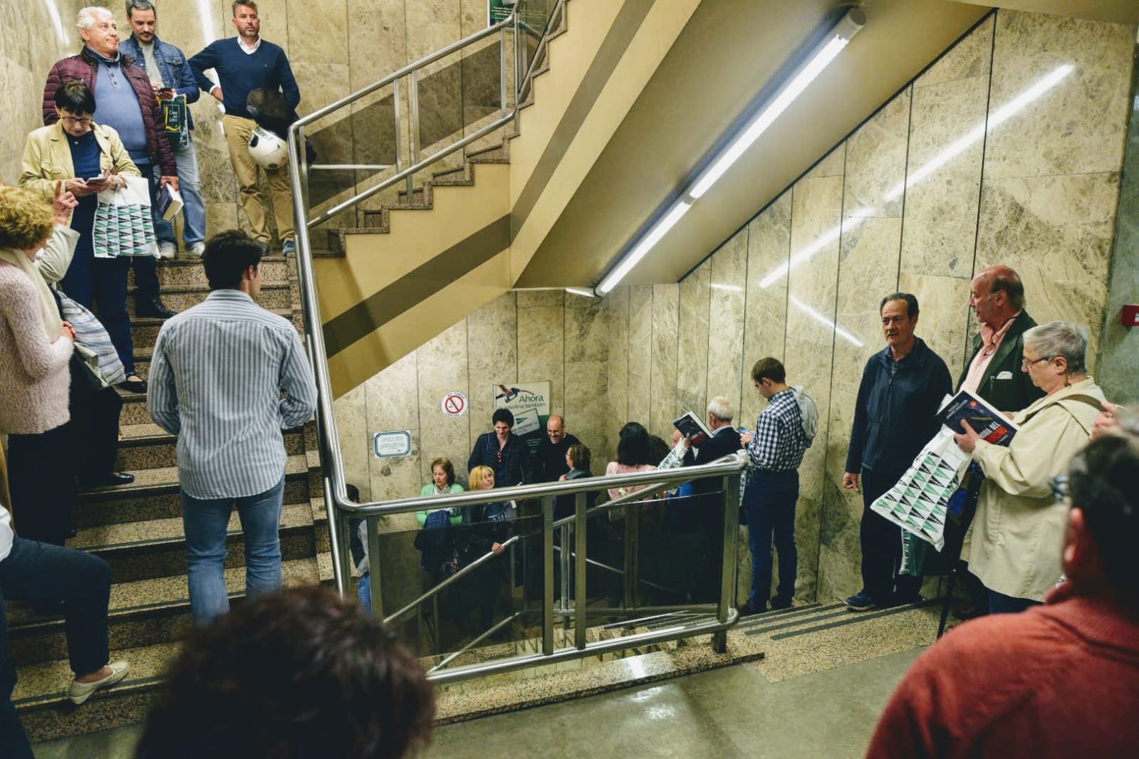 Una pareja espera mientras Federico firma uno de los ejemplares de su libro Memoria del Comunismo.