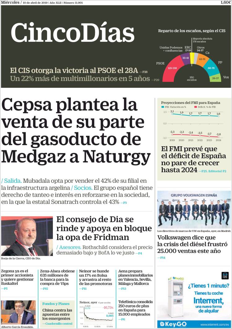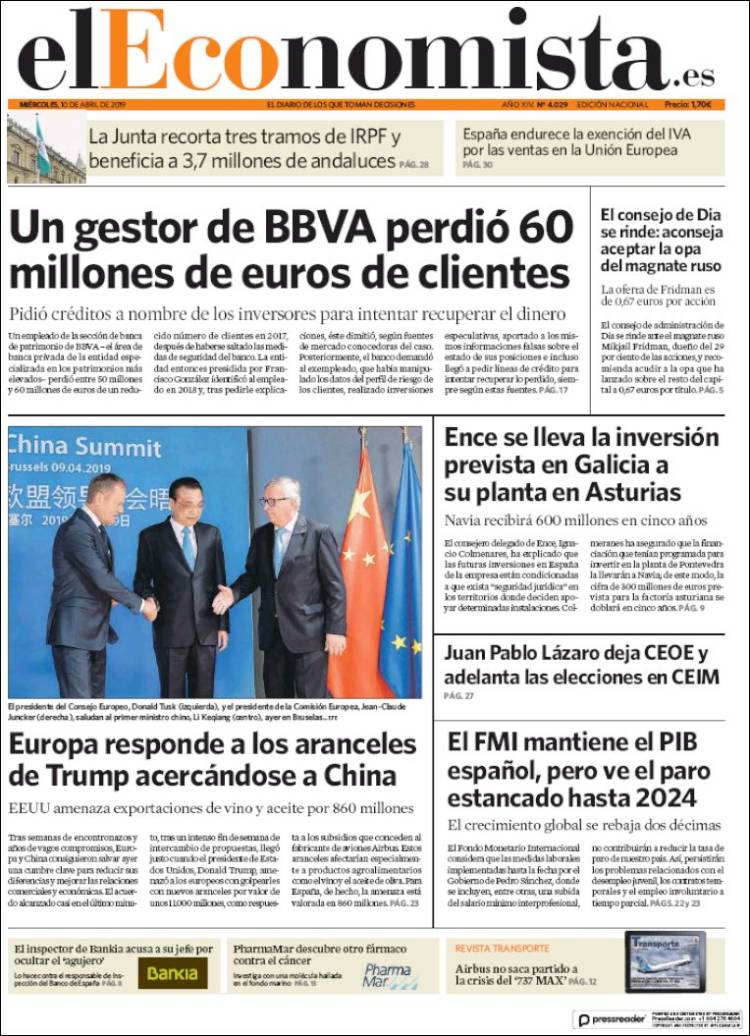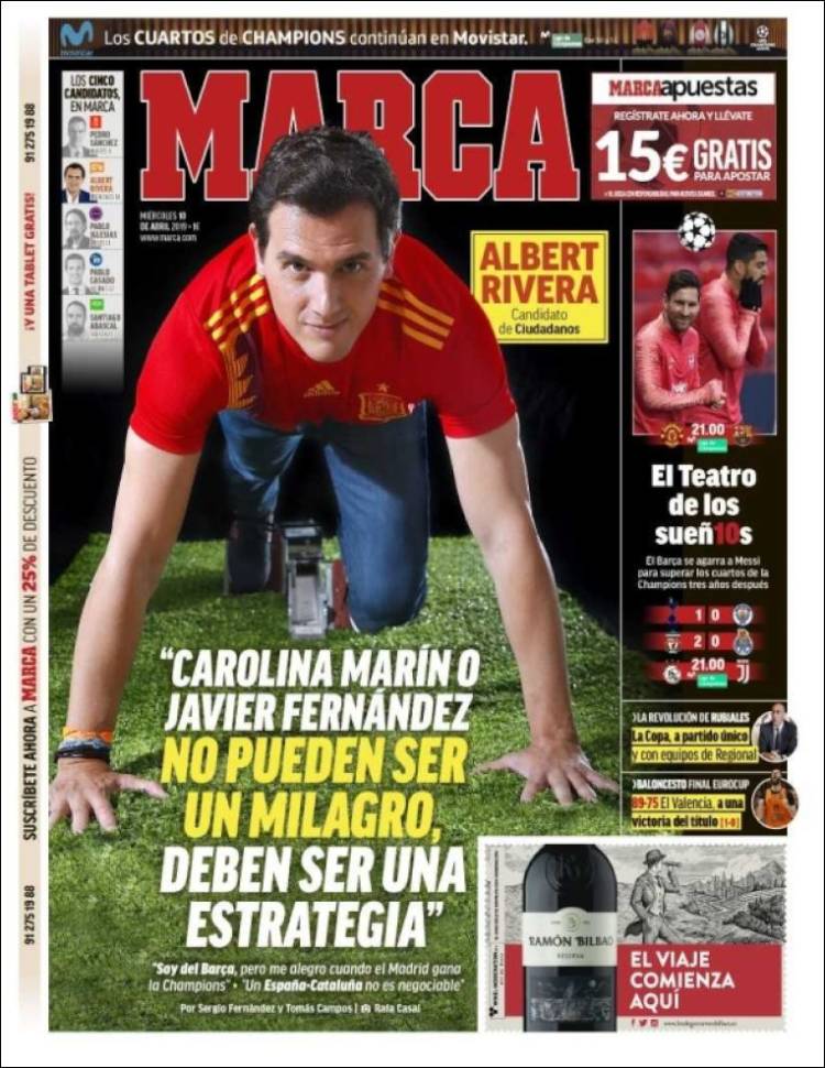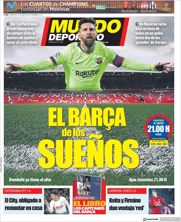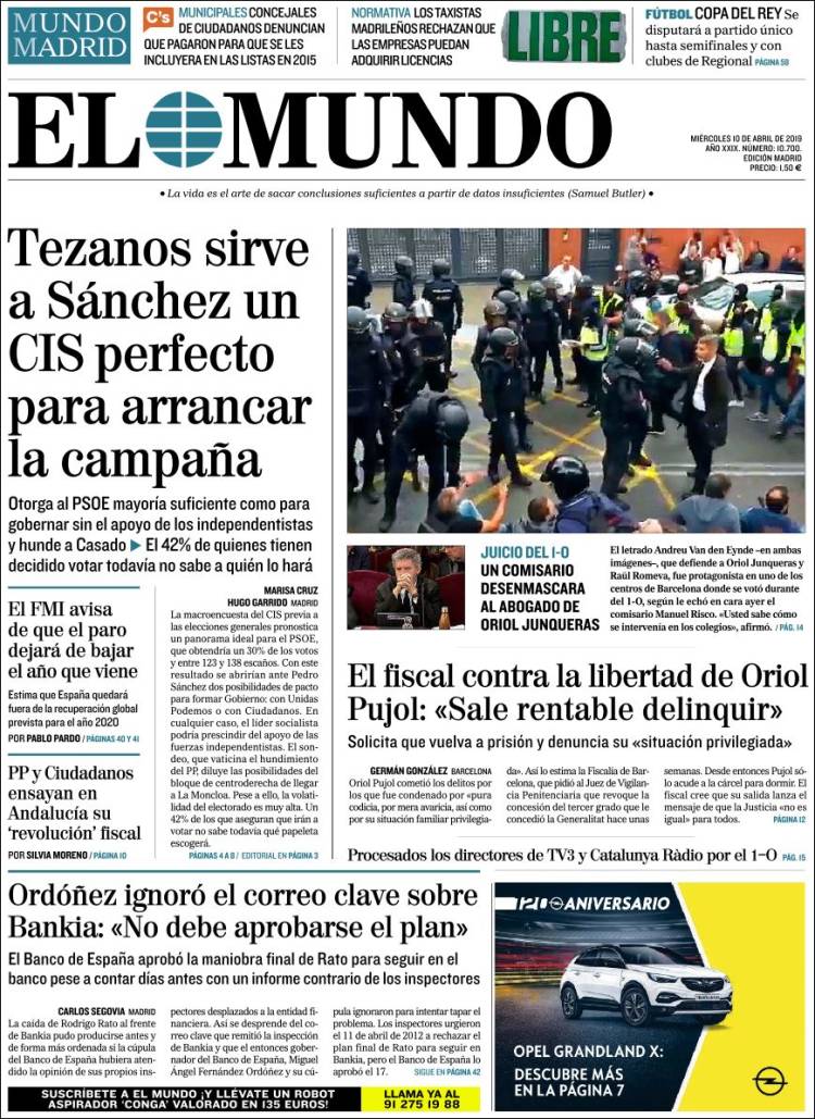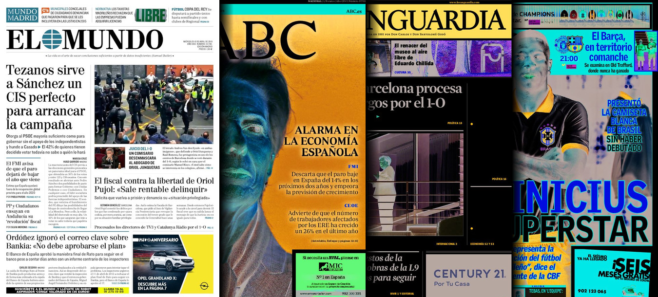 Portadas de los diarios El Mundo, El País, ABC, La Razón, La Vanguardia, CincoDías, El Economista, Marca, As y Mundo Deportivo.
