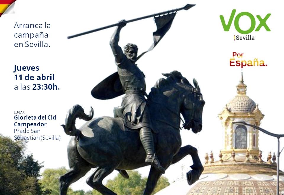 Cartel de inicio de campaña de Vox en Andalucía en el que aparece el monumento del Cid Campeador, conocido por sus hazañas durante la Reconquista a la que tanto hacen referencia los dirigentes de partido