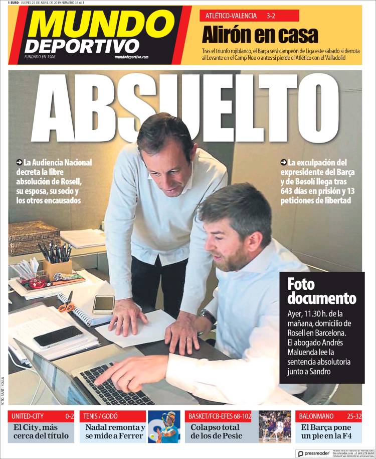 Portadas de los diarios El Mundo, El País, ABC, La Razón, La Vanguardia, El Periódico, CincoDías, El Economista, Marca, As y Mundo Deportivo.