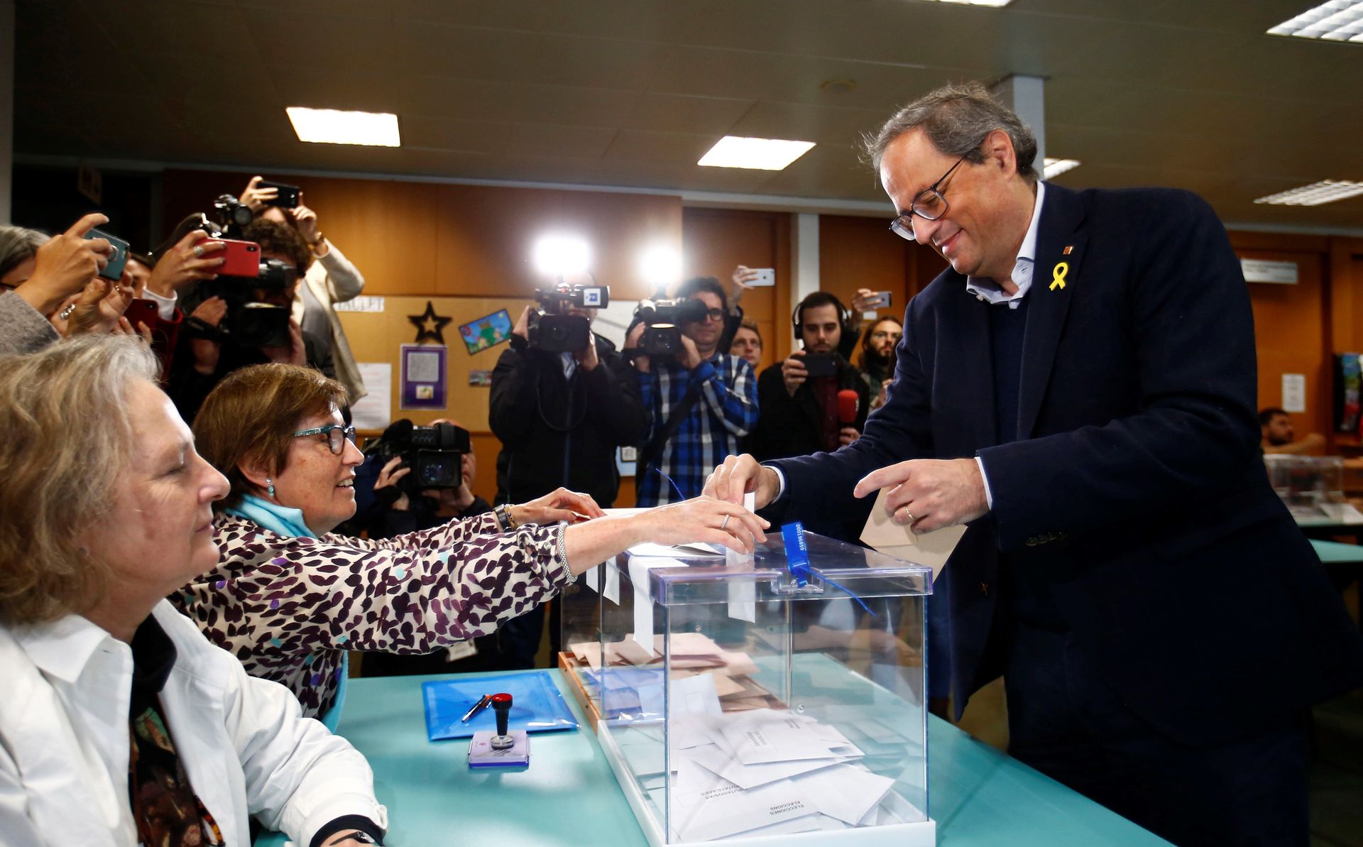 El presidente catalán, otro de los políticos que ha votado por la mañana.