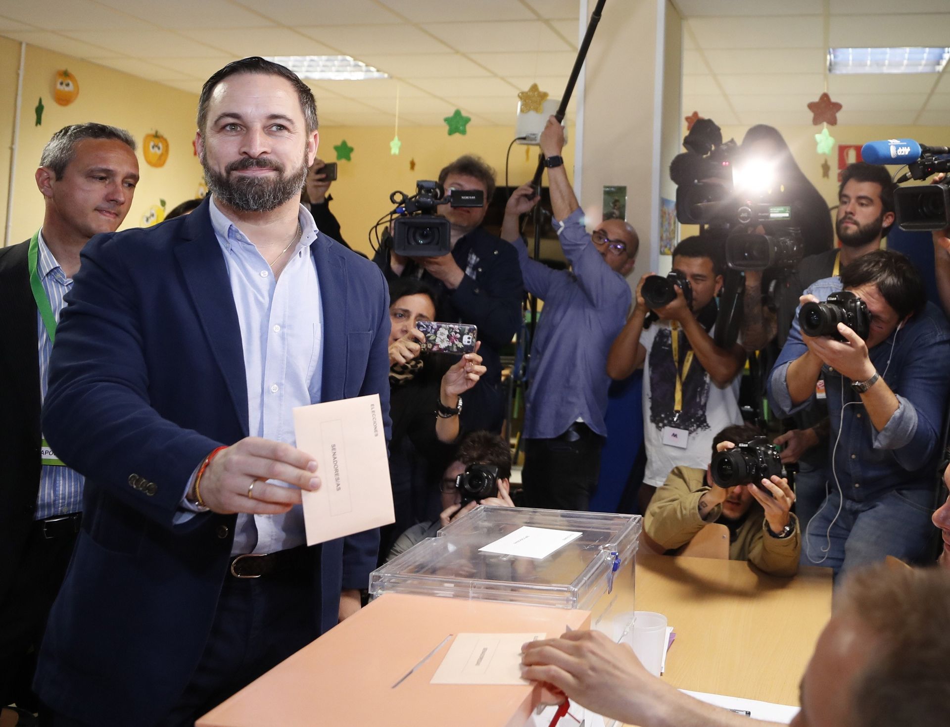 Gritos de "presidente" en el colegio donde ha votado el líder de Vox.
